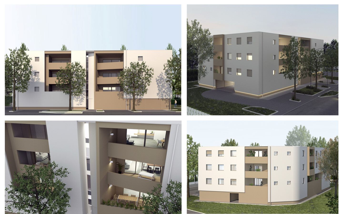 L’intervento sarà realizzato in classe energetica A4, con cappotto esterno, impianto fotovoltaico condominiale per la produzione di energia elettrica e impianto centralizzato con generatore a pompa di calore per riscaldamento e produzione di acqua calda. Ogni alloggio avrà riscaldamento a pavimento, termoarredi nei bagni, predisposizione per climatizzazione con ventilconvettori idronici e tapparelle motorizzate.