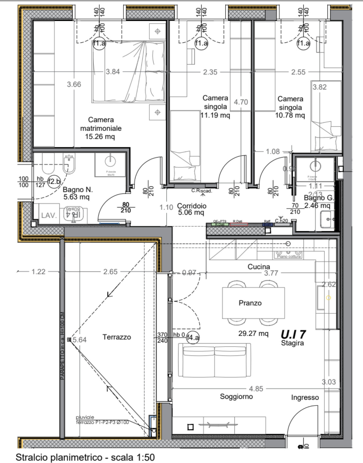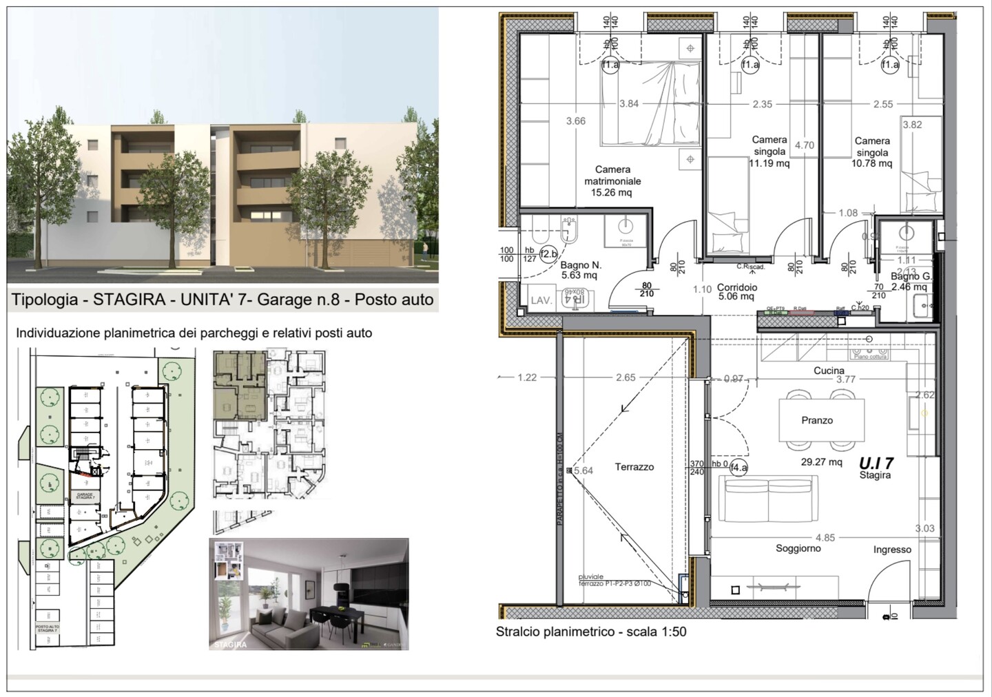 La tipologia STAGIRA proposta è la perfetta soluzione per vivere comodamente rispettando spazi e necessità di genitori e figli. Si tratta di appartamenti quadrilocali di 116 mq caratterizzati da ambienti ampi, ben distribuiti e luminosi, grazie anche alle generose terrazze di 15 mq, ideali per pranzi all’aperto e momenti di relax. Sono così composti: ingresso sul soggiorno di circa 29 mq con angolo cottura, valorizzato da un’ampia porta-finestra vetrata che garantisce sempre luce e accesso diretto al terrazzo, disimpegno notte, 1 camera matrimoniale, 2 camere singole e 2 bagni entrambi con doccia. Entrambi gli appartamenti hanno compresi nel prezzo un garage singolo al piano terra e un posto auto esterno.