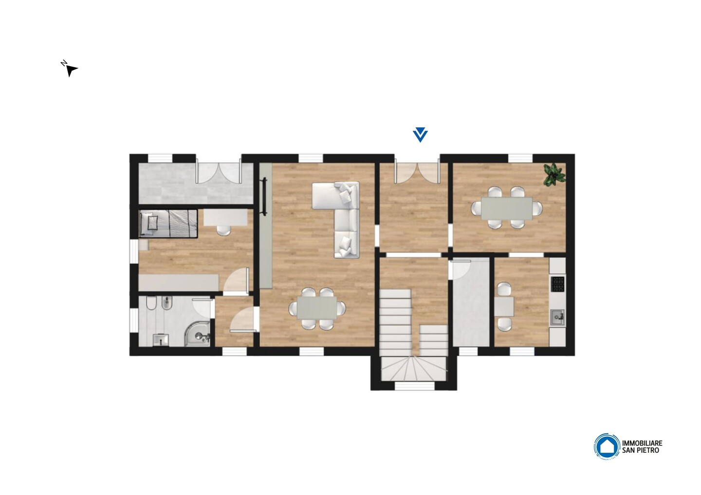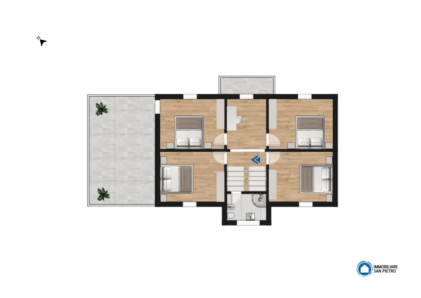La villa si sviluppa su tre livelli per un totale di circa 250 mq. Al piano terra troviamo un ingresso su loggia, una spaziosa sala da pranzo con accesso diretto alla cucina abitabile, un grande soggiorno, un bagno, una camera e due pratici ripostigli. Al primo piano si sviluppa la zona notte composta da disimpegno, quattro camere matrimoniali, di cui una con accesso diretto alla terrazza panoramica, un bagno finestrato e un secondo balconcino. Il piano interrato ospita un’ampia taverna, una cantina e due ulteriori ripostigli, perfetti per ricavare spazi di servizio o ambienti conviviali.