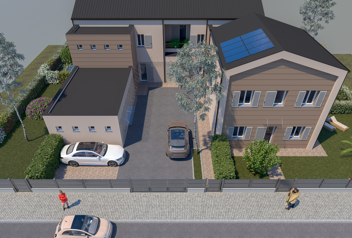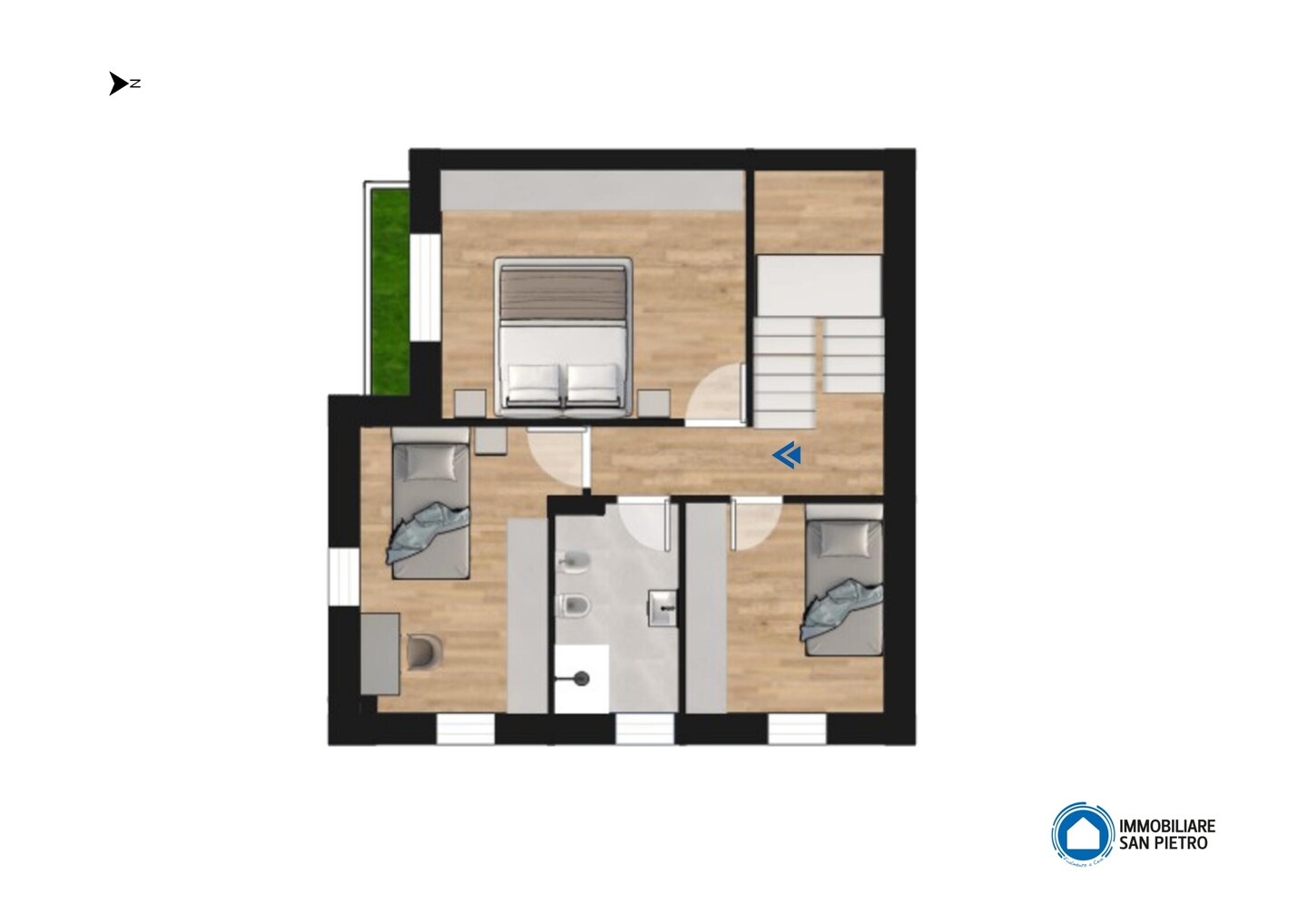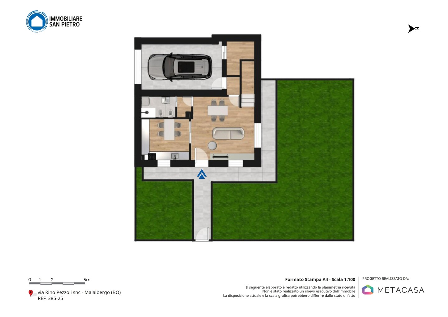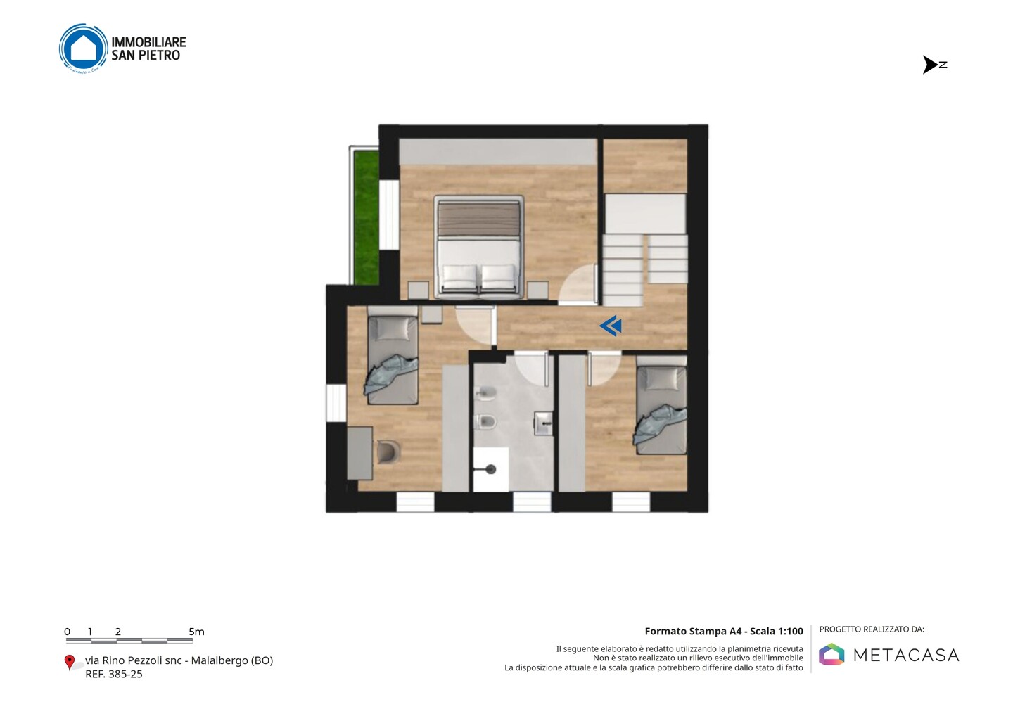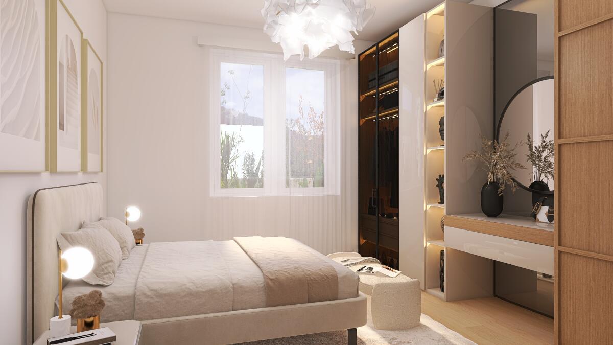 Appartamento con 5 locali sviluppato su due livelli (piano terra e primo piano), con esposizione su tre lati. Si compone di soggiorno e cucina abitabile; la zona notte è composta da 2 camere matrimoniali, una camera doppia e 2 bagni funzionali. Il tutto è arricchito da un ingresso indipendente, che garantisce la massima privacy. La proprietà include anche un comodo garage, una cantina (adibita a vano tecnico) e un giardino privato, che rappresenta uno spazio esclusivo dove poter trascorrere del tempo all’aperto in totale tranquillità.