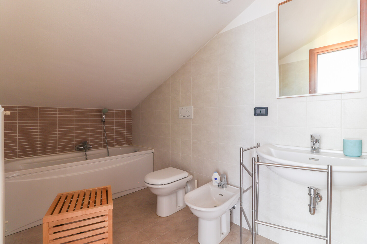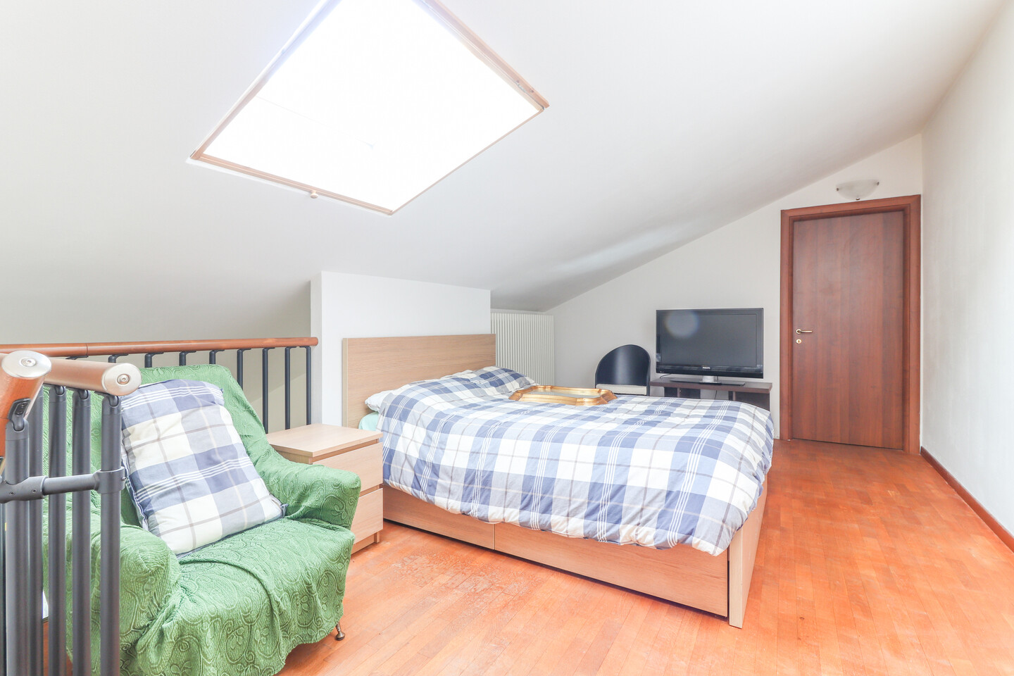 Costruito nel 2007 e mantenuto in ottime condizioni, l’appartamento è dotato di riscaldamento autonomo e classe energetica C, elementi che ne aumentano l’efficienza e l’attrattività nel tempo. L’abitazione è così composta: al primo piano troviamo l’ingresso su soggiorno con angolo cottura, un disimpegno che conduce alla zona notte composta da 1 camera matrimoniale, 1 camera singola e 1 bagno finestrato con doccia. Salendo al secondo livello mansardato, caratterizzato da un’altezza massima di 2.62 metri e illuminato da 2 velux, si accede ad un ulteriore ambiente attualmente utilizzato come terza cameretta, ma facilmente adattabile a studio, stanza hobby o locale deposito, che presenta inoltre un secondo bagno con vasca. La disposizione degli spazi rende l’immobile funzionale e versatile, perfetto anche per locazioni a lungo termine.