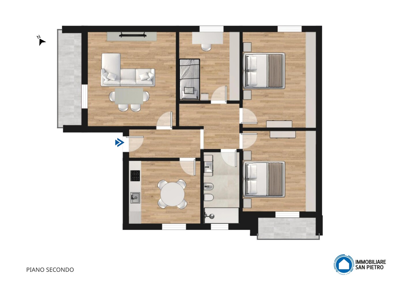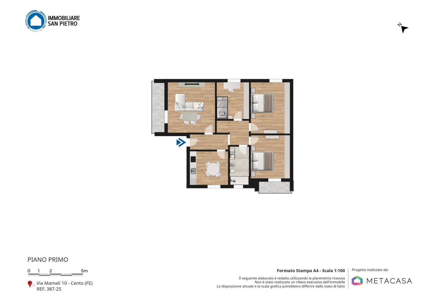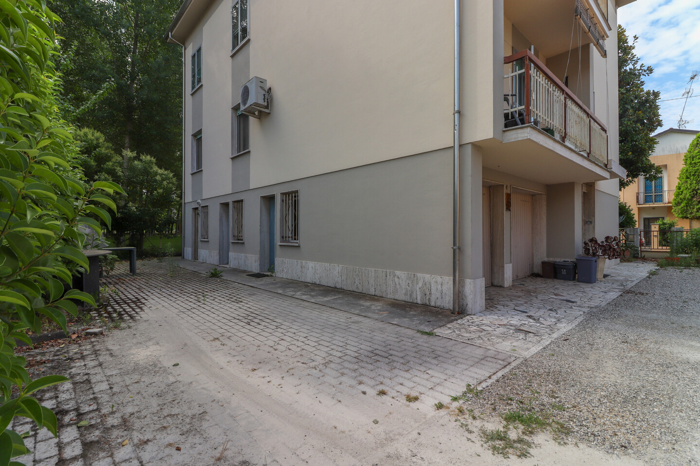Intero fabbricato composto da due unità immobiliari, una al piano primo e una al piano secondo e rispettivamente composte da: ingresso, soggiorno, cucina, disimpegno, tre camere da letto, bagno e due balconi. Al piano terra troviamo zona servizi in cui sono presenti cantine, lavanderie e autorimesse. Completa la proprietà una corte esclusiva comune alle 2 unità di circa 500 mq.