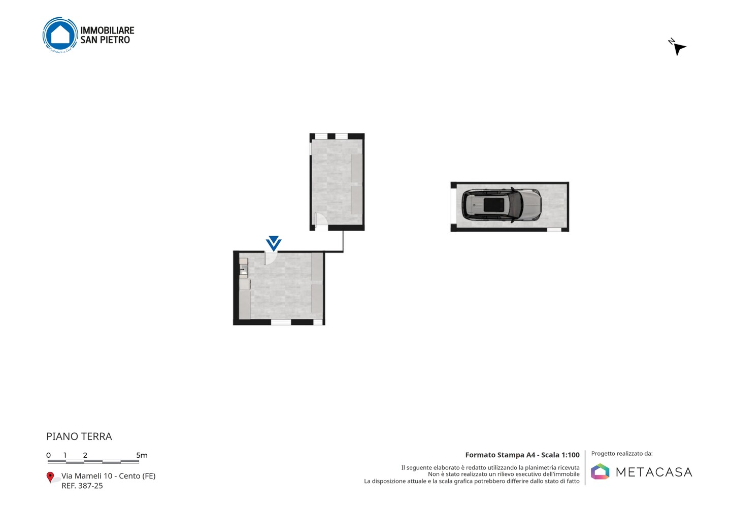 Ci troviamo in Via Mameli, strada a fondo chiuso a pochi passi dal centro storico di Cento. Ci troviamo infatti a ridosso del Viale pedonale di Via Malpighi che porta direttamente in Corso Guercino.