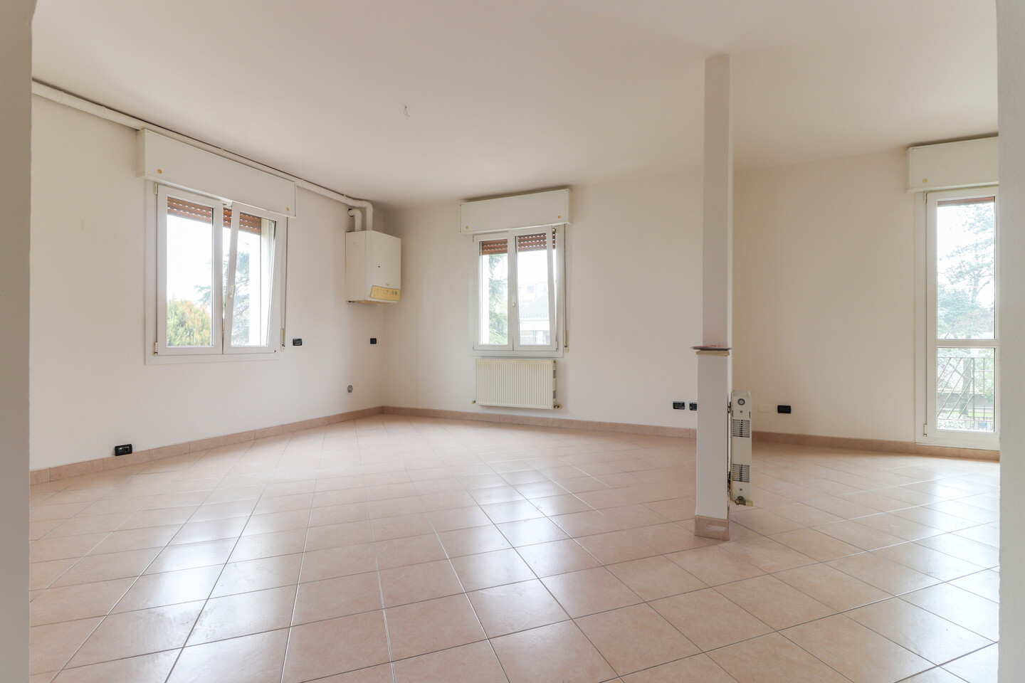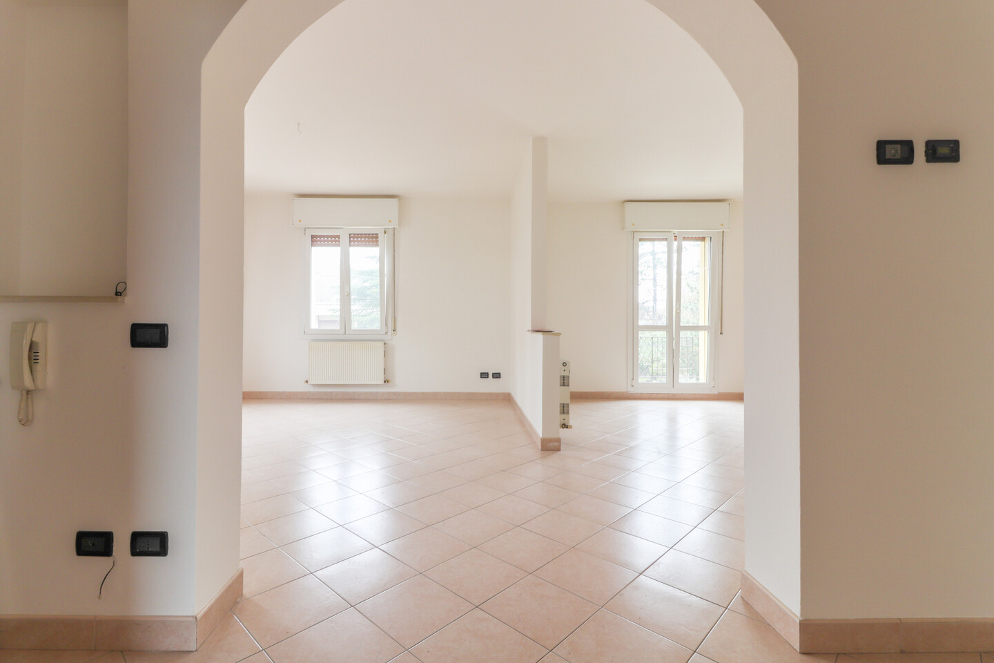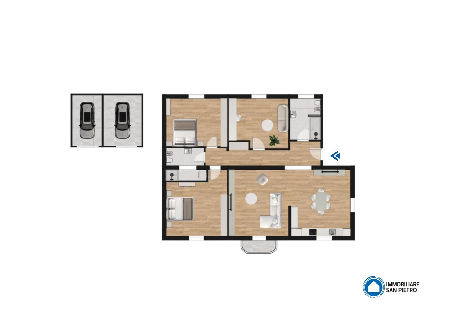 Appartamento posto al piano primo in vano scala di sole due unità abitative. Internamente composto da soggiorno con balcone con cucina abitabile a vista, disimpegno, tre camere e due bagni. Al piano terra giardino privato e due autorimesse di cui una in corpo di fabbrica staccato.