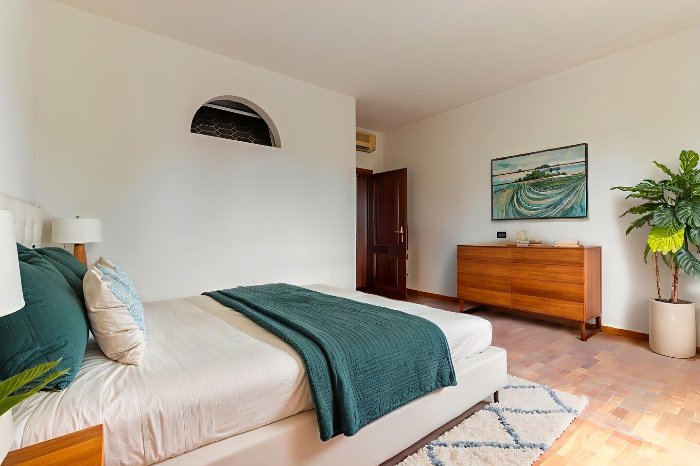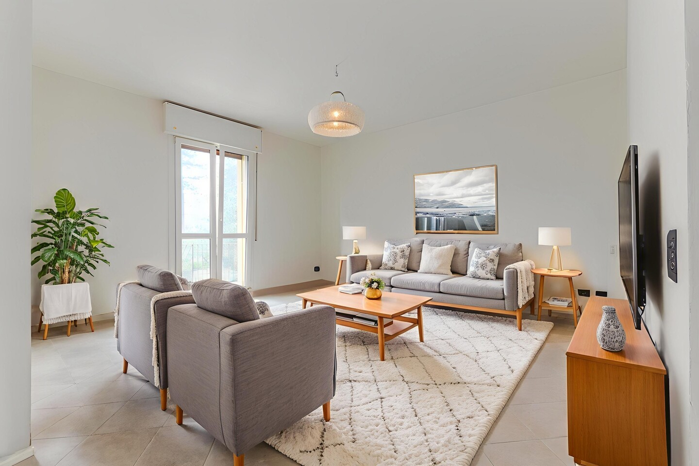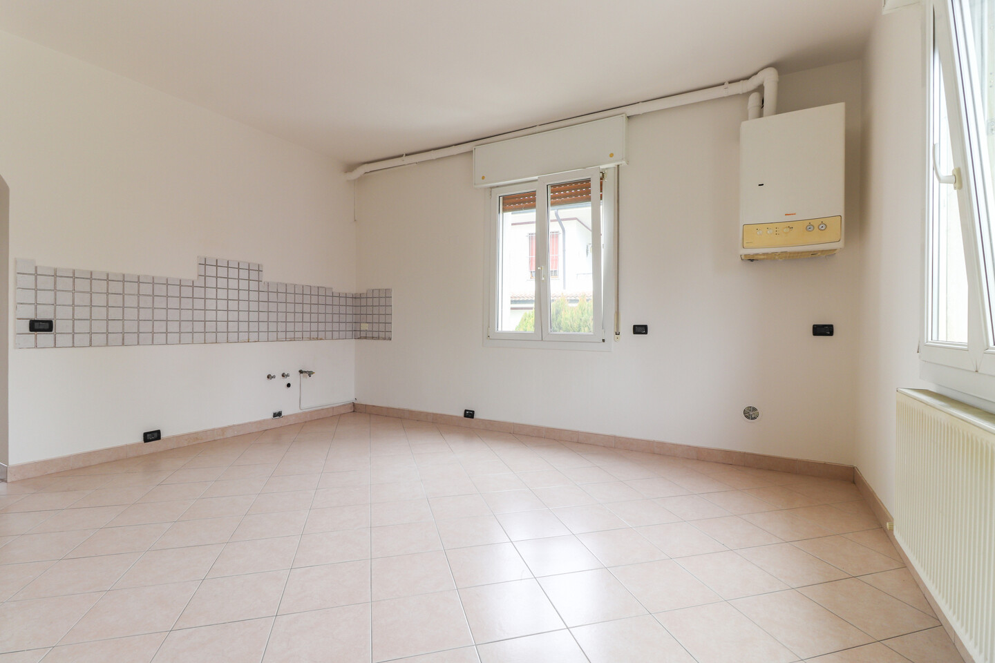 Appartamento posto al piano primo in vano scala di sole due unità abitative. Internamente composto da soggiorno con balcone con cucina abitabile a vista, disimpegno, tre camere e due bagni. Al piano terra giardino privato e due autorimesse di cui una in corpo di fabbrica staccato.