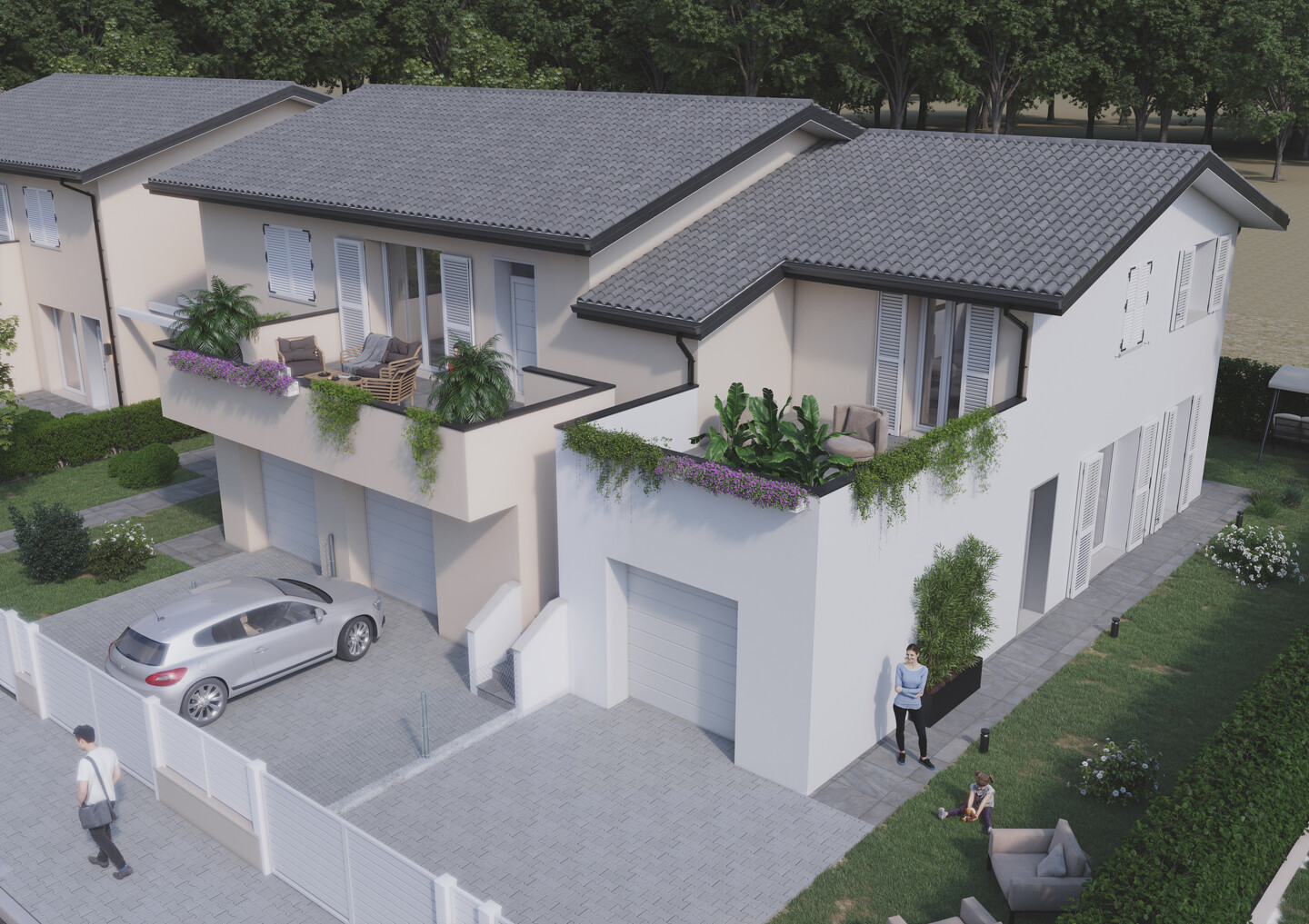 Questa splendida villa di testa (Tipo A) ti aspetta, un gioiello “cielo-terra” su due livelli, con un incantevole giardino privato e una terrazza abitabile perfetta per i tuoi momenti di relax. Al piano terra, la luminosa zona giorno ti accoglie con un ingresso su un’ampia sala e cucina a vista, illuminate da grandi vetrate che si affacciano direttamente sul giardino che abbraccia l’immobile su due lati. Un pratico disimpegno e un bagno completano questo livello. Salendo al primo piano, troverai tre accoglienti camere da letto, una matrimoniale e due singole, tutte con accesso a una spaziosa terrazza abitabile, e un secondo bagno. La proprietà include anche un’autorimessa. Progettata per l’eccellenza, questa villa vanta la classe energetica A4, garantendo il massimo risparmio grazie a tecnologie moderne e un impianto fotovoltaico, per costi di gestione minimi. L’ottimo capitolato ti offre un’ampia scelta di finiture per personalizzare ogni dettaglio e creare la casa dei tuoi sogni.