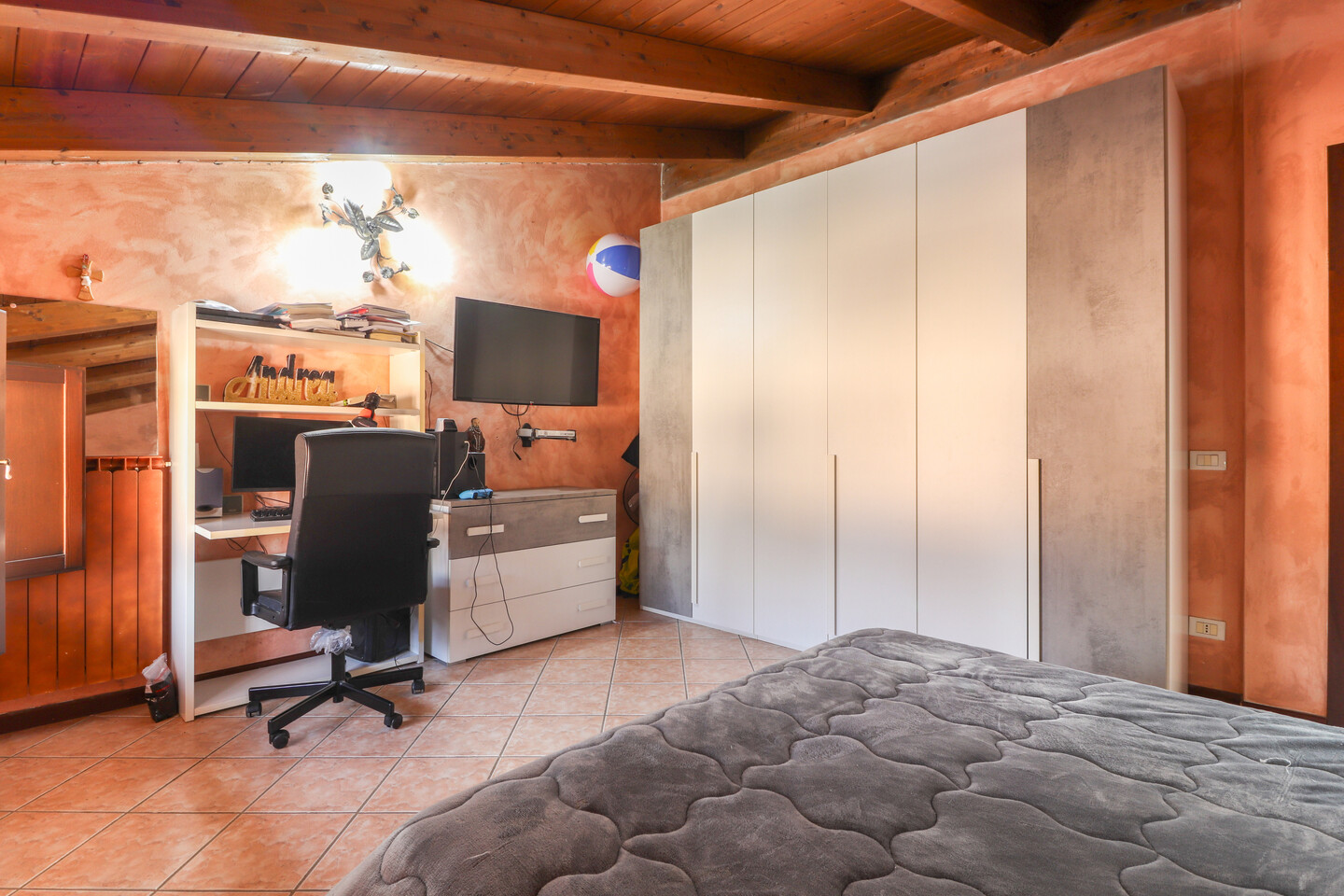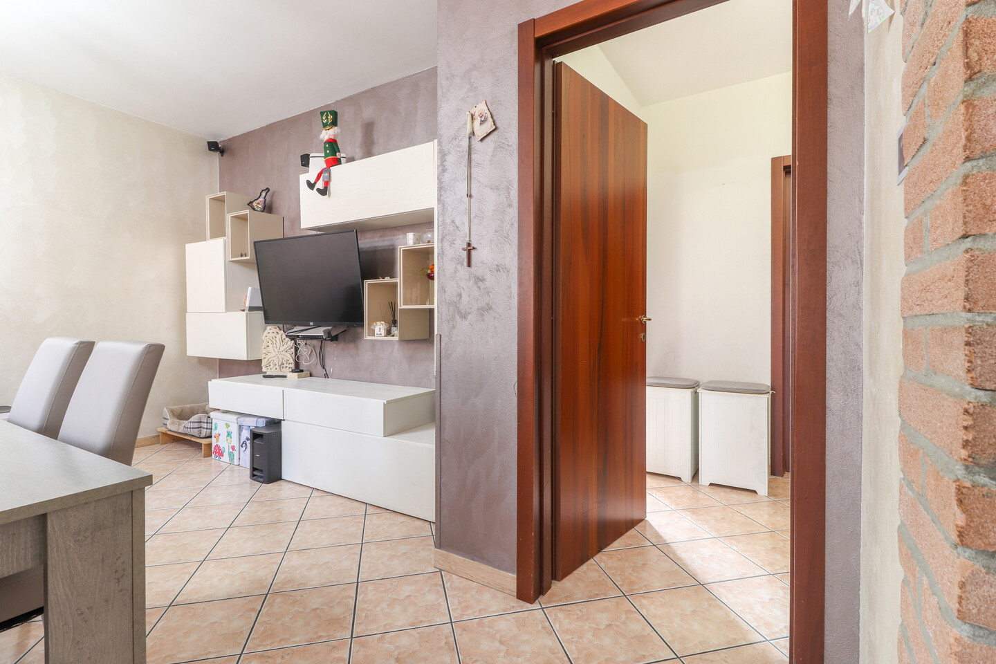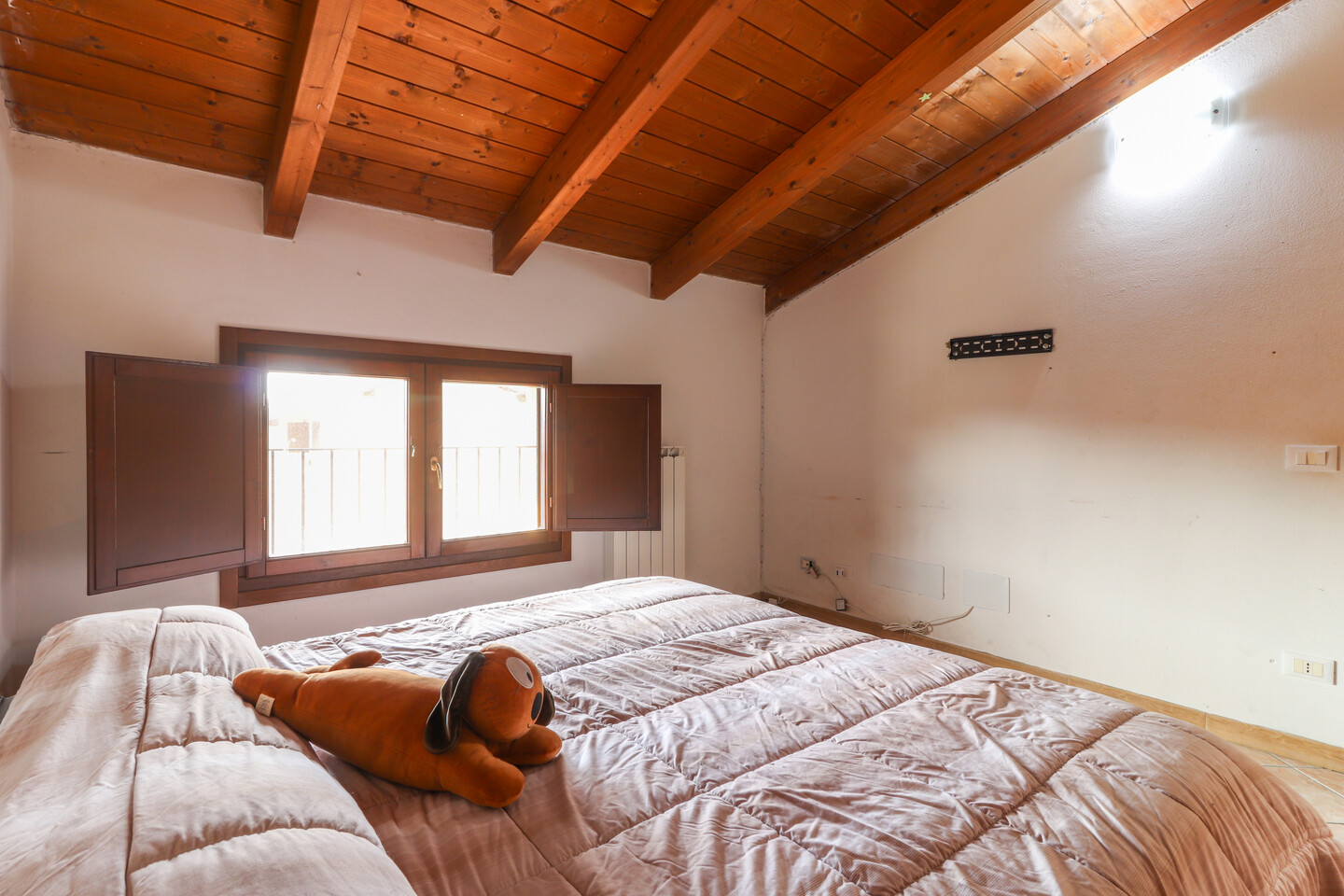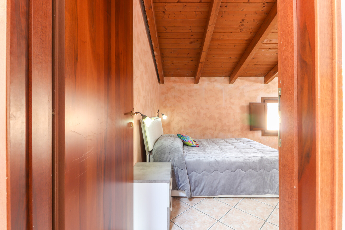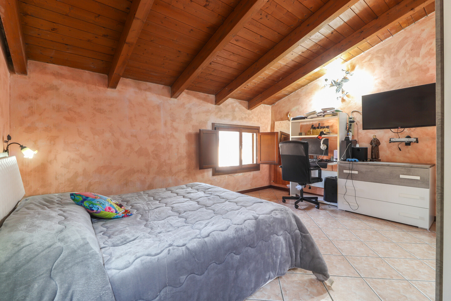 Porzione di casa sviluppata su due livelli; Ingresso al piano primo tramite scala esterna su soggiorno, cucina abitabile, camera da letto e bagno; al piano superiore un sottotetto con ulteriori 3 camere e bagno. A completare la proprietà giardino privato e garage.