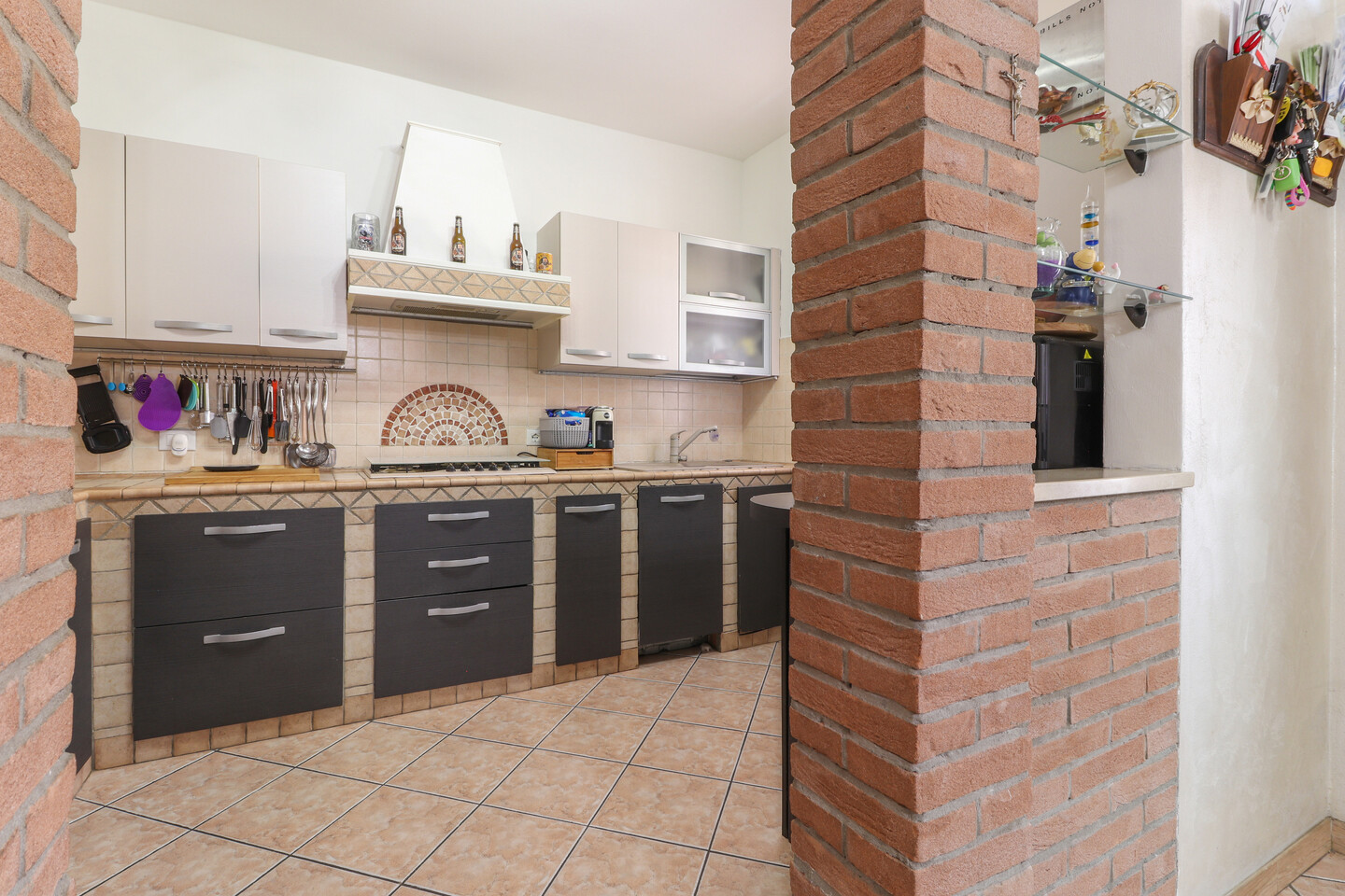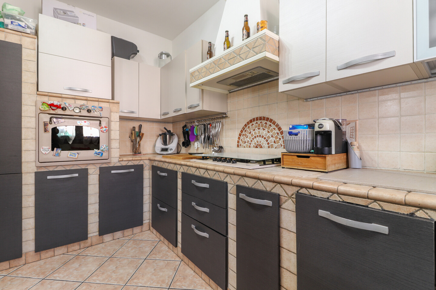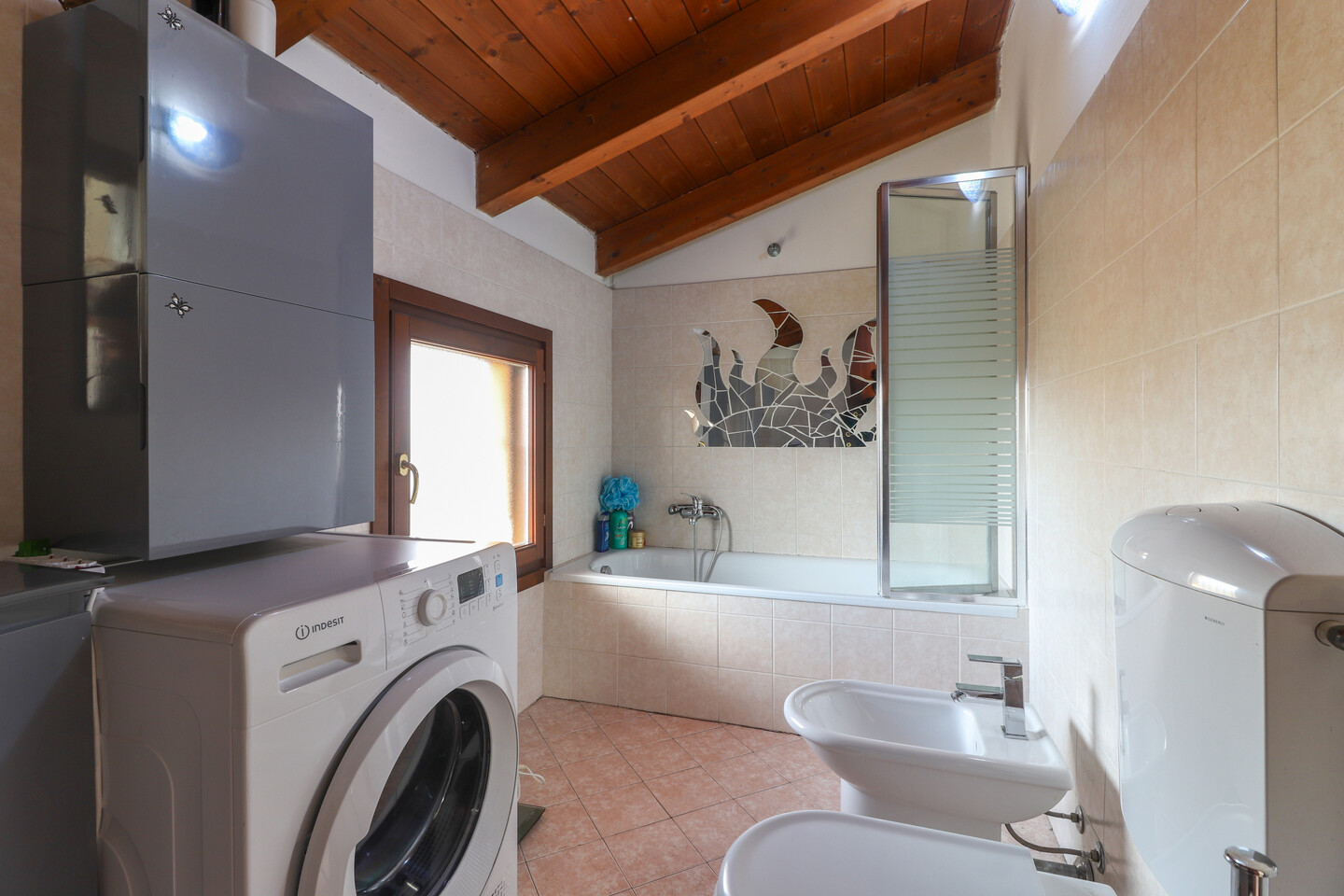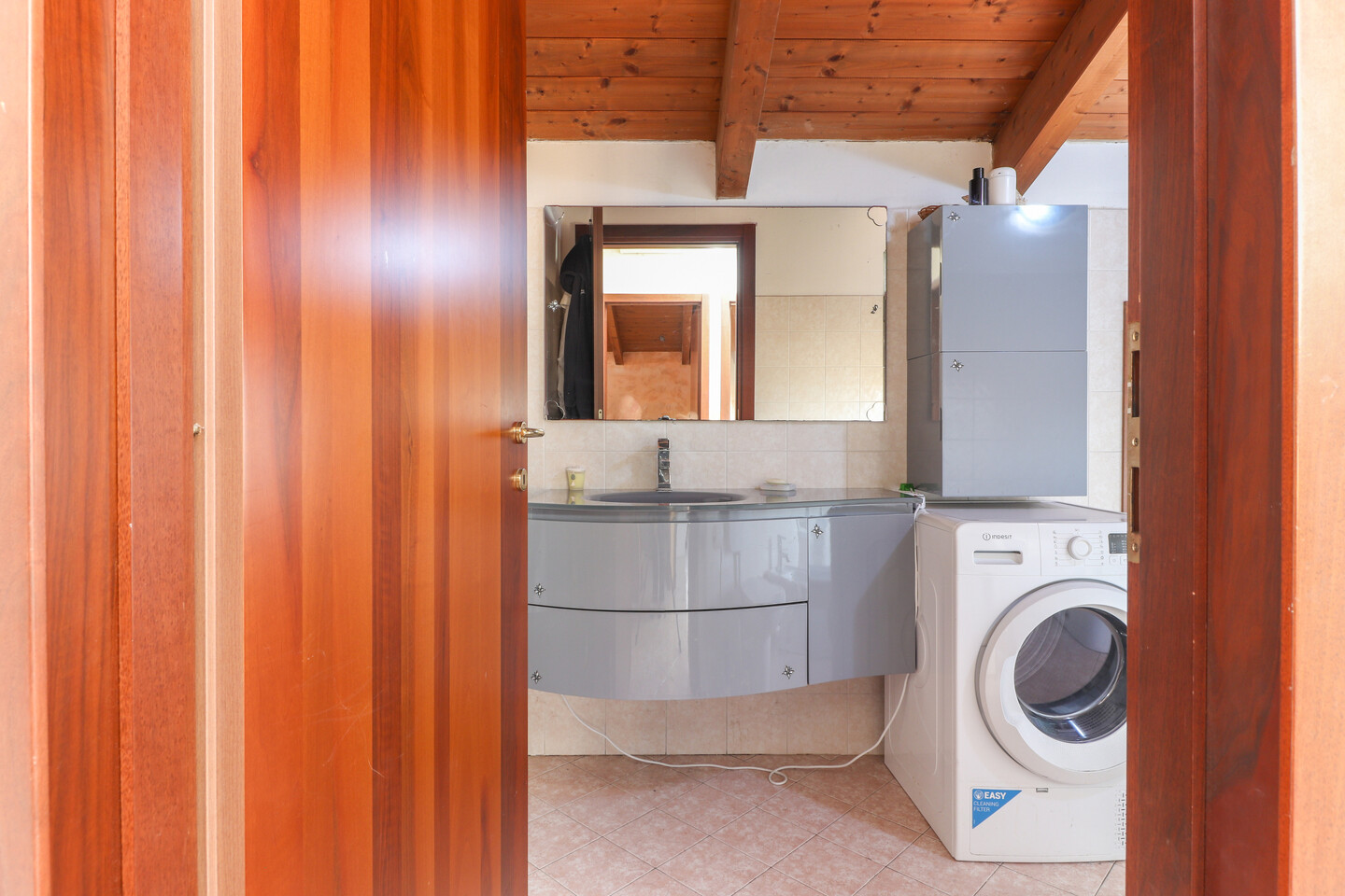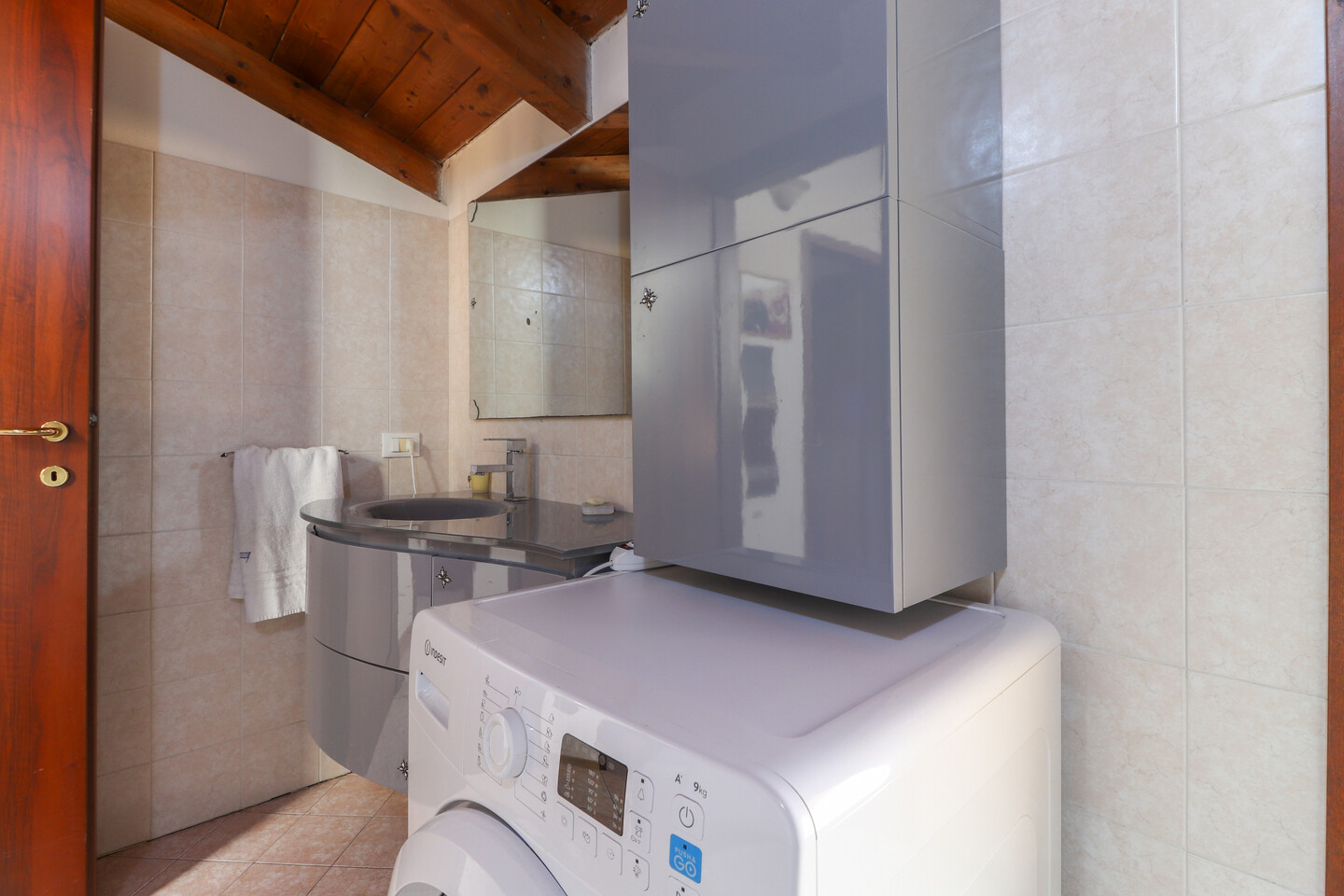 Porzione di casa sviluppata su due livelli; Ingresso al piano primo tramite scala esterna su soggiorno, cucina abitabile, camera da letto e bagno; al piano superiore un sottotetto con ulteriori 3 camere e bagno. A completare la proprietà giardino privato e garage.