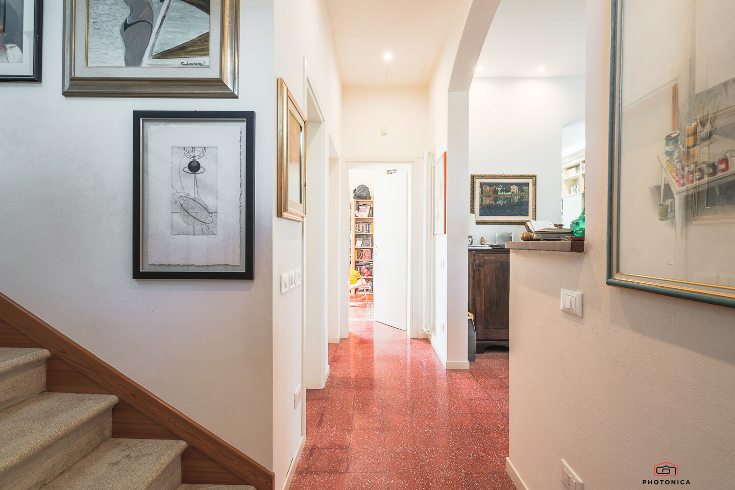 La villa è disposta su più livelli, composta da: al piano terra con ingresso accogliente che conduce ad una spaziosa cucina, soggiorno, uno studio per chi necessita di uno spazio professionale in casa, una zona pranzo e un bagno. Il portico esterno è il luogo perfetto per godere di momenti di relax all’aria aperta. Al primo piano, la zona notte è composta da tre camere da letto matrimoniali, due bagni e due ampie terrazze. Completano la proprietà cantine nel seminterrato e ampio giardino privato.