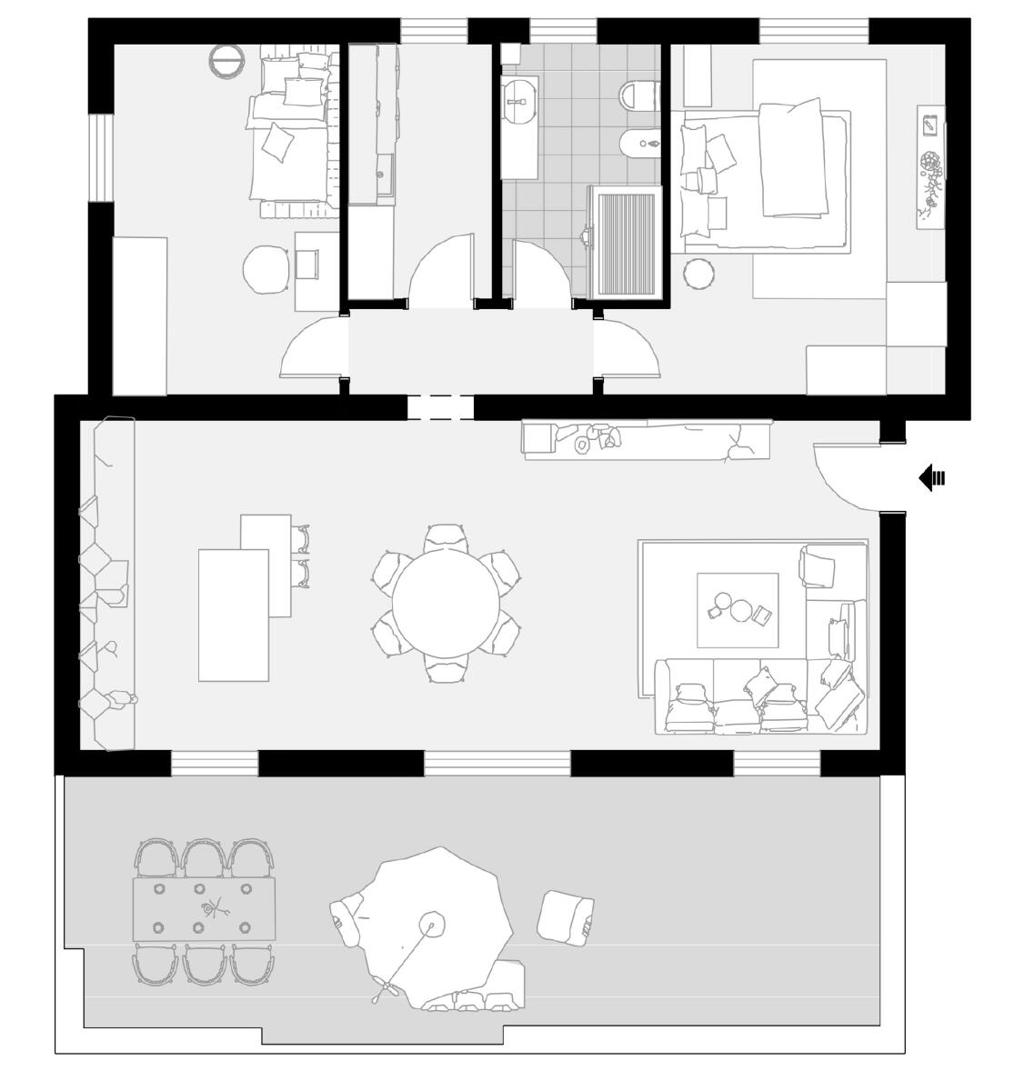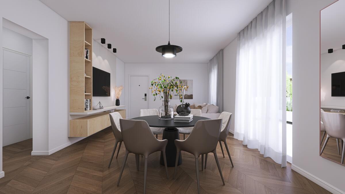 In piccola palazzina di sole quattro unità, appartamento (tip. A3bis) posto al primo nonché ultimo piano, con affaccio su tre lati. Internamente la soluzione si compone di ingresso su salone doppio di quasi 40 mq con zona cottura e accesso allo splendido terrazzo abitabile di 30 mq, disimpegno notte con 2 camere, bagno finestrato e lavanderia, anch’essa dotata di finestra. Completano la proprietà l’autorimessa e il posto auto esclusivo. Le unità saranno realizzate in classe energetica A4, con finiture e materiali di ottimo livello, con ampia possibilità di personalizzare in base ai propri gusti e preferenze, oltre all’utilizzo di impianti moderni di ultima generazione, isolamento termico avanzato, impianto fotovoltaico, che significano minimi consumi e ridotti costi di riscaldamento e raffrescamento.