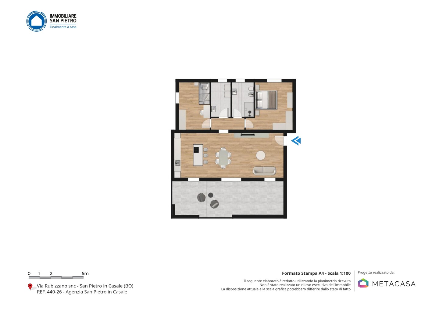 Appartamento con 3 camere e terrazzo, in vendita a San Pietro in Casale