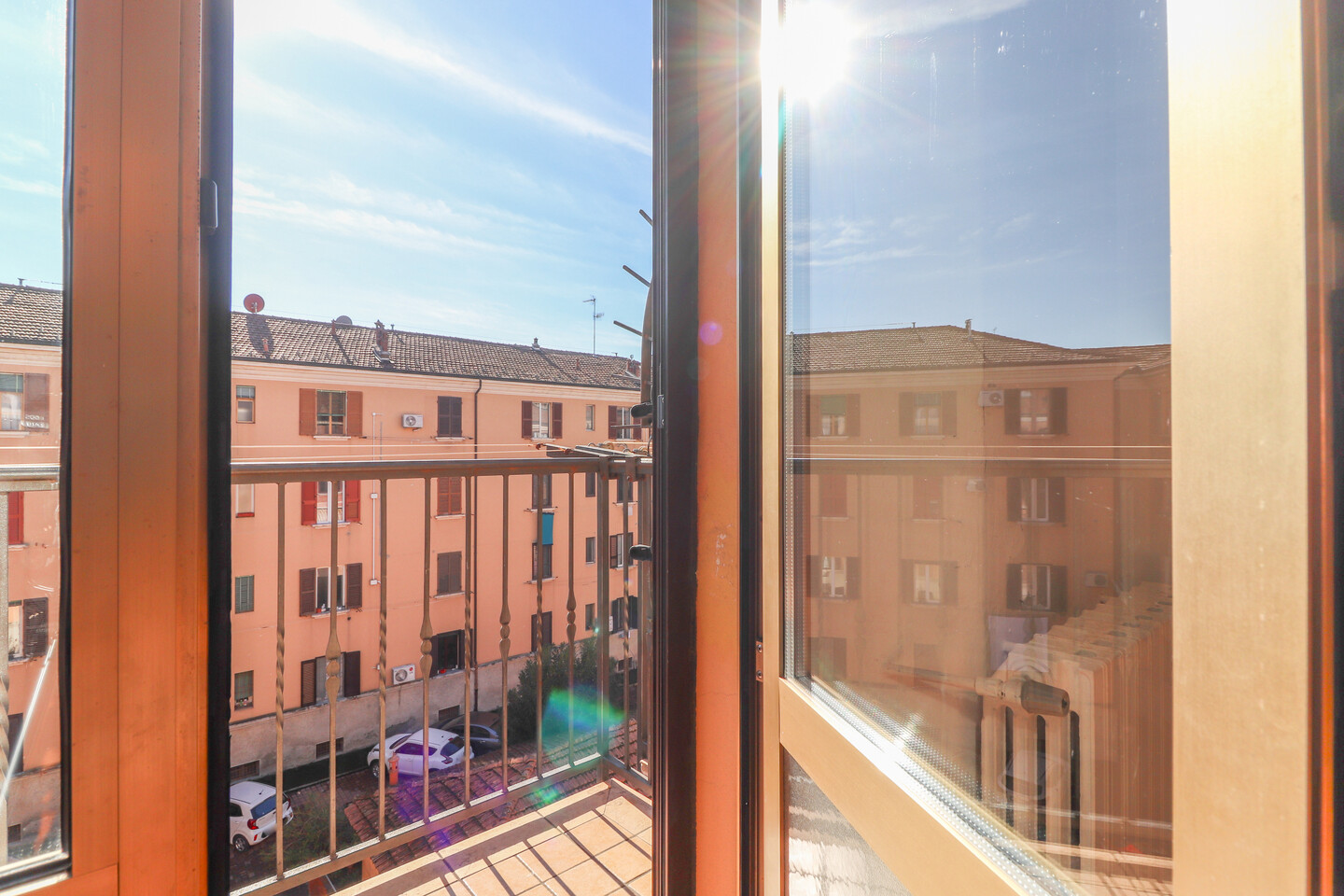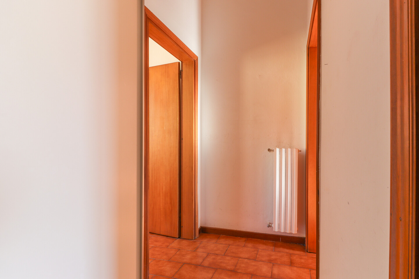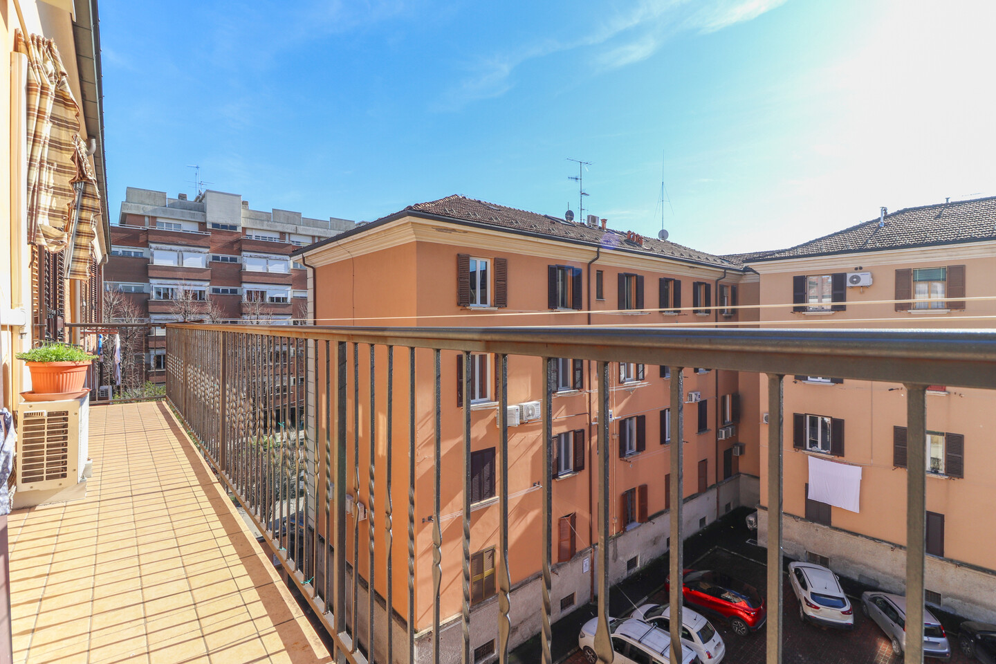 L’appartamento accoglie con un ingresso che conduce alla zona giorno, composta da soggiorno con angolo cottura, ben organizzato e piacevole da vivere. La zona notte offre una spaziosa camera matrimoniale, una camera doppia e un bagno finestrato. Punto di forza dell’immobile è il lungo balcone, che serve la camera matrimoniale, il soggiorno e il bagno, regalando luce naturale agli ambienti e uno spazio esterno vivibile. Completa la proprietà una cantina e un comodo posto auto scoperto.