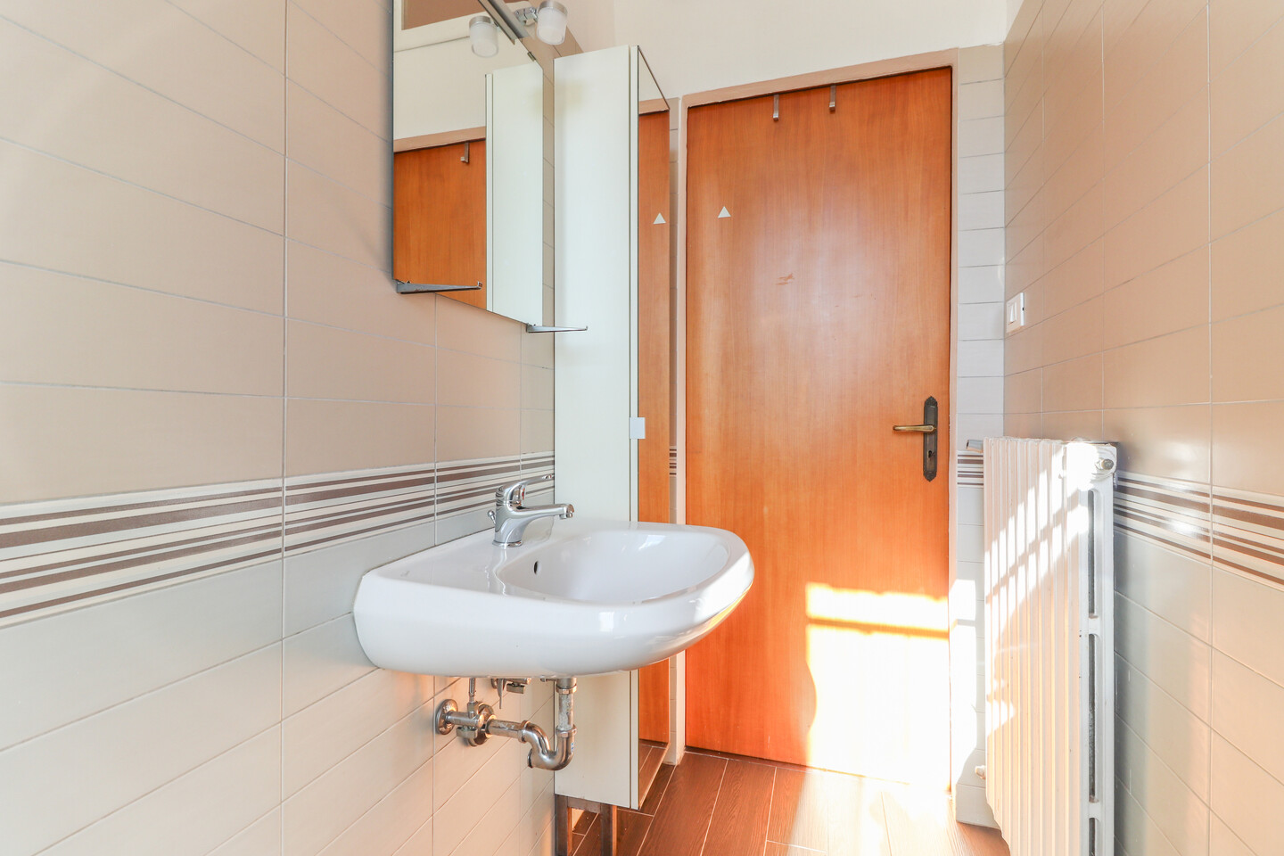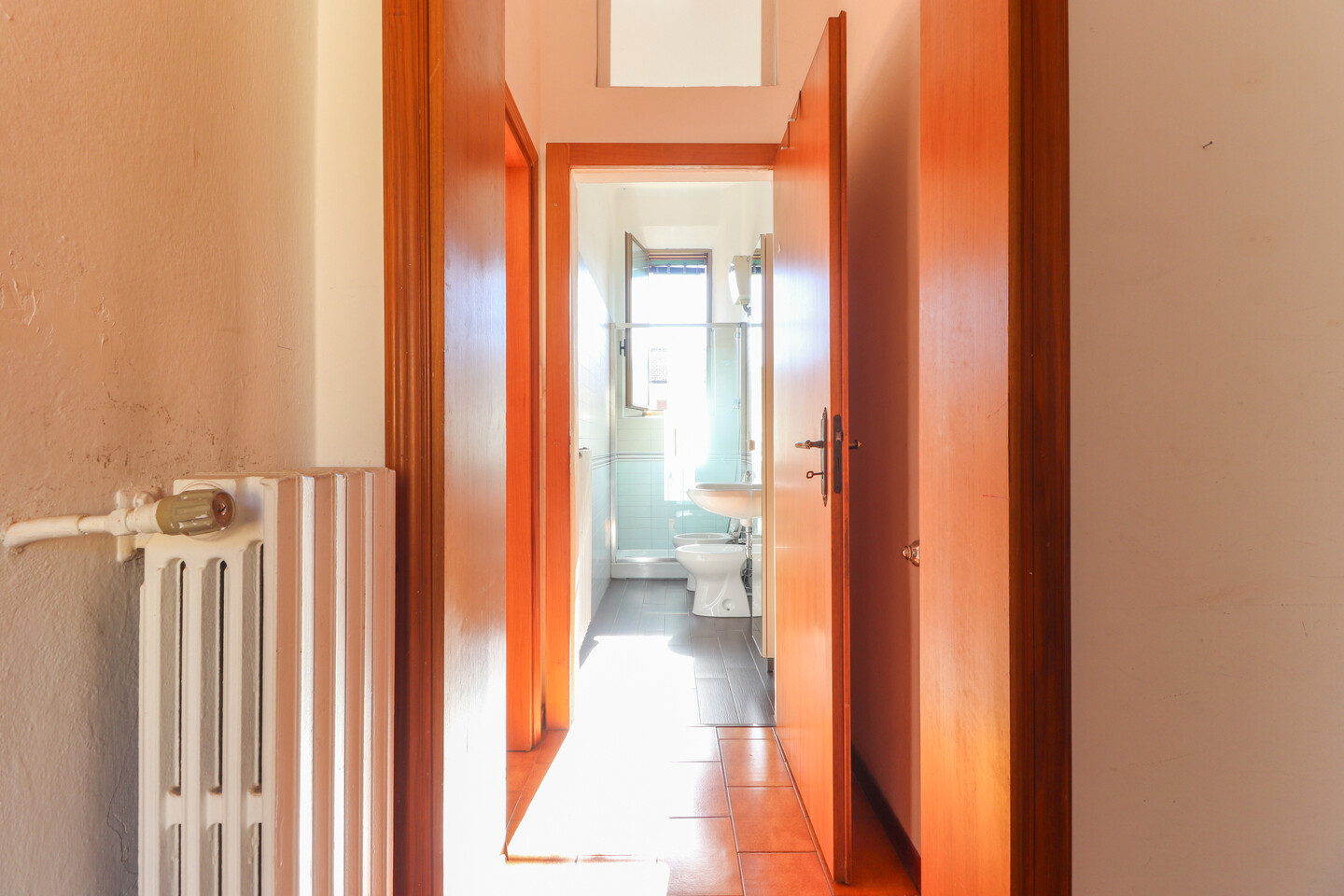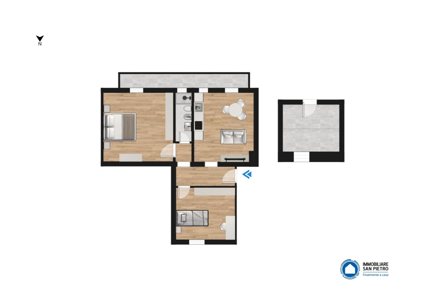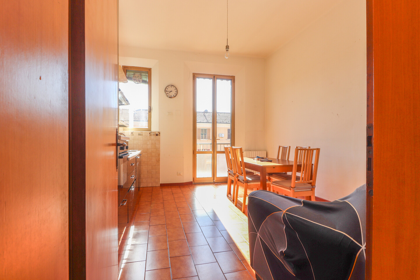L’appartamento accoglie con un ingresso che conduce alla zona giorno, composta da soggiorno con angolo cottura, ben organizzato e piacevole da vivere. La zona notte offre una spaziosa camera matrimoniale, una camera doppia e un bagno finestrato. Punto di forza dell’immobile è il lungo balcone, che serve la camera matrimoniale, il soggiorno e il bagno, regalando luce naturale agli ambienti e uno spazio esterno vivibile. Completa la proprietà una cantina e un comodo posto auto scoperto.