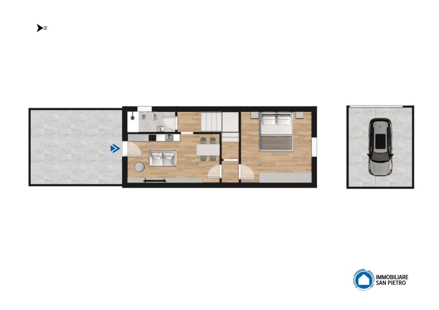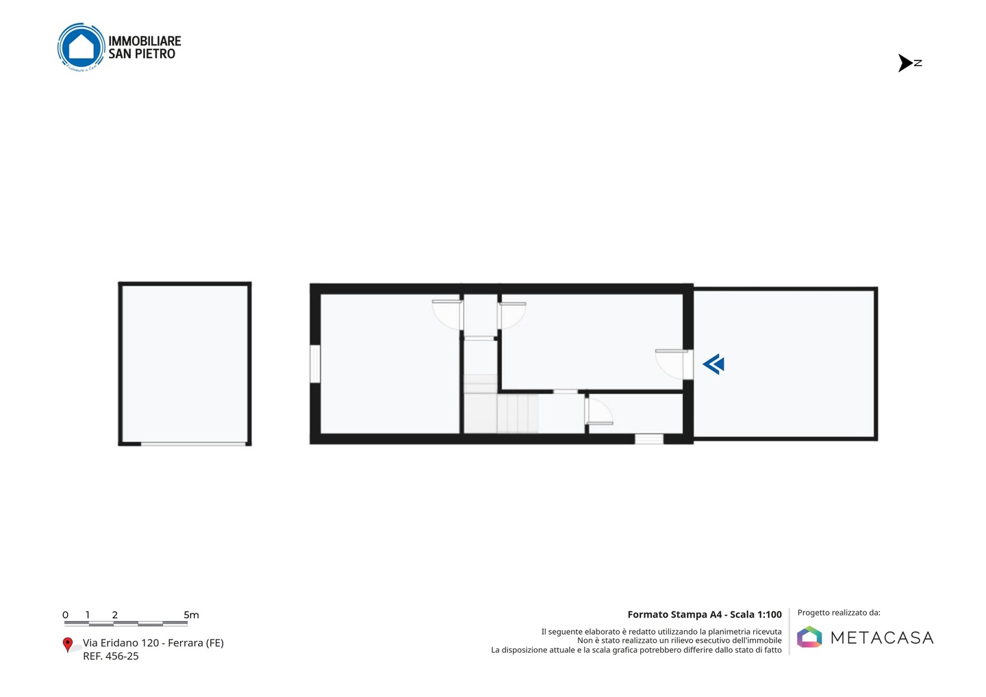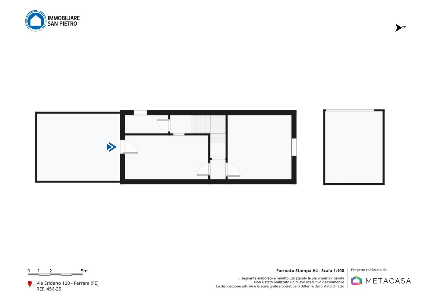 Fabbricato disposto su due livelli, con autorimessa e magazzino. Corte esclusiva circostante compresa. In fase di frazionamento.