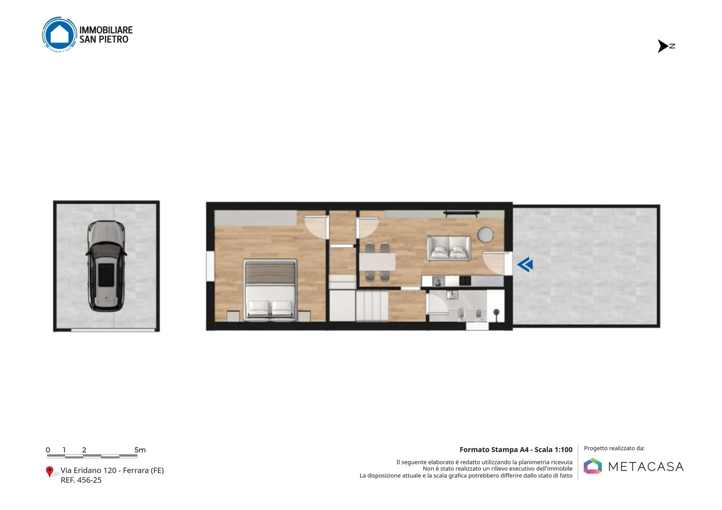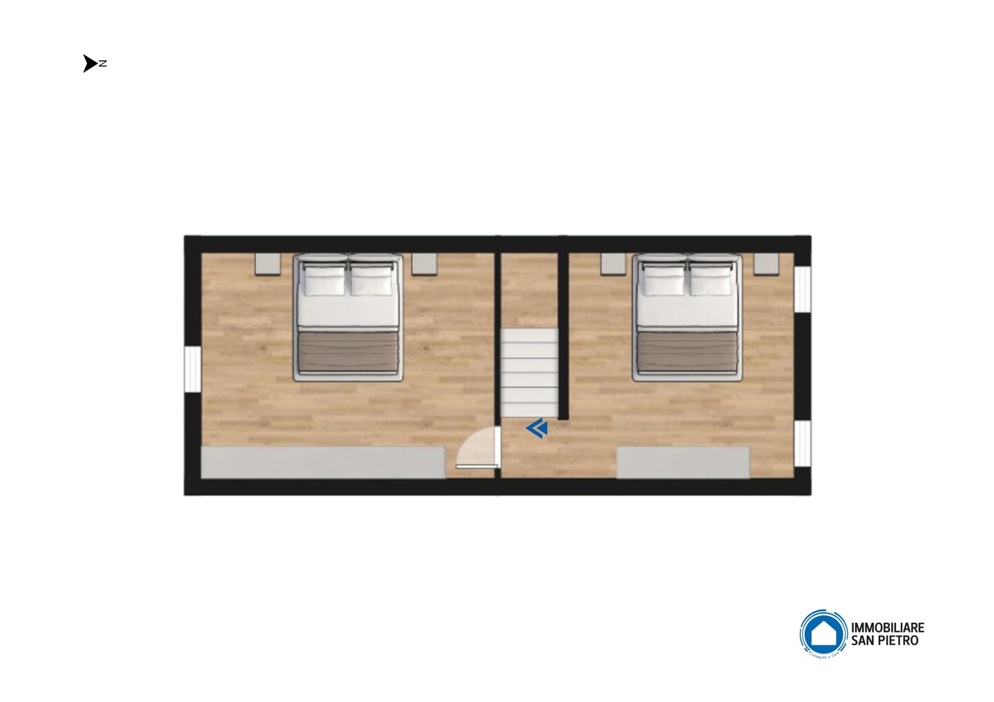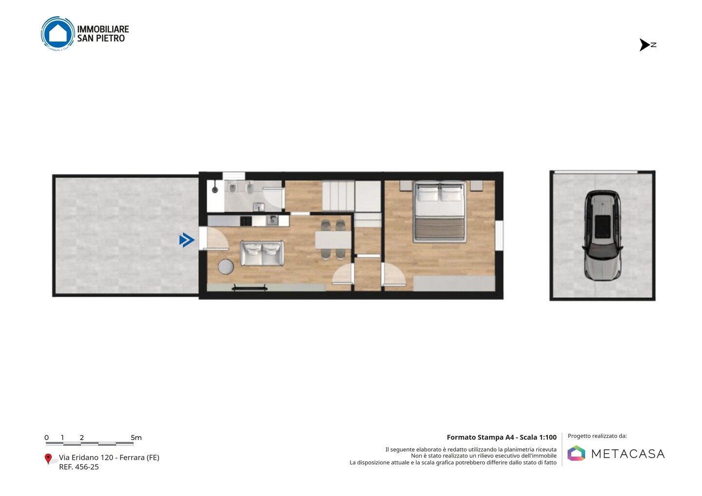 Fabbricato disposto su due livelli, con autorimessa e magazzino. Corte esclusiva circostante compresa. In fase di frazionamento.
