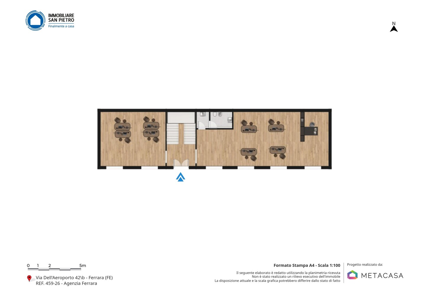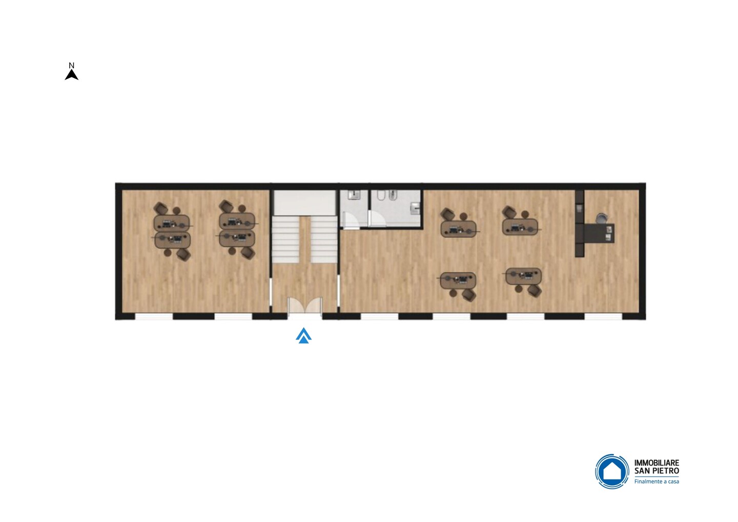 L’immobile si presenta con ingresso indipendente, caratteristica che garantisce autonomia e privacy nello svolgimento dell’attività professionale. Internamente è composto da un unico ambiente open space, facilmente divisibile in più postazioni o uffici separati in base alle esigenze operative.