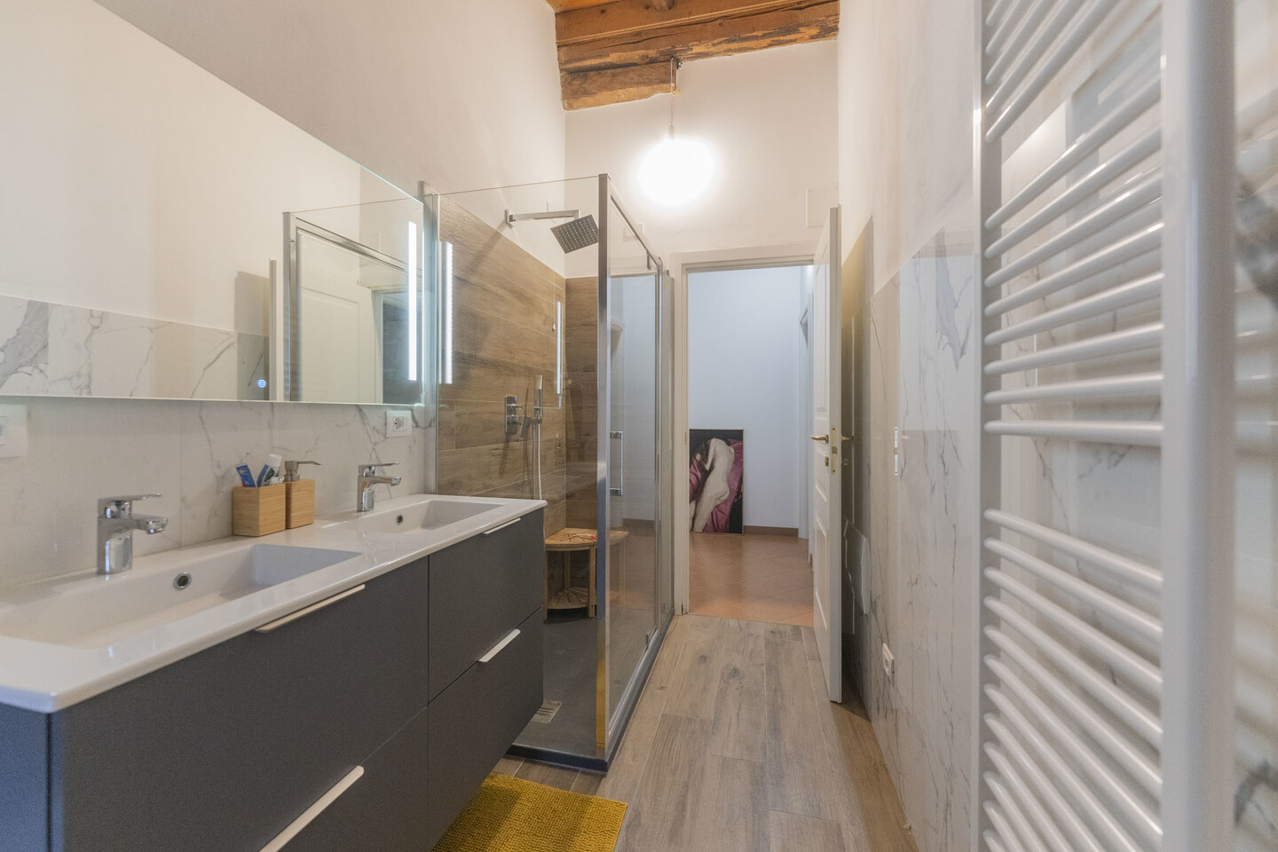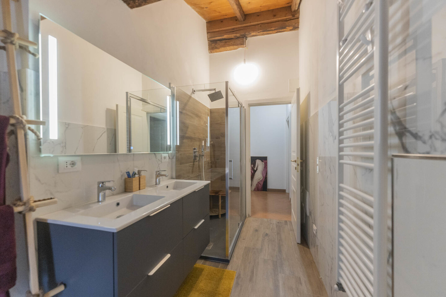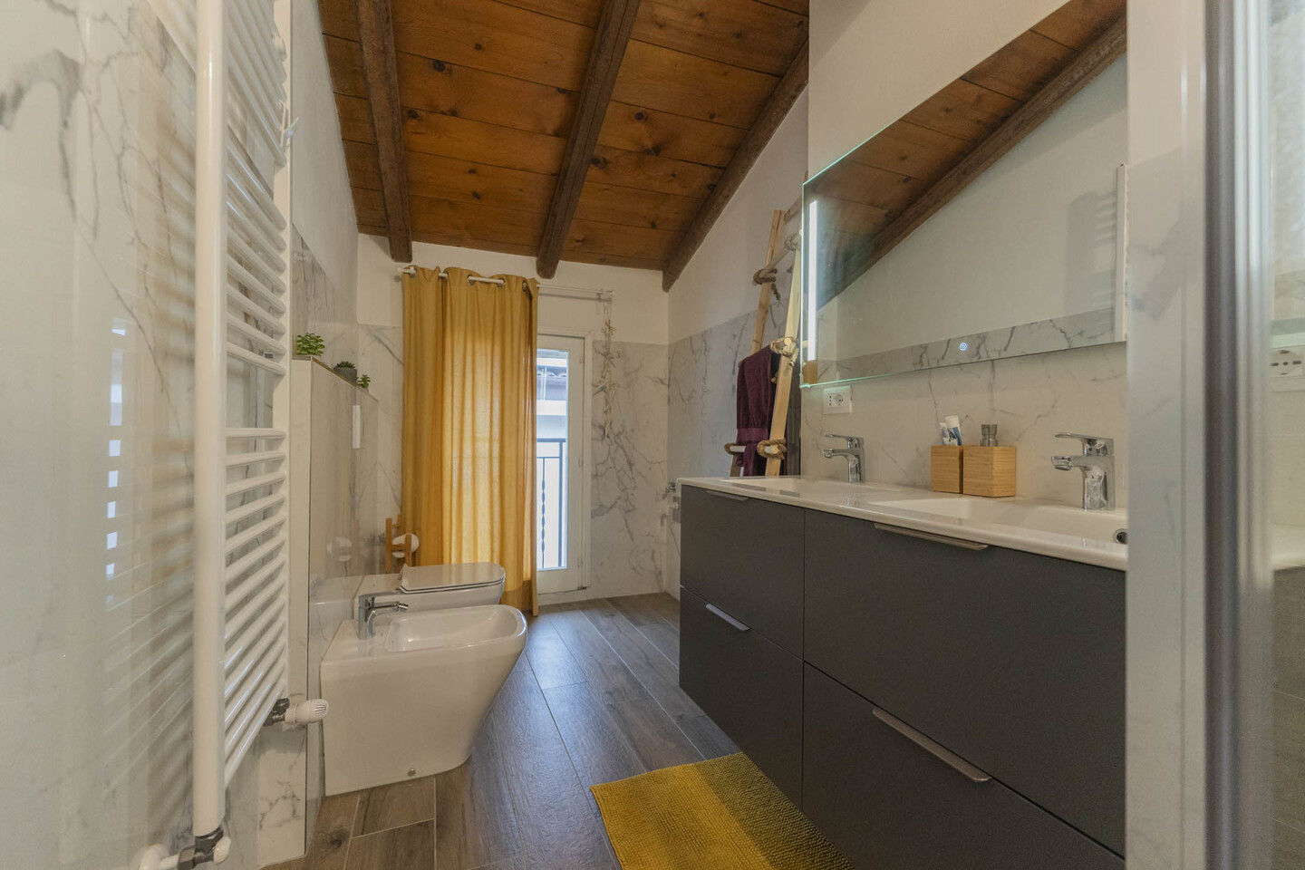 In un’elegante palazzina ben tenuta, proponiamo un appartamento su due livelli, primo e ultimo piano, un vero gioiello di spazio e comfort. Al primo piano, un ingresso accogliente introduce un ampio salone, una cucina abitabile e una camera matrimoniale con bagno, il tutto con accesso a un terrazzo interno, ideale per momenti di relax. Una comoda scala conduce al secondo e ultimo piano, dove si trovano due spaziose camere matrimoniali, un ulteriore bagno, un pratico ripostiglio e un generoso locale multiuso, perfetto per studio o hobby. L’immobile, in ottime condizioni, è dotato di riscaldamento autonomo e, al piano superiore, di condizionamento con pompa di calore e suggestive travi a vista, che aggiungono calore e carattere. Completa la proprietà una cantina al piano terra.