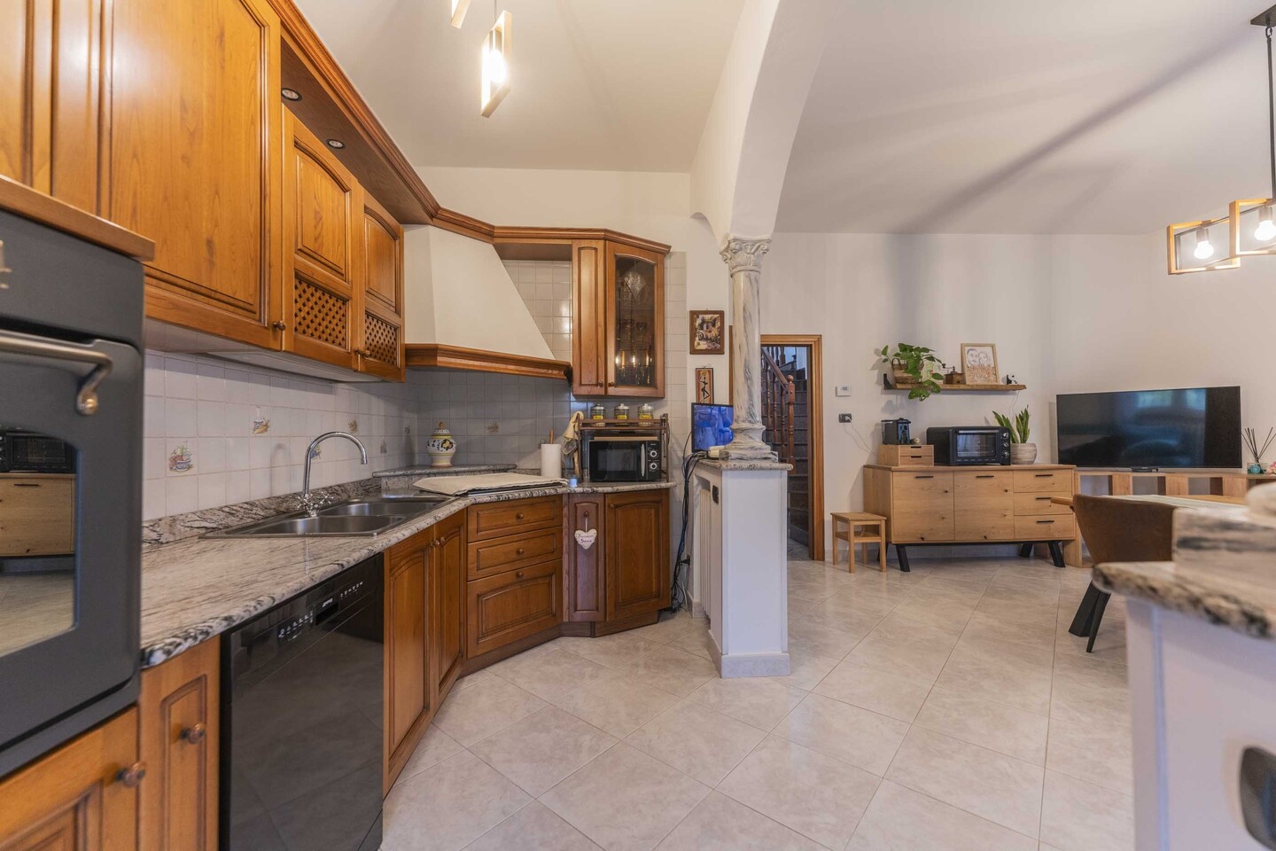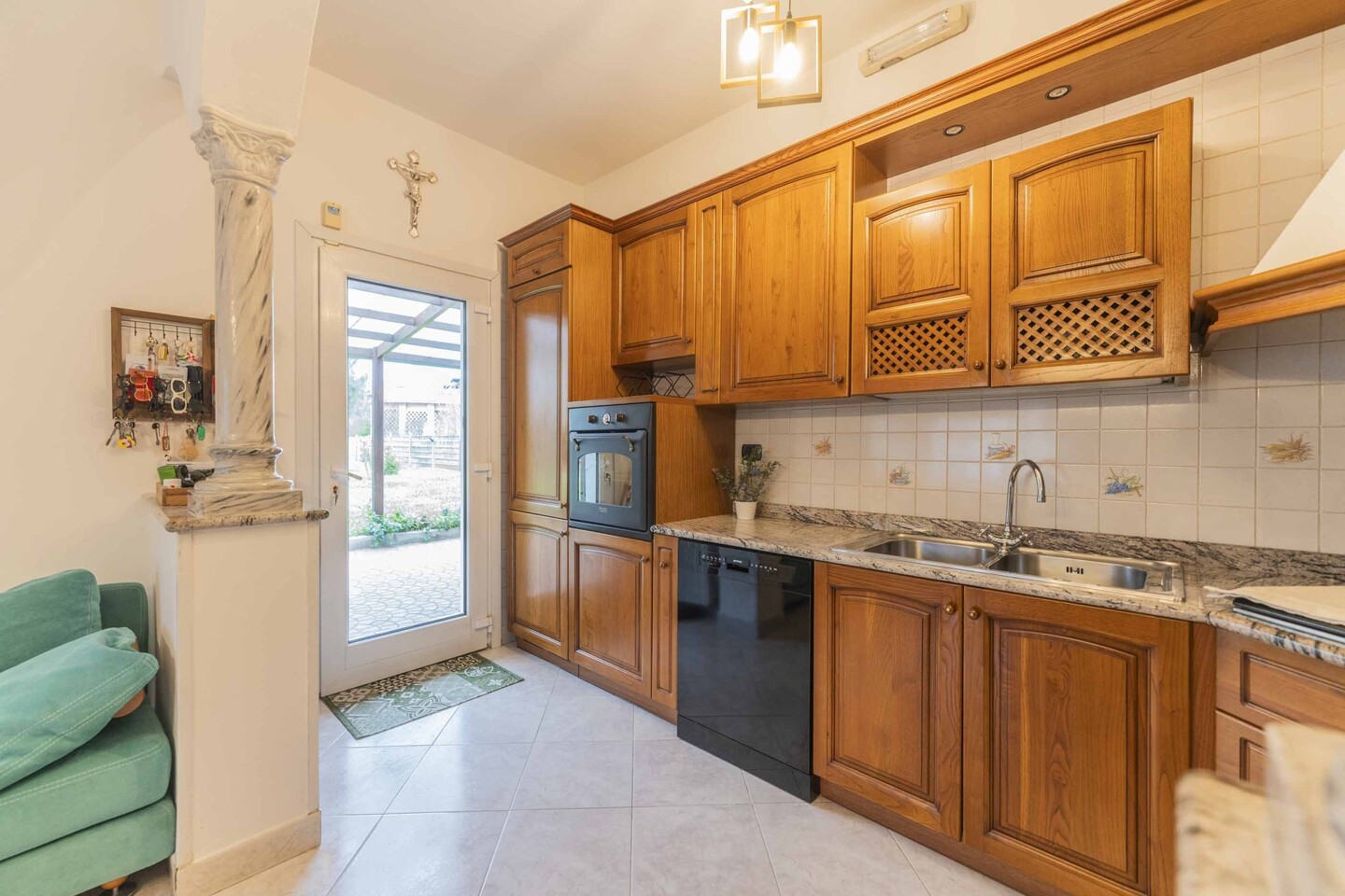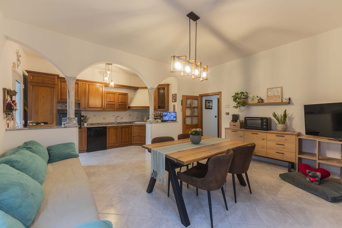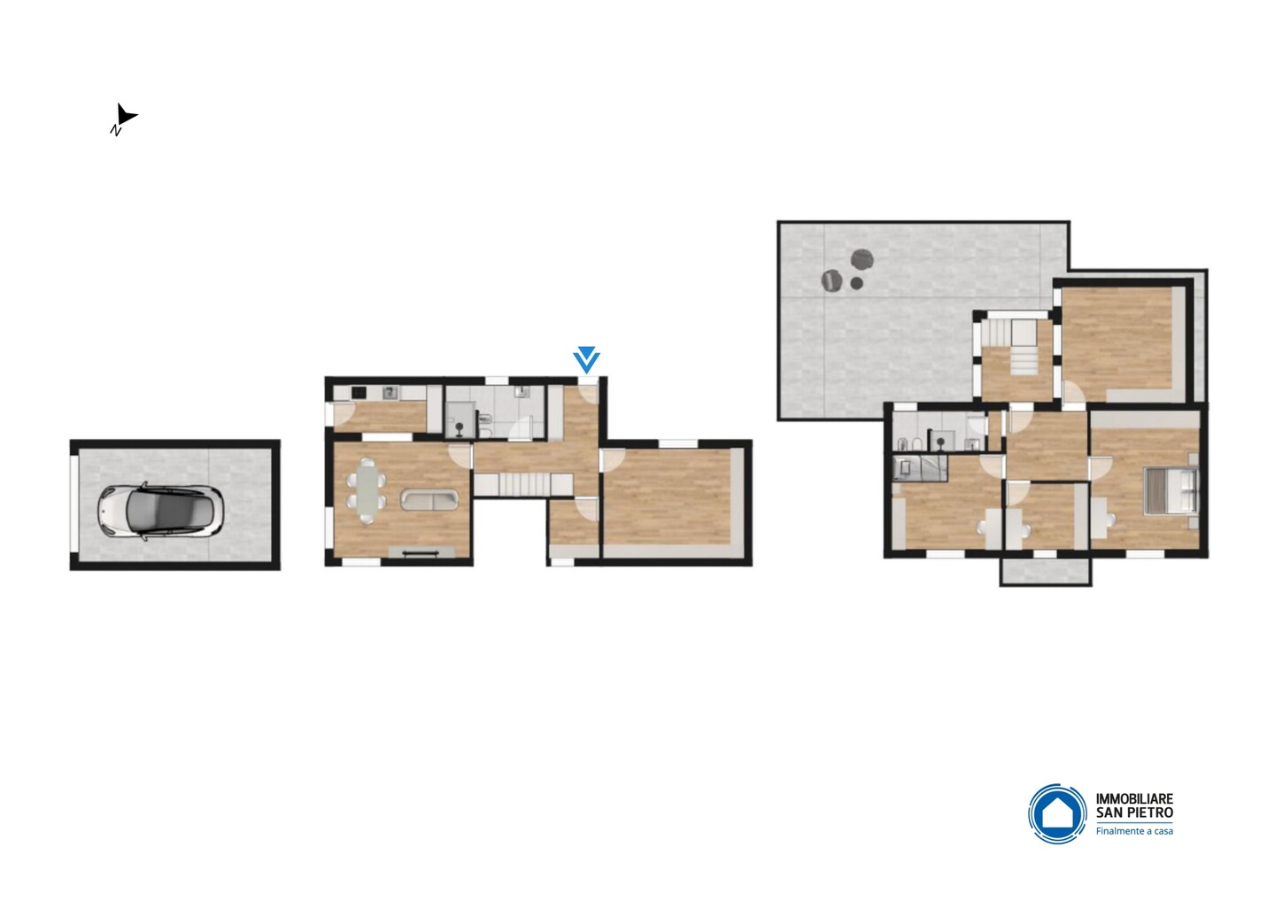 Abitazione indipendente suddivisa in 2 appartamenti collegati internamente. Al piano terra troviamo un bilocale completo con angolo cottura. Sempre con accesso al piano terra troviamo un secondo appartamento disposto su 2 livelli dotato di 2 camere da letto (ricavabile la terza al piano terra). Giardino su quattro lati di 1500mq e fabbricati accessori sul retro con garage, ripostiglio, lavanderia, cantina.