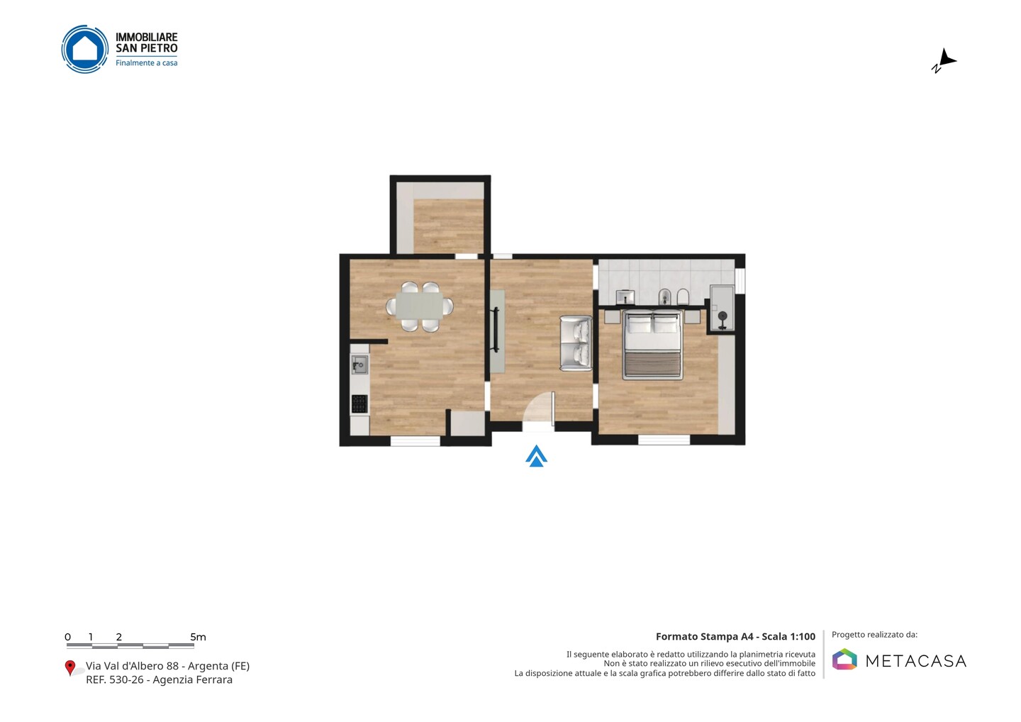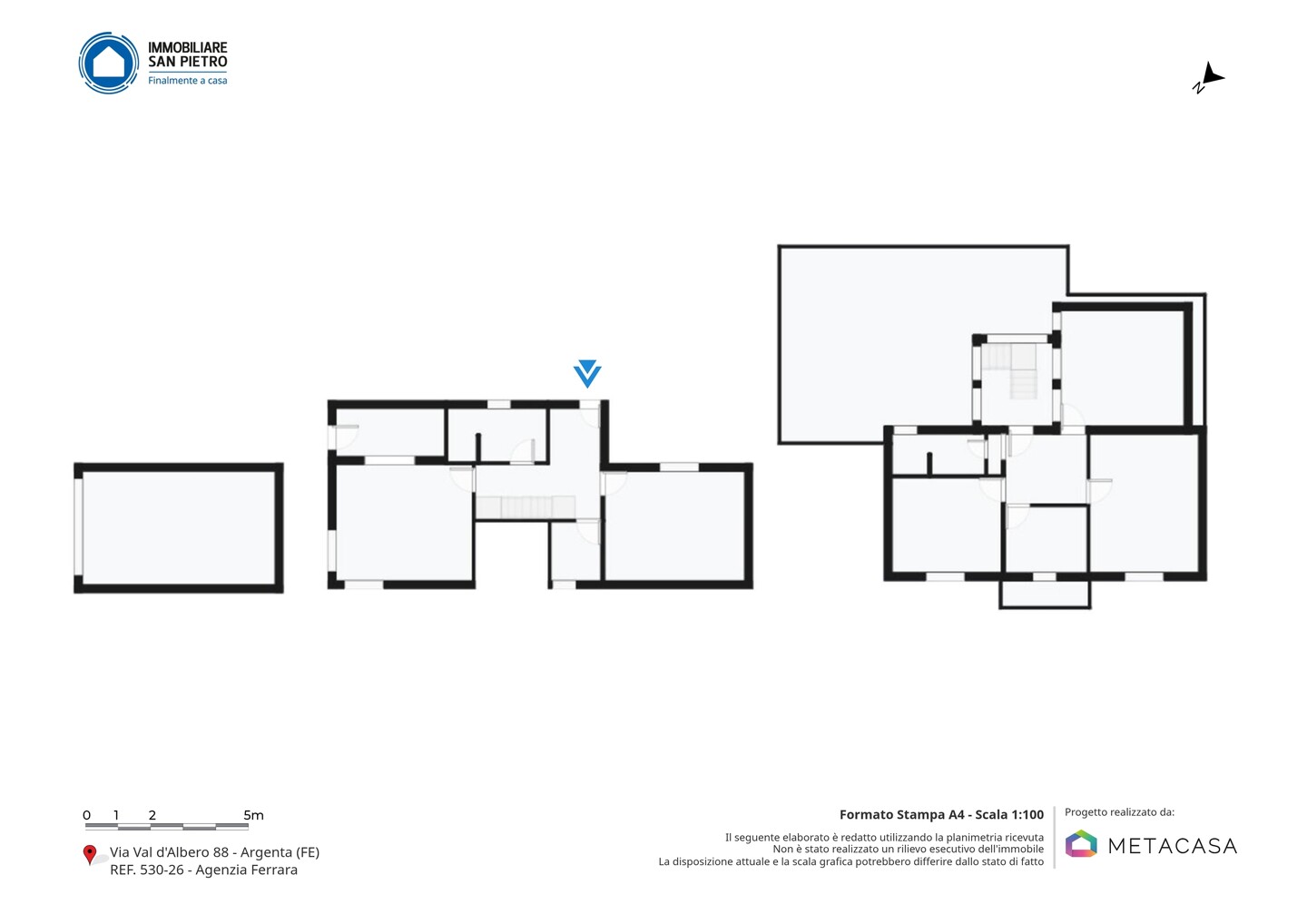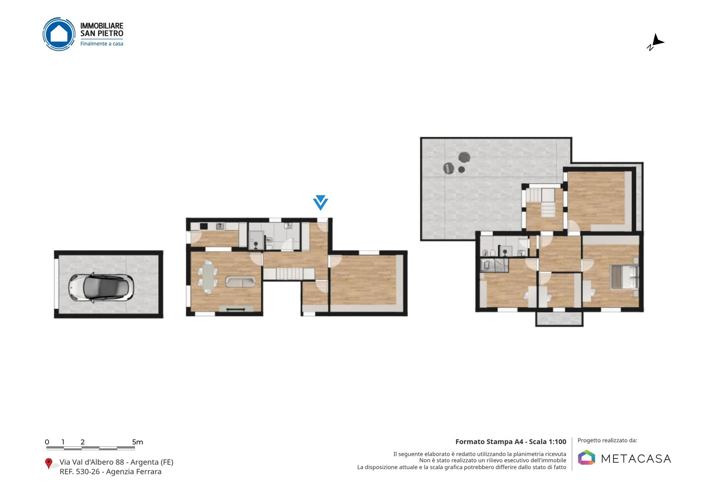 La proprietà si inserisce in un contesto residenziale tranquillo e riservato, caratterizzato da ampi spazi verdi e bassa densità abitativa, ideale per chi cerca privacy e contatto con la natura. La zona di Val d’Albero è immersa nella campagna ferrarese, con un’atmosfera rilassante e poco trafficata, pur restando ben collegata al centro del paese. Il centro di Argenta dista circa 5–7 km ed è facilmente raggiungibile in pochi minuti d’auto, offrendo tutti i principali servizi. Tra questi si segnala l’Ospedale Mazzolani Vandini, situato a circa 10 minuti. Comodi anche i collegamenti con Ferrara e Ravenna, raggiungibili rispettivamente in circa 35 e 40 minuti.