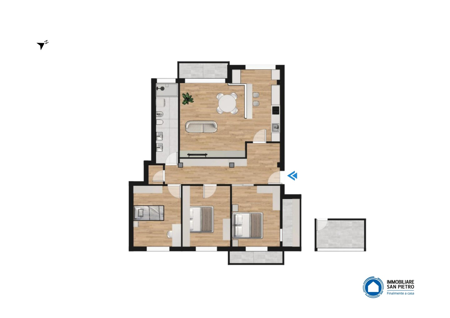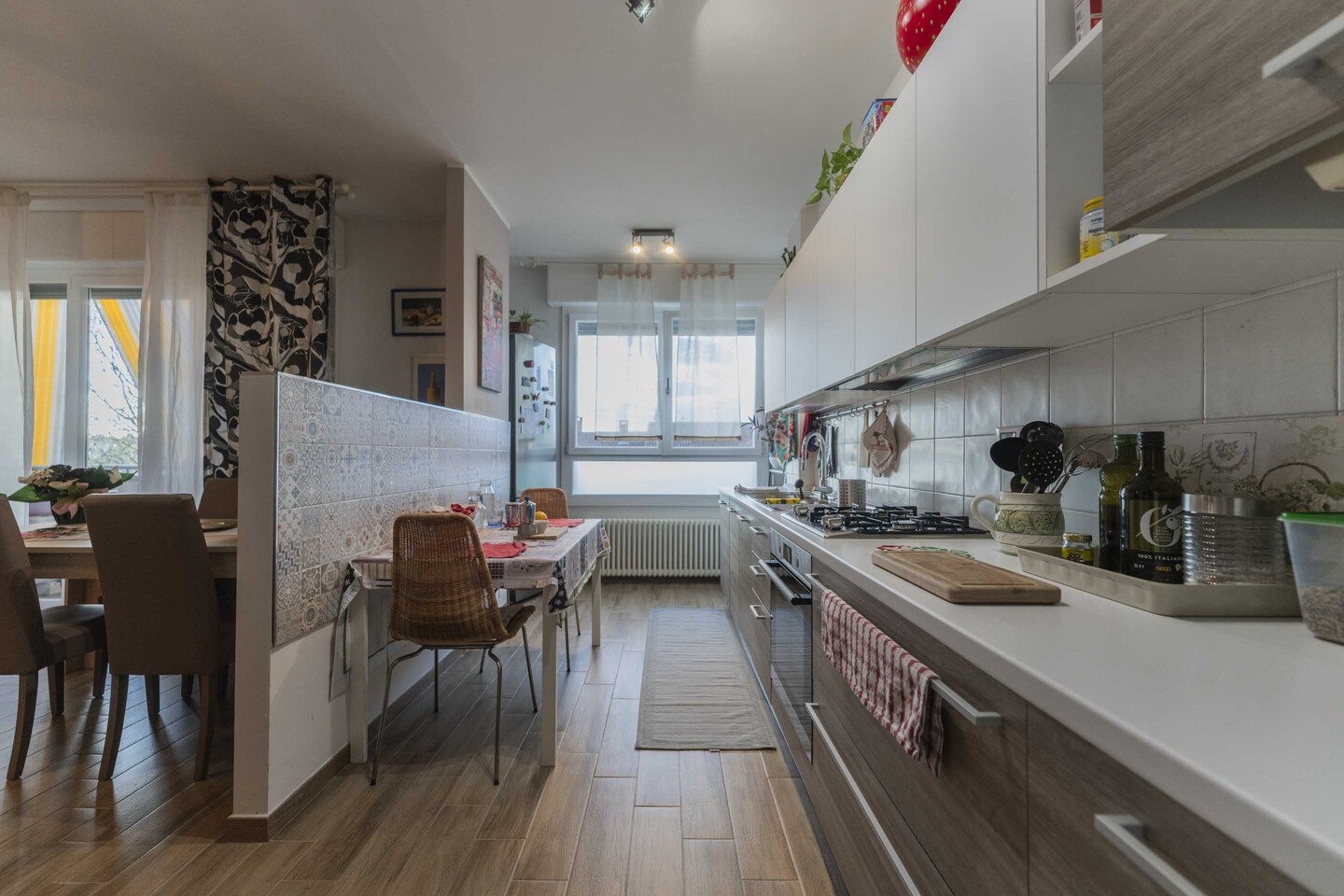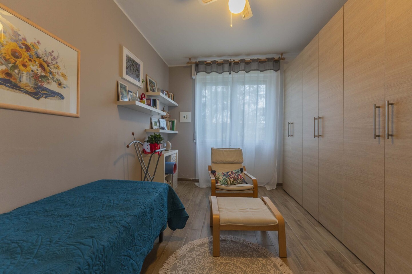 L’appartamento, situato al secondo piano di un fabbricato condominiale, con vano scala che serve solo 4 unità immobiliari, è così composto: ingresso, soggiorno con accesso diretto alla cucina abitabile (dal quale si accede direttamente al primo balcone), disimpegno notte arredabile, 3 camere da letto, tutte di ottime dimensioni e una di queste servita da secondo balcone e stenditoio. Grande bagno finestrato e comodo ripostiglio. Al piano terra cantina ed autorimessa, con ampio spazio di manovra per l’automobile e grazioso giardino condominiale. Internamente l’immobile si presenta in ottime condizioni, completamente ristrutturato nel 2023, presenta porte interne bianco serigrafate, finestre Finstral in pvc bianco doppiovetro, tutte con doppia apertura, battente e vasistas, tapparelle in alluminio, zanzariere, riscaldamento autonomo, impianti certificati e condizionamento con pompa di calore.
