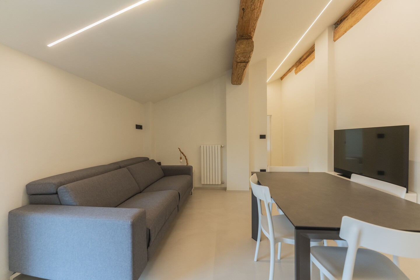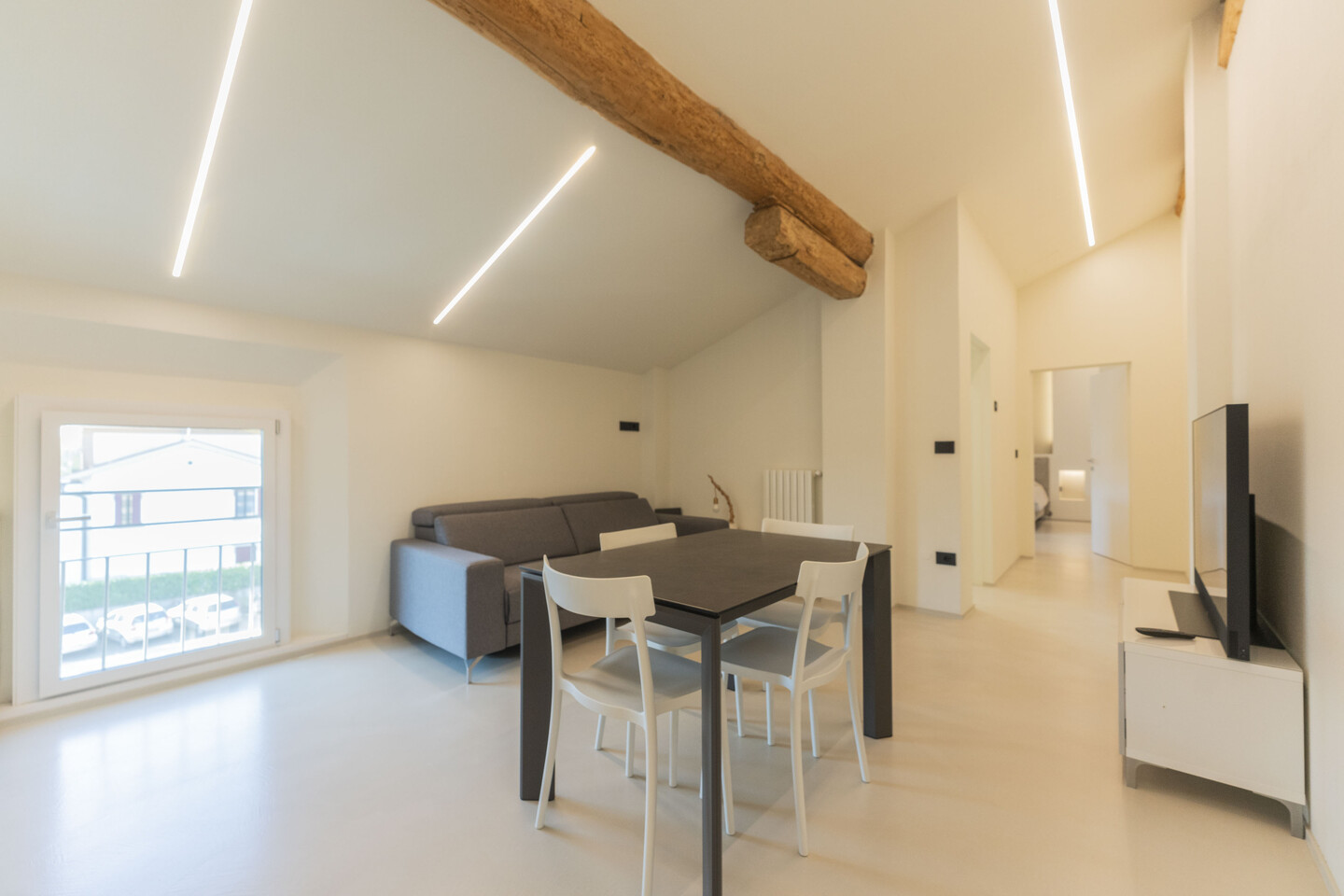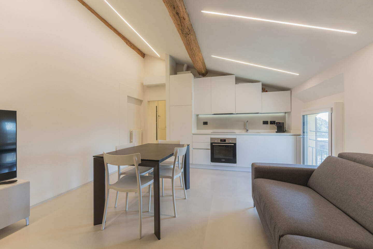 Situato al secondo ed ultimo piano, l’appartamento è stato oggetto di una ristrutturazione integrale nel 2023 con finiture di pregio e impianti di ultima generazione. La distribuzione degli spazi prevede un ingresso su disimpegno che conduce alla zona living con angolo cottura, concepita per la massima funzionalità estetica. La zona notte si compone di una camera matrimoniale spaziosa e di un secondo vano versatile, ideale come studio o cabina armadio, serviti da un bagno rifinito con materiali contemporanei. Al piano, con ingresso diretto dall’appartamento, una comodissima cantina, adibita a lavanderia. Dotato di riscaldamento termoautonomo, l’immobile garantisce totale un’ottima efficienza energetica B. Completa la proprietà un indispensabile posto auto privato interno. Un investimento sicuro per chi esige qualità tecnica e prestigio nel cuore pulsante del paese.