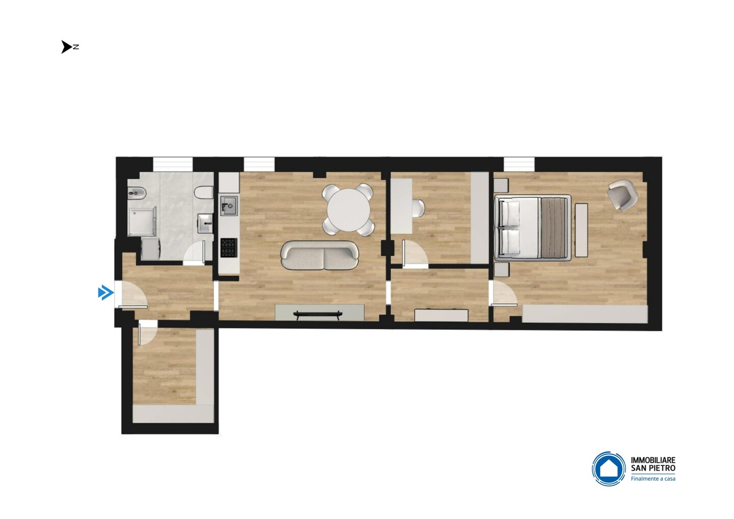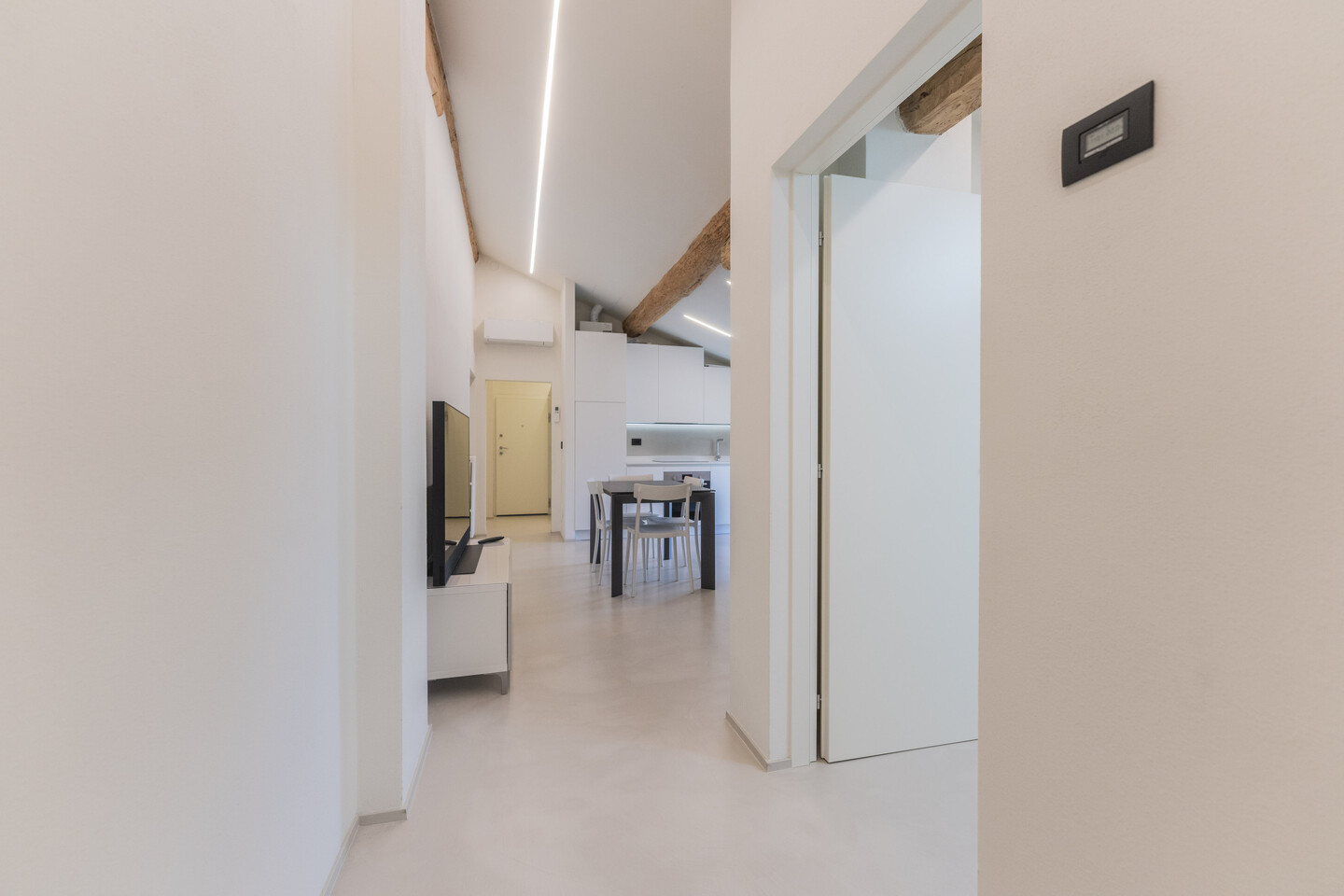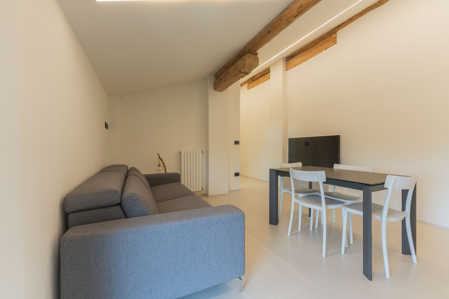 Situato al secondo ed ultimo piano, l’appartamento è stato oggetto di una ristrutturazione integrale nel 2023 con finiture di pregio e impianti di ultima generazione. La distribuzione degli spazi prevede un ingresso su disimpegno che conduce alla zona living con angolo cottura, concepita per la massima funzionalità estetica. La zona notte si compone di una camera matrimoniale spaziosa e di un secondo vano versatile, ideale come studio o cabina armadio, serviti da un bagno rifinito con materiali contemporanei. Al piano, con ingresso diretto dall’appartamento, una comodissima cantina, adibita a lavanderia. Dotato di riscaldamento termoautonomo, l’immobile garantisce totale un’ottima efficienza energetica B. Completa la proprietà un indispensabile posto auto privato interno. Un investimento sicuro per chi esige qualità tecnica e prestigio nel cuore pulsante del paese.