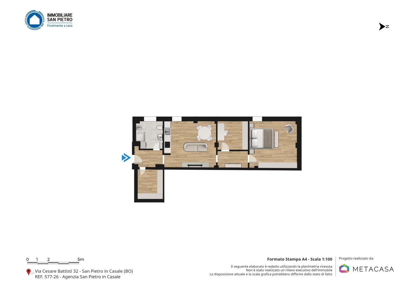 L’appartamento si trova nel pieno centro di San Pietro in Casale, adiacente alla Piazza Giovanni XXIII, al Bar Italia e alla stazione ferroviaria, ideale per muoversi comodamente verso Bologna o Ferrara. A pochi passi troviamo tutti i principali servizi presenti sul territorio, come tabacchi, banche, poste, uffici comunali, supermercati e negozi di alimentari, farmacie, asilo nido, scuola materna, elementari e medie. E’ ben provvisto anche di servizi secondari, ma comunque fondamentali per lo svago ed il tempo libero come ristoranti, parchi, centro sportivo e biblioteche. Sono presenti fermate dell’autobus di linea 97 e a pochi chilometri è presente anche il casello autostradale di Altedo con entrata/uscita dedicata (autostrada A13).