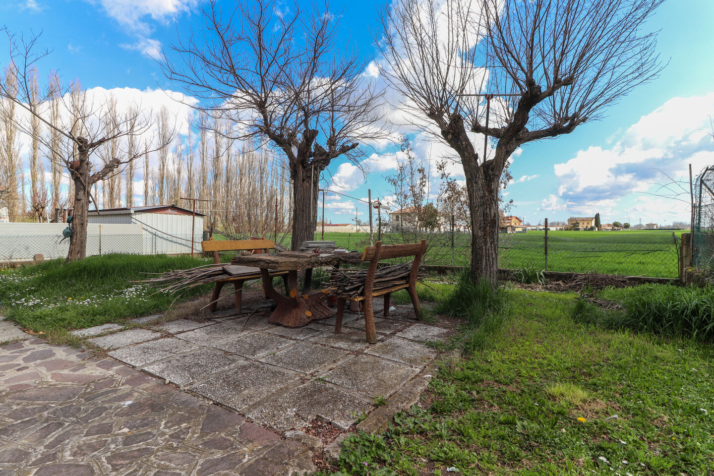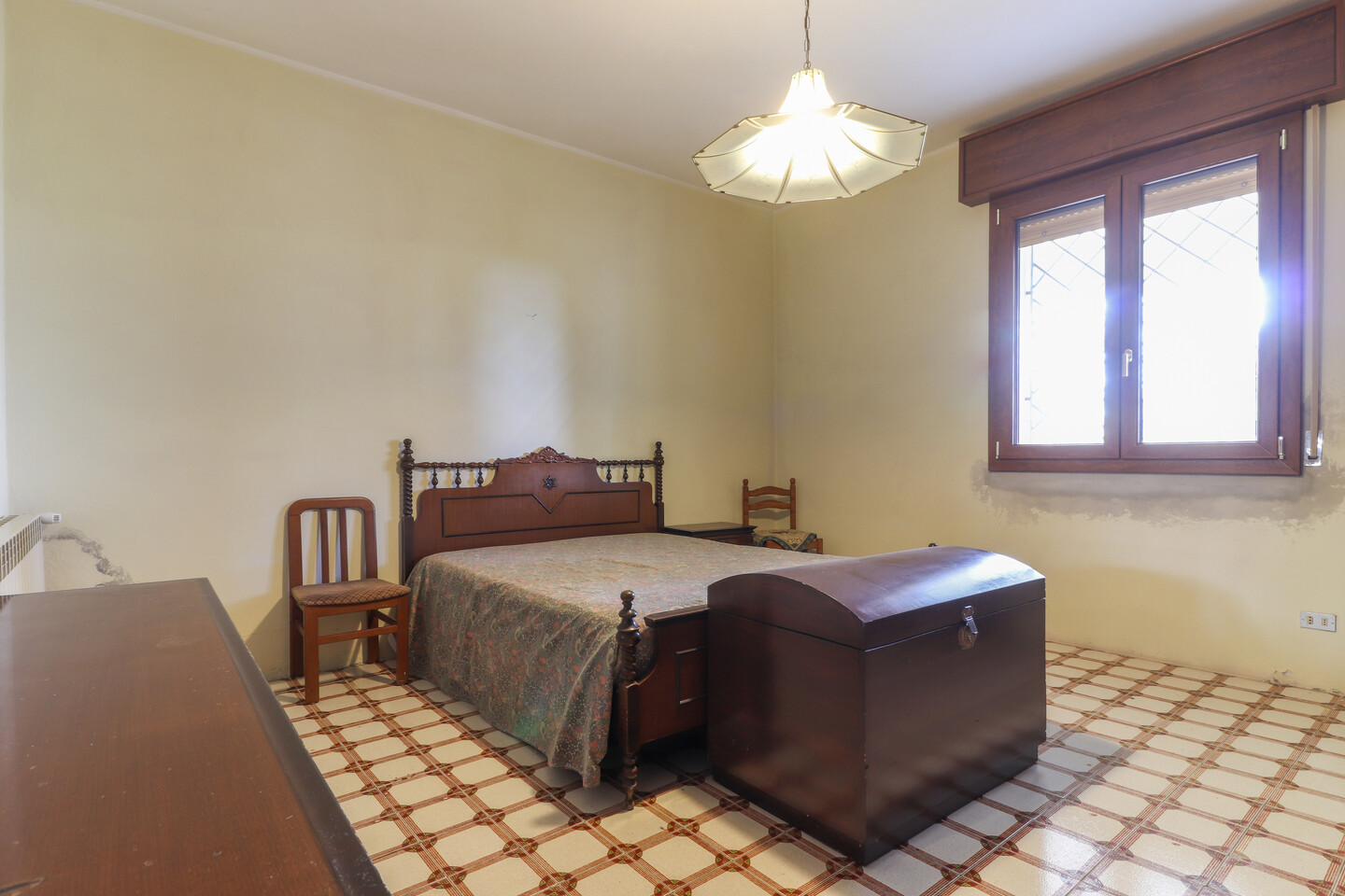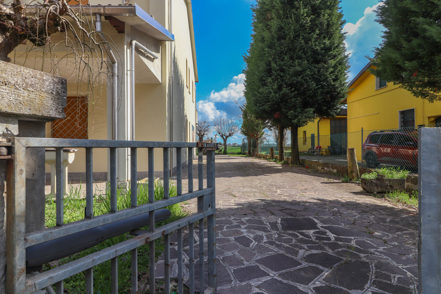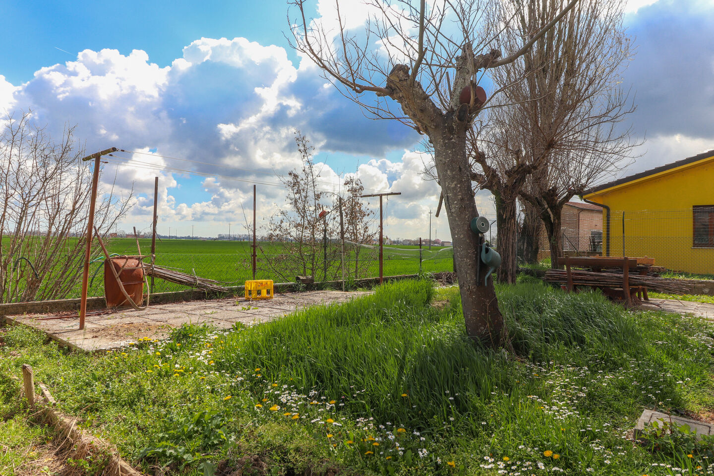Piano terra: ampio ingresso, disimpegno, camera da letto, bagno, lavanderia; due autorimesse doppie, portico. Area cortiliva di proprietà della partecipanza agraria.