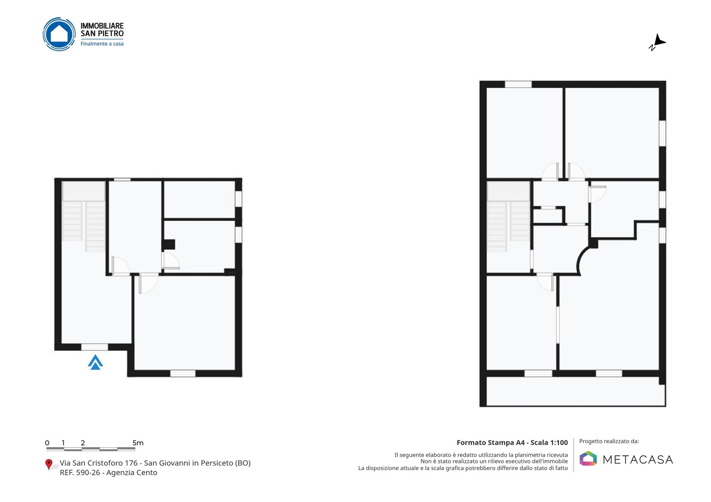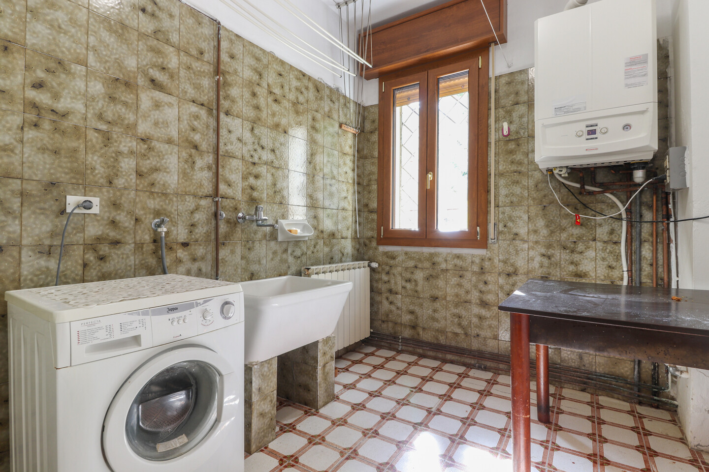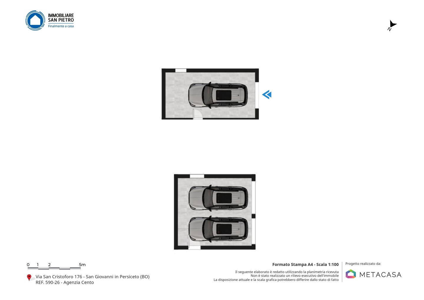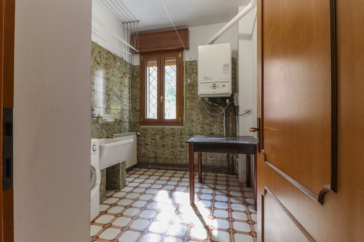 Piano terra: ampio ingresso, disimpegno, camera da letto, bagno, lavanderia; due autorimesse doppie, portico. Area cortiliva di proprietà della partecipanza agraria.