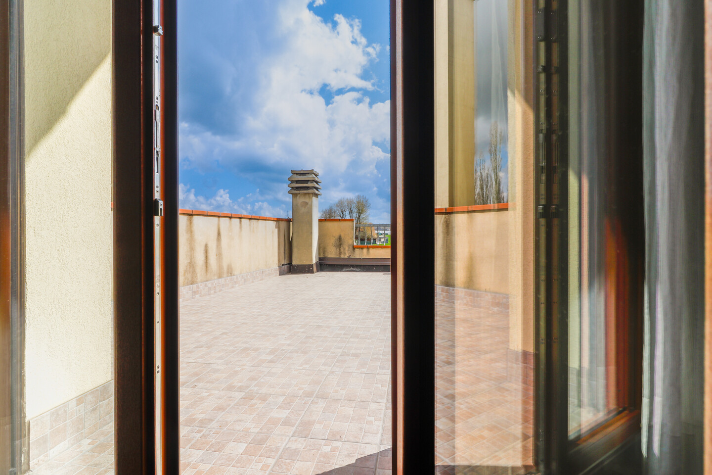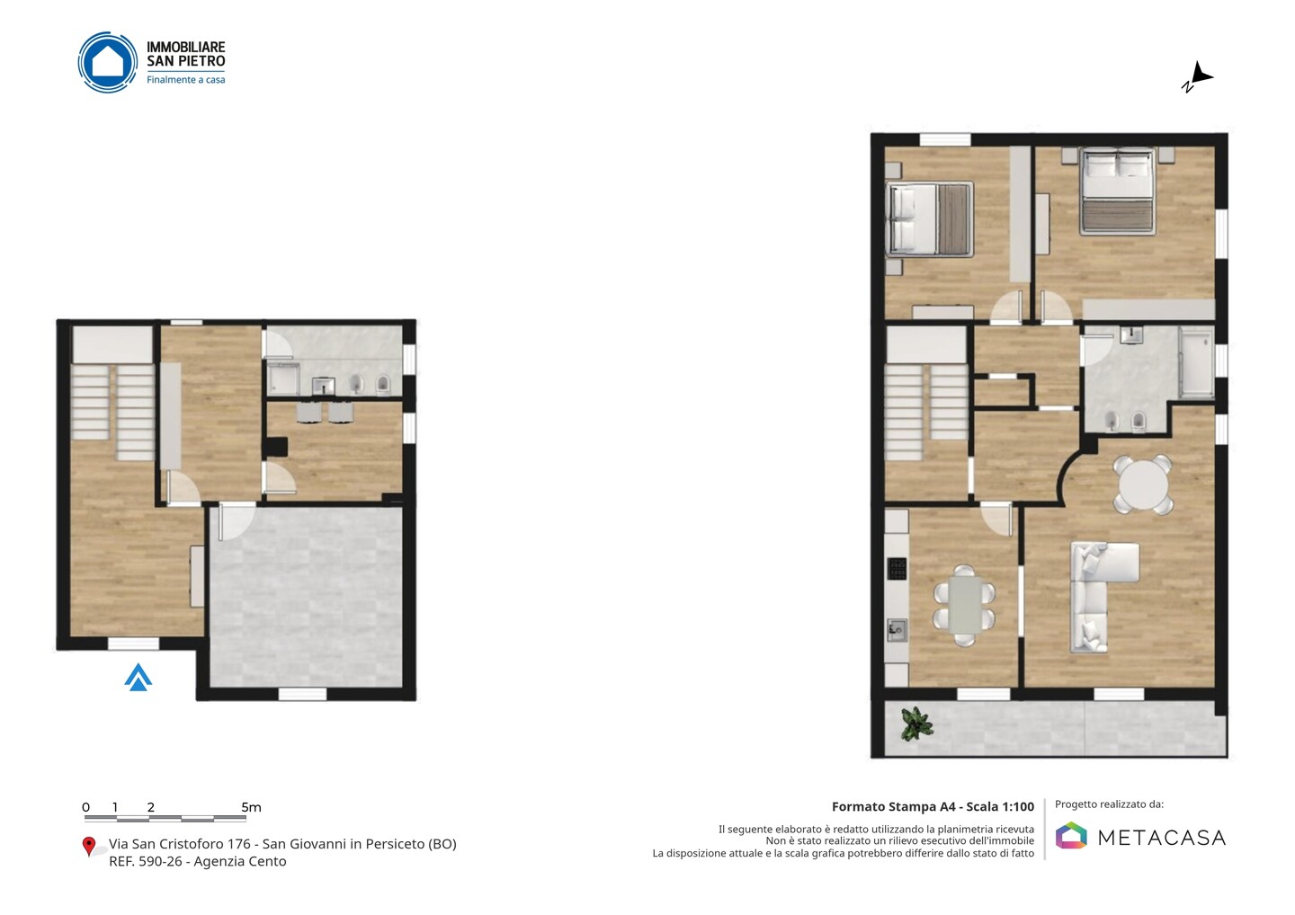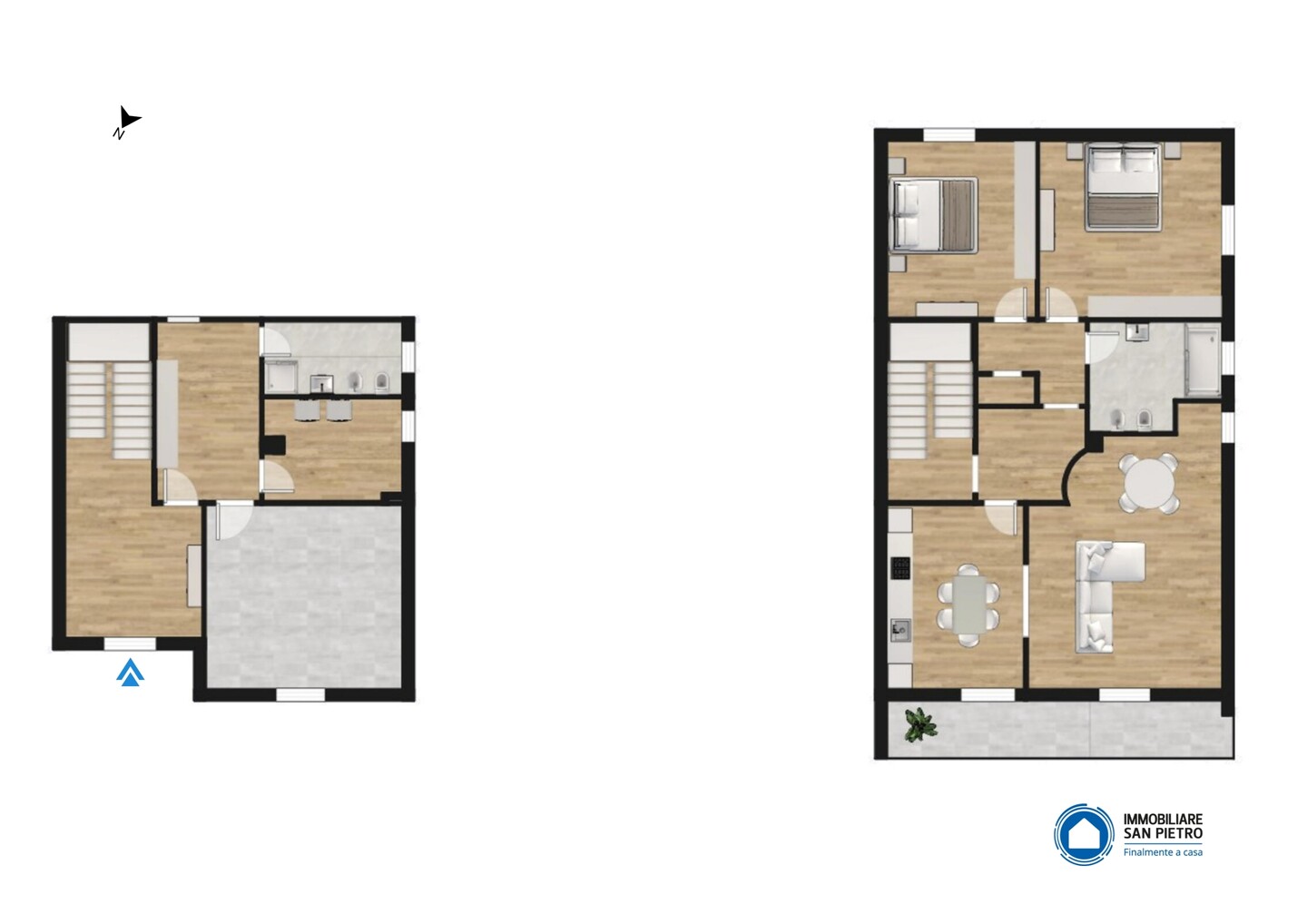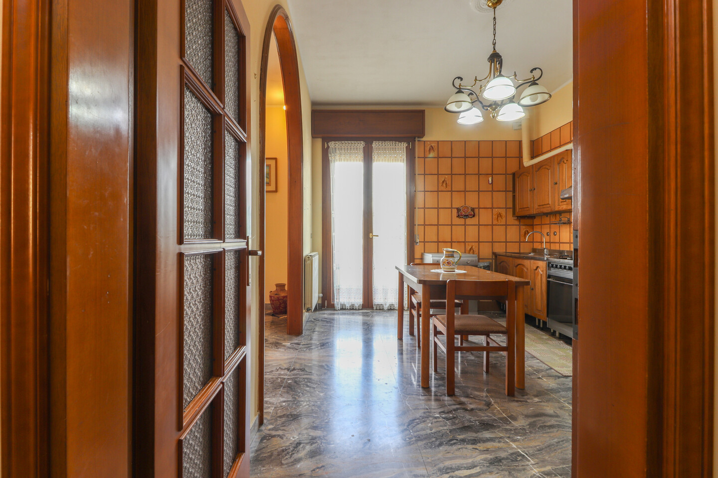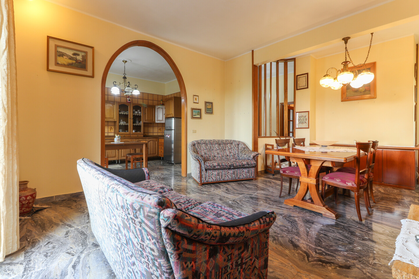 Piano primo: ingresso, cucina abitabile, ampio soggiorno, disimpegno, ripostiglio, bagno, due grandi camere matrimoniali di cui una con accesso diretto ad un terrazzo abitabile.