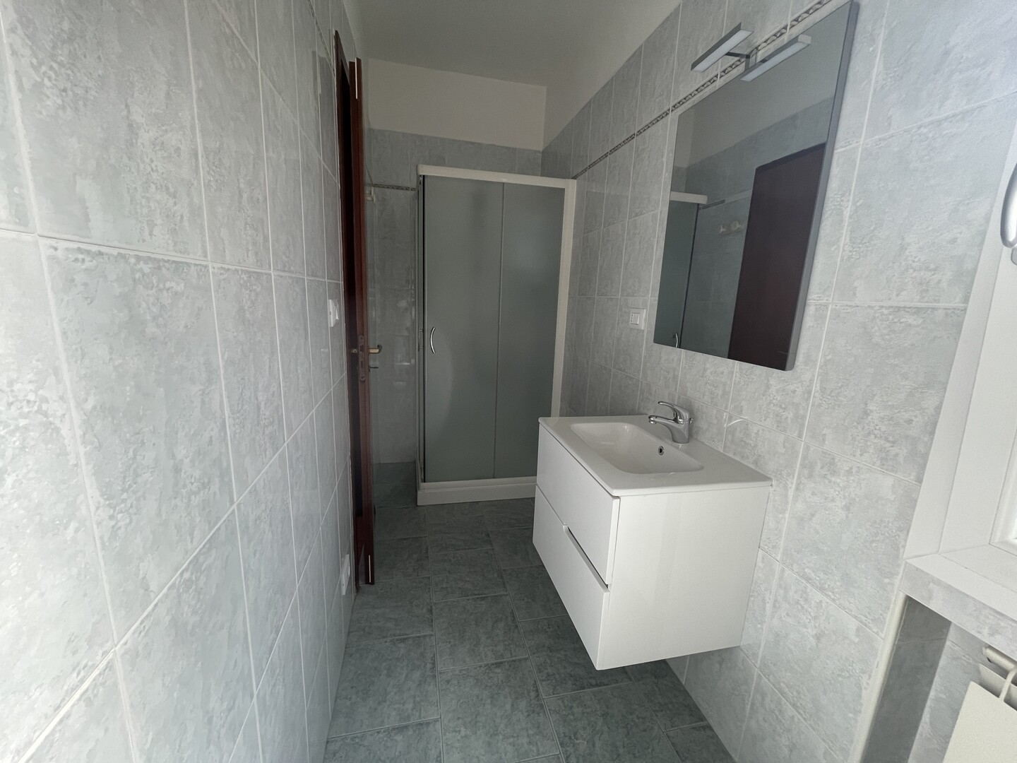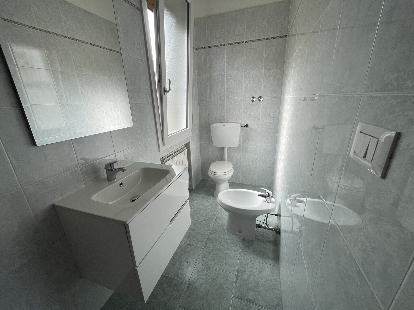 Appartamento posto al primo ed ultimo piano composto da ingresso, cucina abitabile, soggiorno, balcone con tenda motorizzata, 3 camere da letto (la matrimoniale col bagno interno), 2 bagni e garage di 60mq.