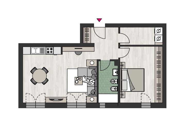 Appartamento composto da ingresso, ampia zona living con angolo cottura, una camera matrimoniale, zona lavanderia, un bagno, cantina a partire da €.5.000+iva. Possibilità di acquistare a parte Autorimessa a partire da €.35.000+iva e Posto Auto a partire da €.25.000. Consegna Gennaio 2026.