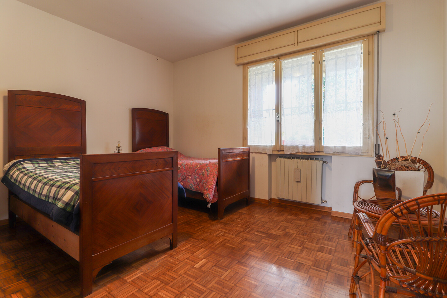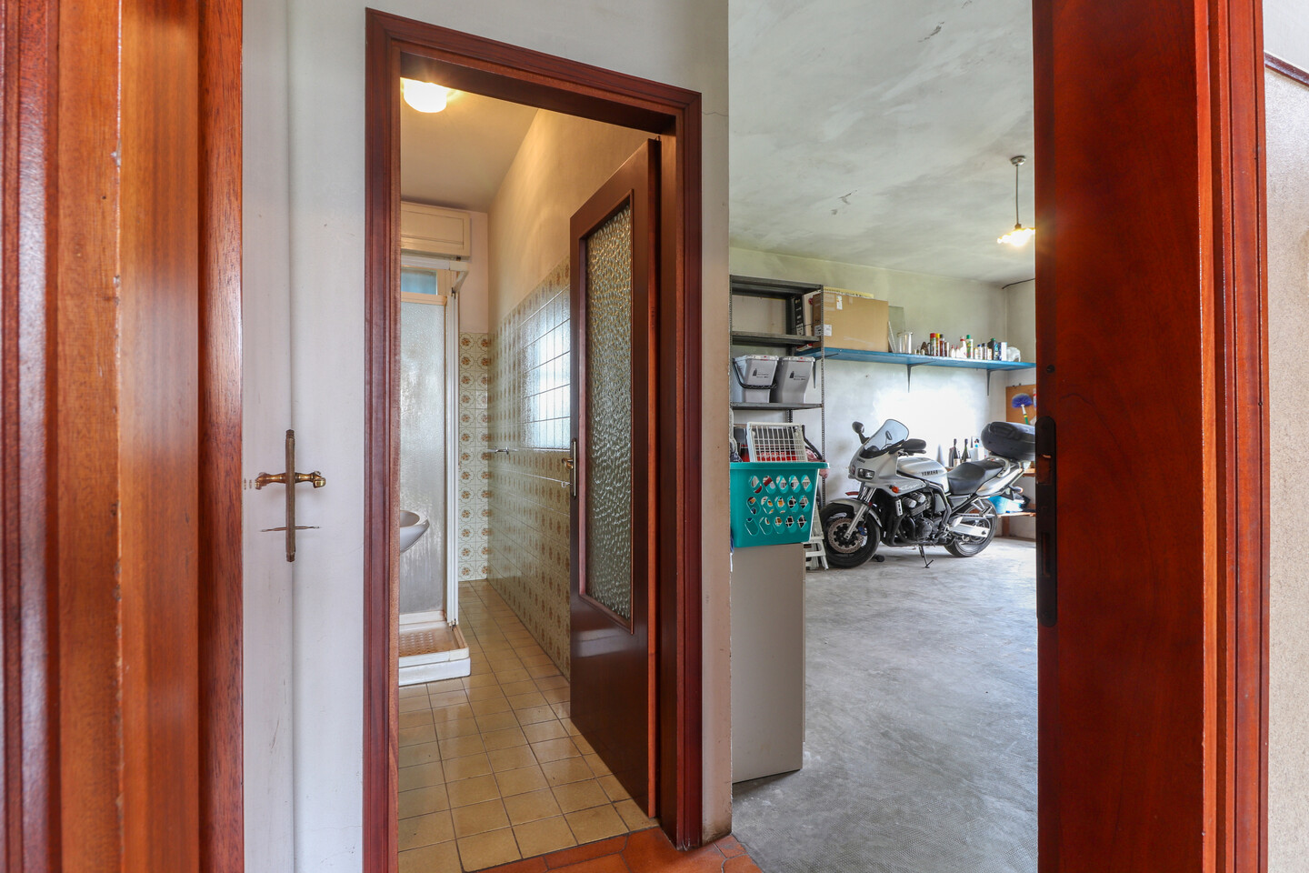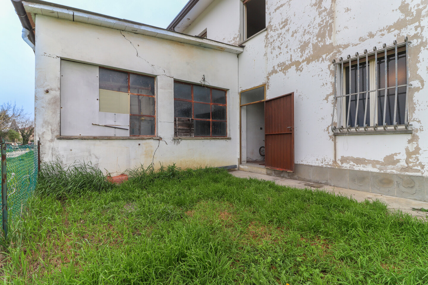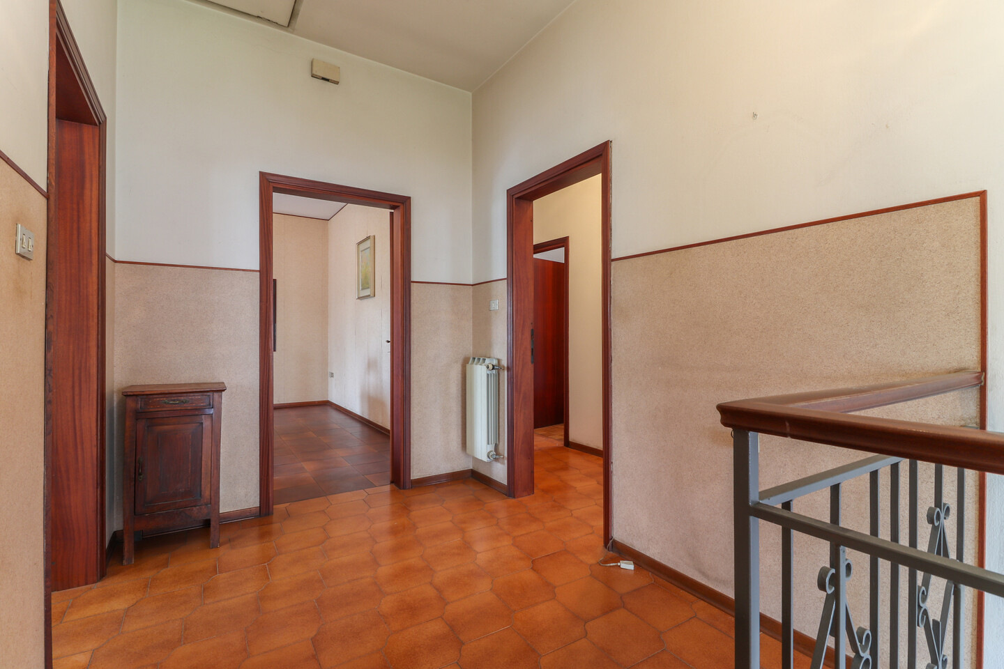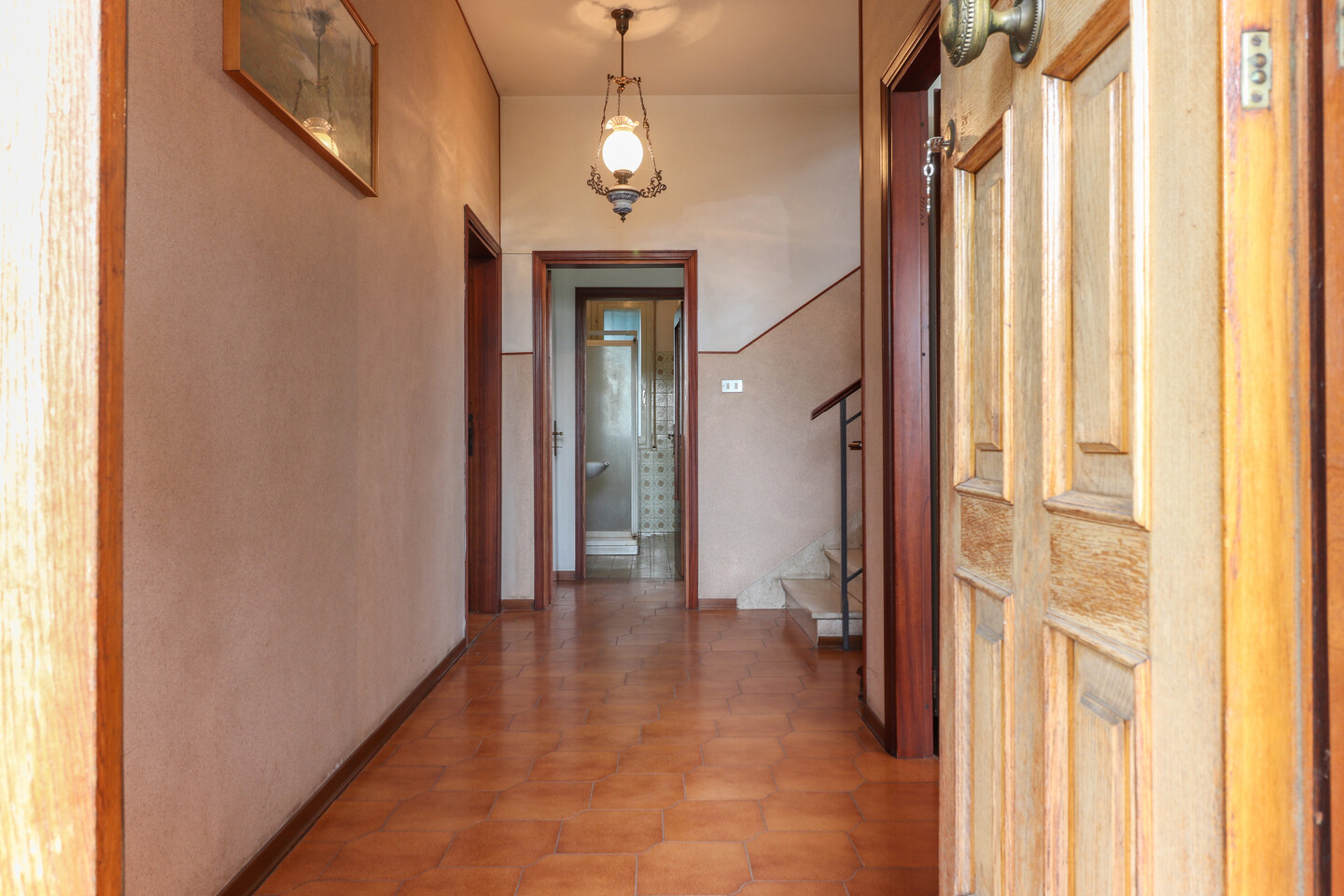 Porzione di villa bifamiliare disposta su tre piani, internamente da ristrutturare e circondata dal giardino privato.