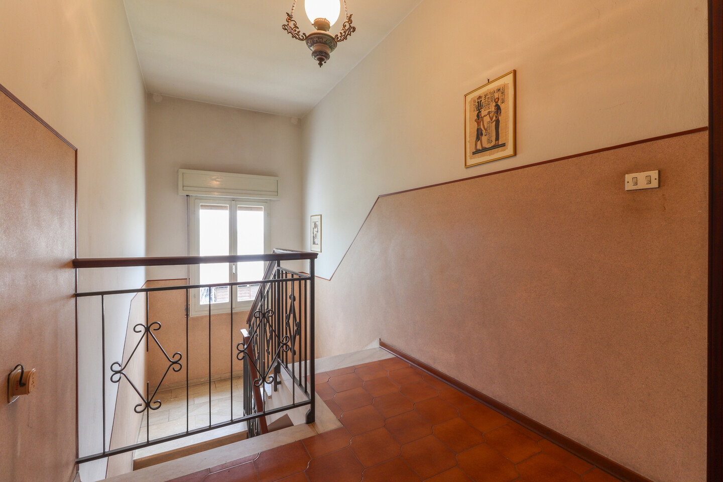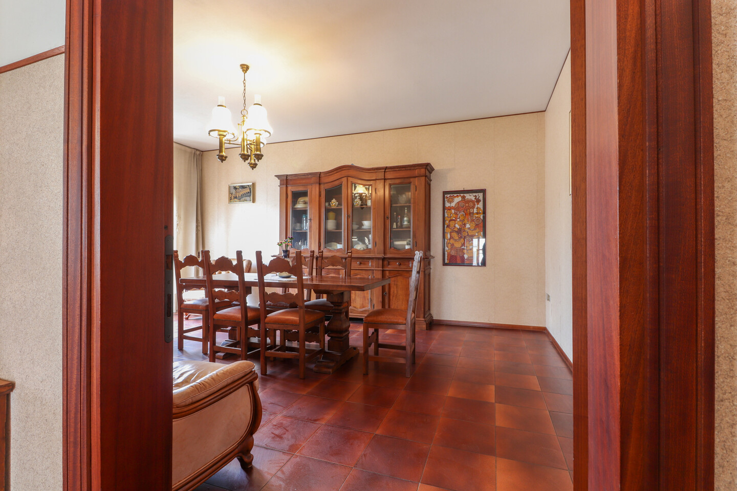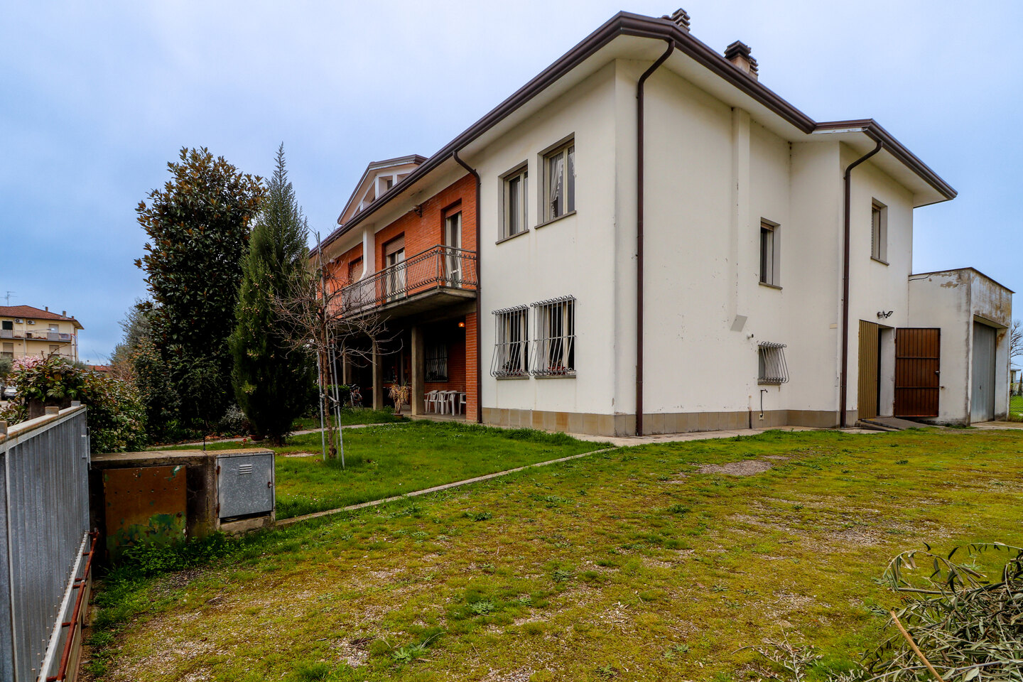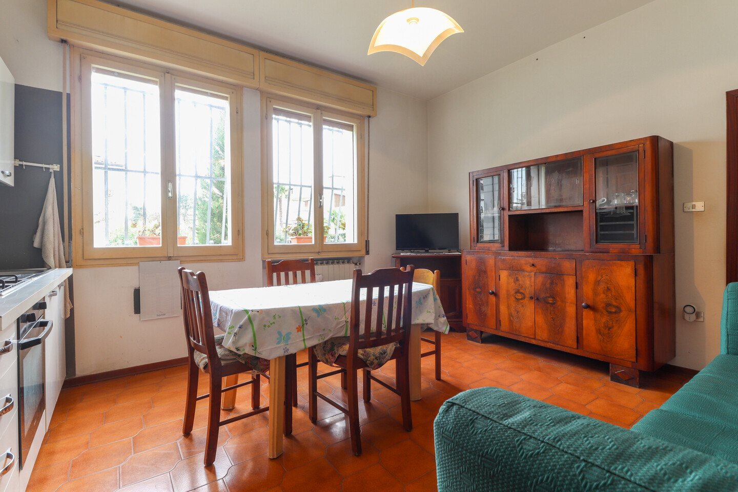 Porzione di villa bifamiliare disposta su tre piani, internamente da ristrutturare e circondata dal giardino privato.