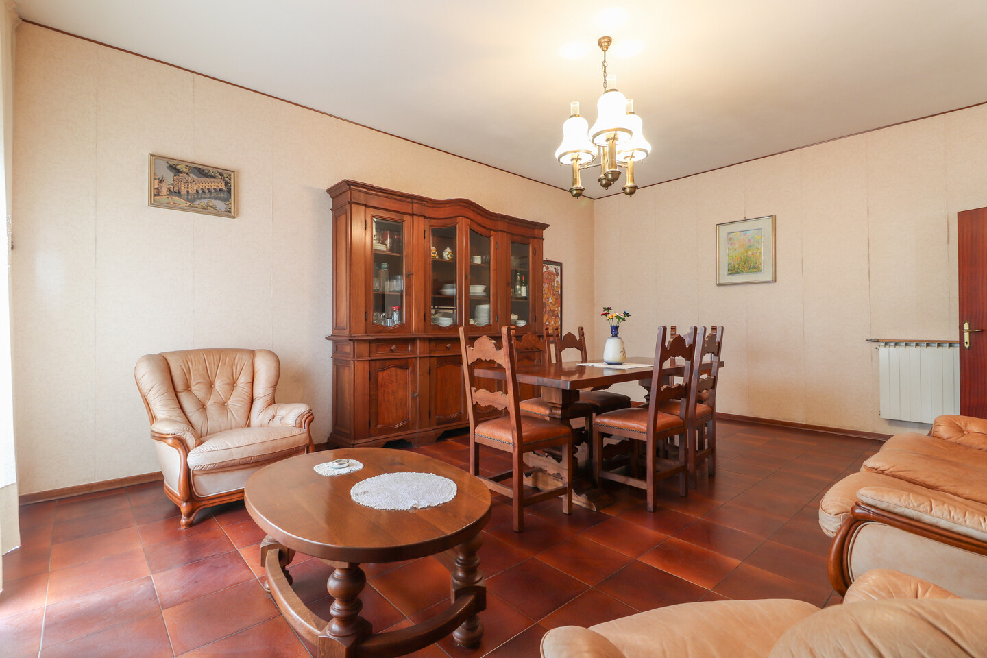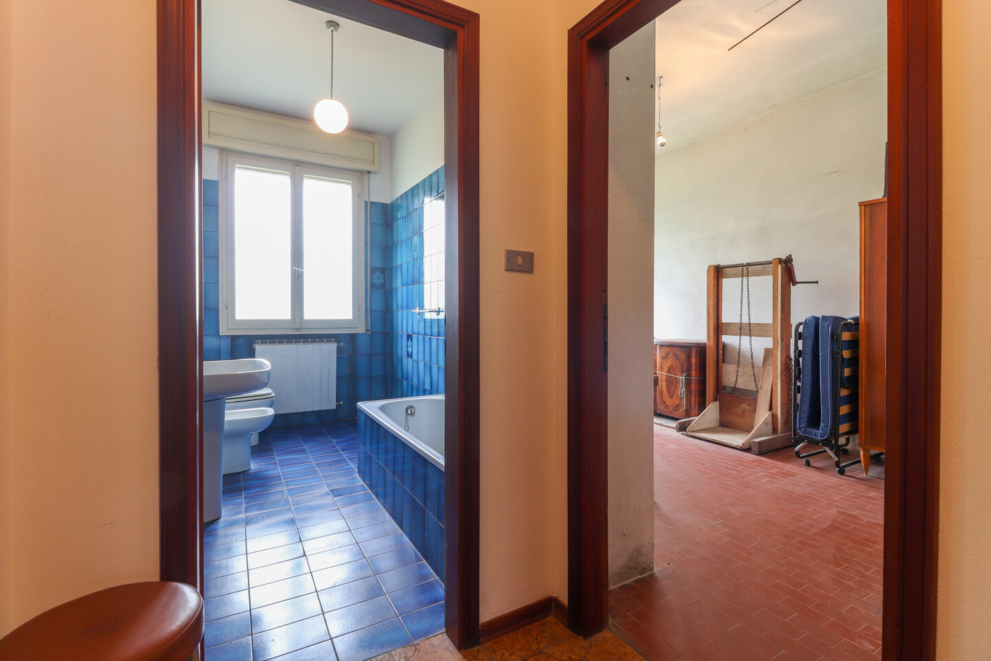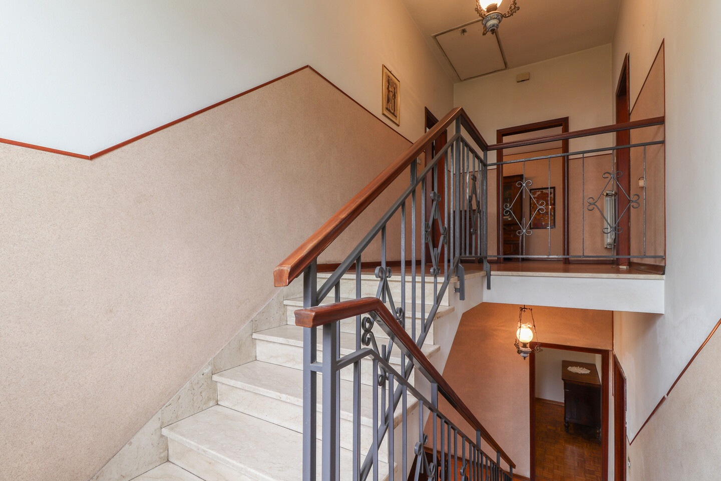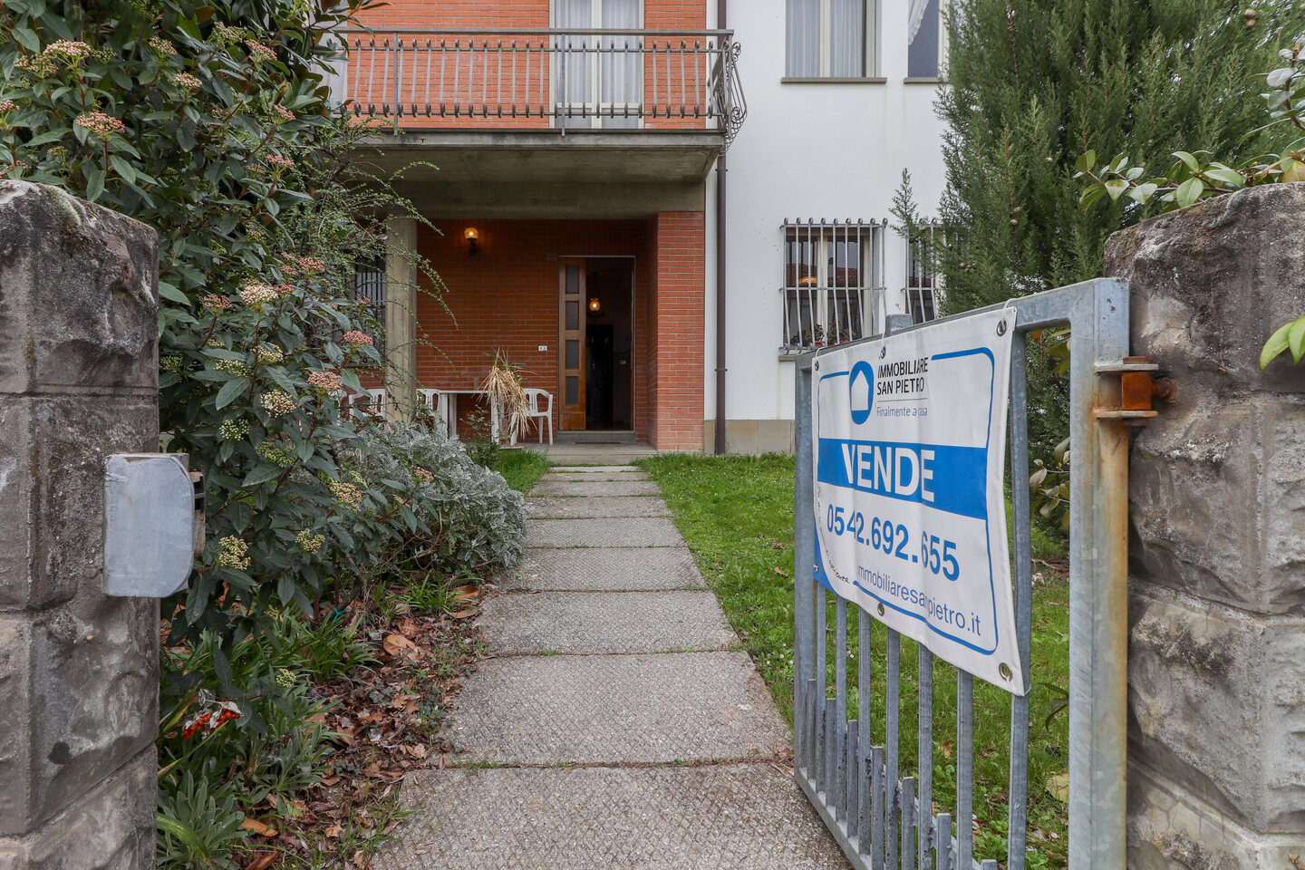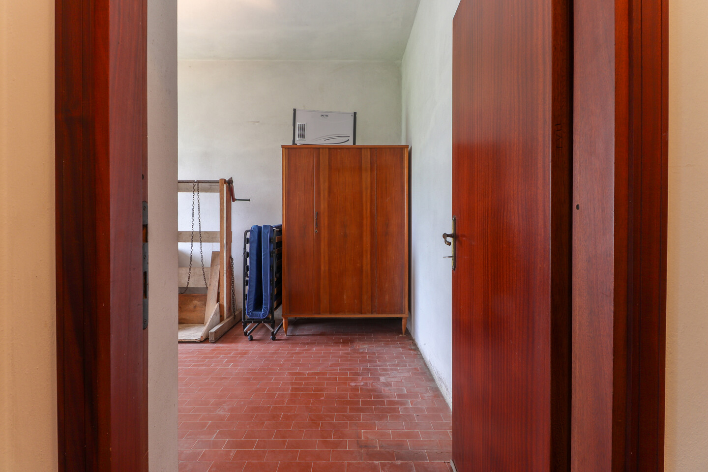 Porzione di villa bifamiliare disposta su tre piani, internamente da ristrutturare e circondata dal giardino privato.