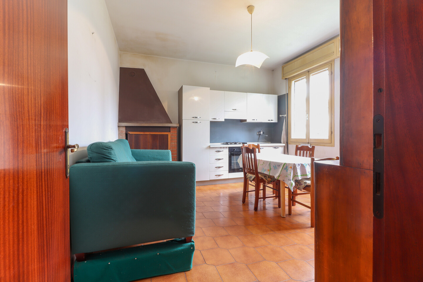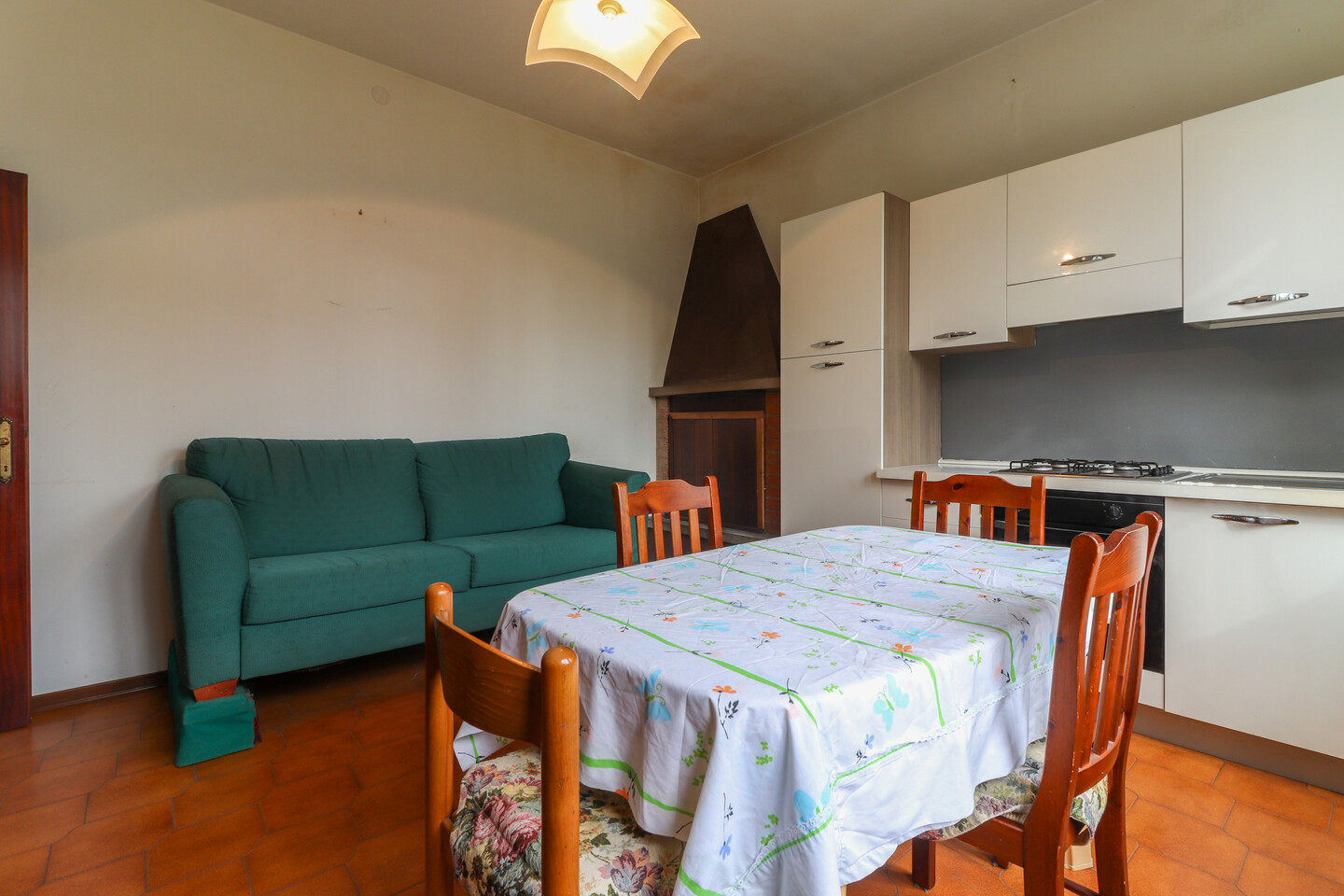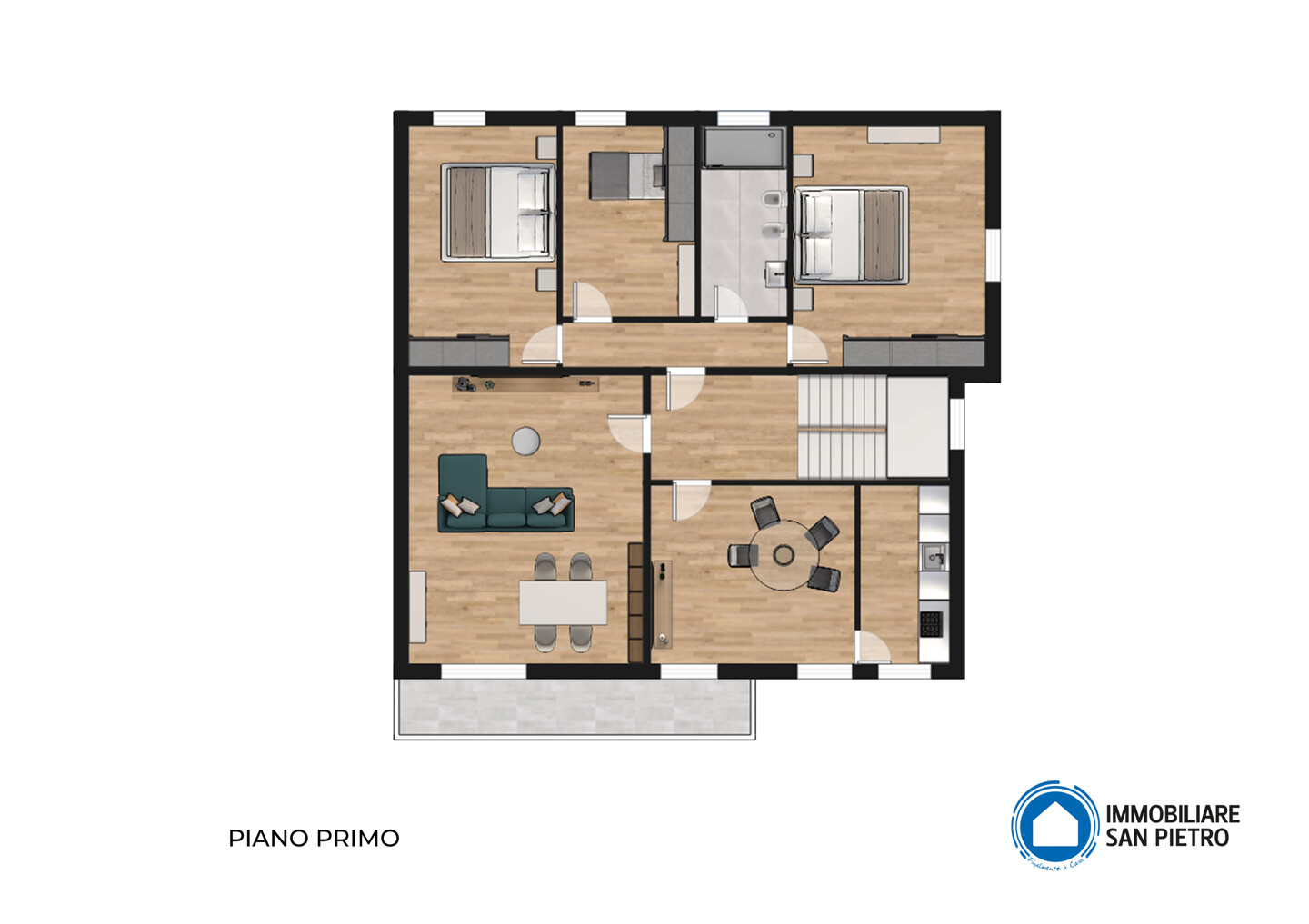Piano primo ingresso, sala con angolo cottura, camera matrimoniale, 2 bagni e lavanderia.