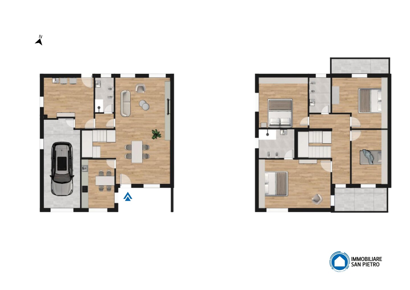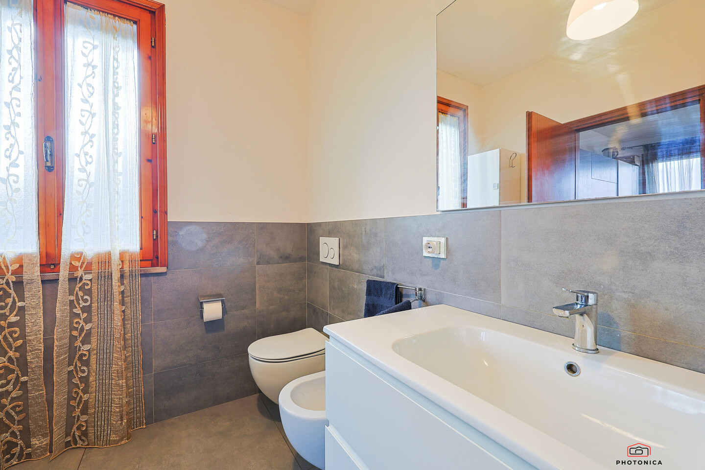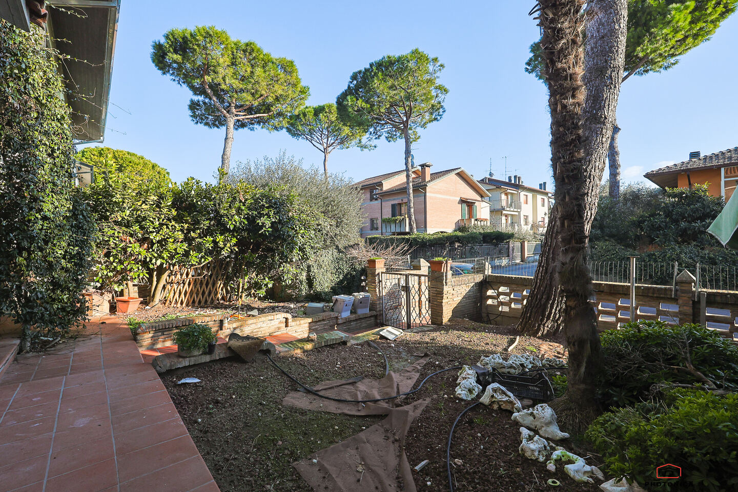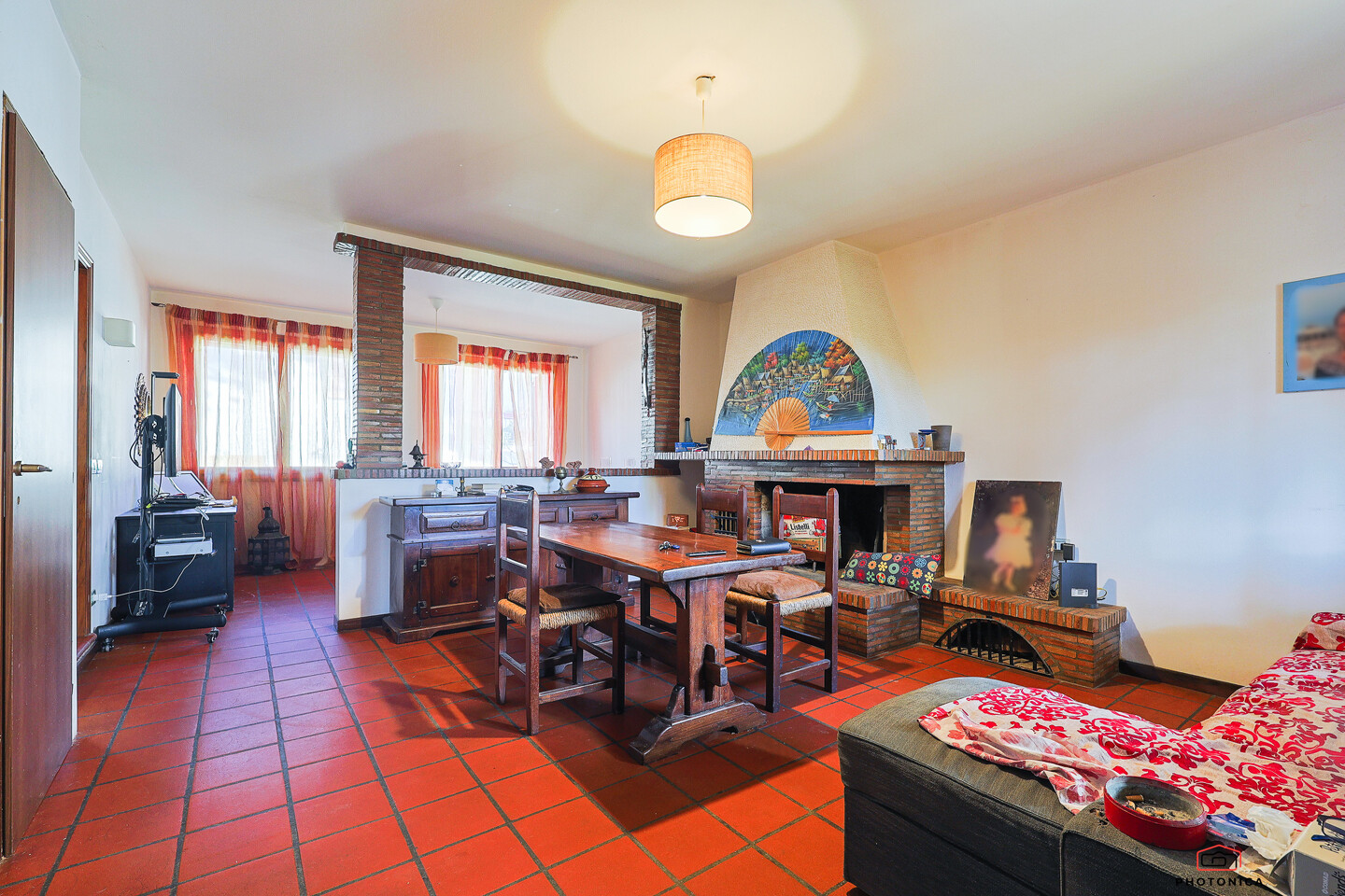 L’immobile, disposto su più livelli, al piano terra rialzato si apre con un portico d’ingresso che conduce a un ampio soggiorno con sala da pranzo, una cucina abitabile in stile americano, un disimpegno, un bagno di servizio e un locale adibito a lavanderia e stireria. Una scala interna porta al primo piano dove troviamo quattro camere matrimoniali, di cui due attualmente ad ampio soggiorno, due bagni, due balconi con affaccio dalle camere e una soffitta accessibile tramite scala retrattile, utilizzabile come deposito occasionale. Al piano seminterrato, l’immobile dispone di una spaziosa taverna e di una cantina. Completano la proprietà un garage al piano terra e un giardino privato che circonda la casa, con spazio sufficiente per parcheggiare comodamente due o più auto.