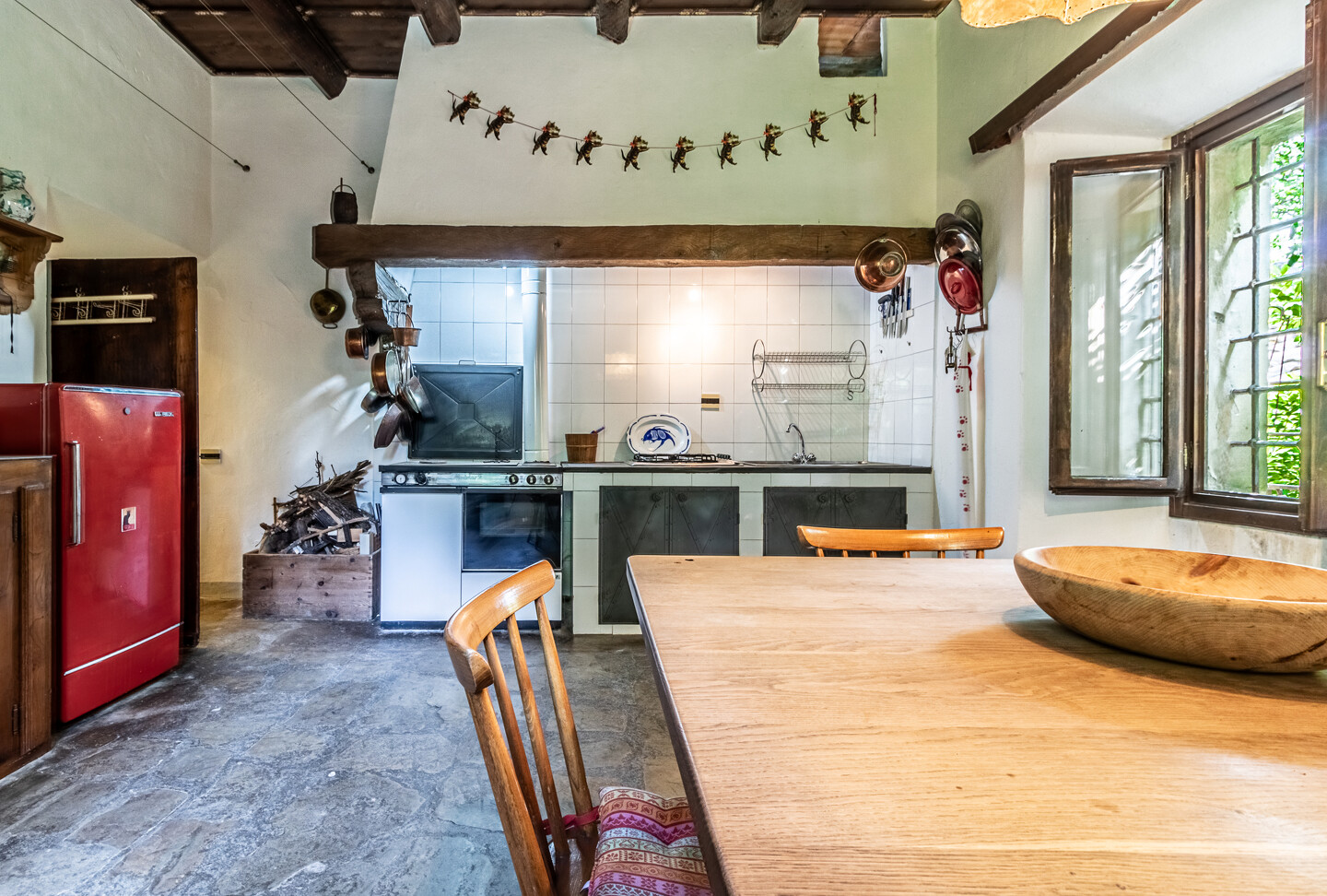 La casa si compone di un soggiorno accogliente, una cucina abitabile, un ampio salone con camino, due camere da letto, due bagni e una cantina. Completa la proprietà un giardino privato di buona metratura, ideale per godere di momenti di relax all’aperto o per chi ama uno spazio verde da curare.