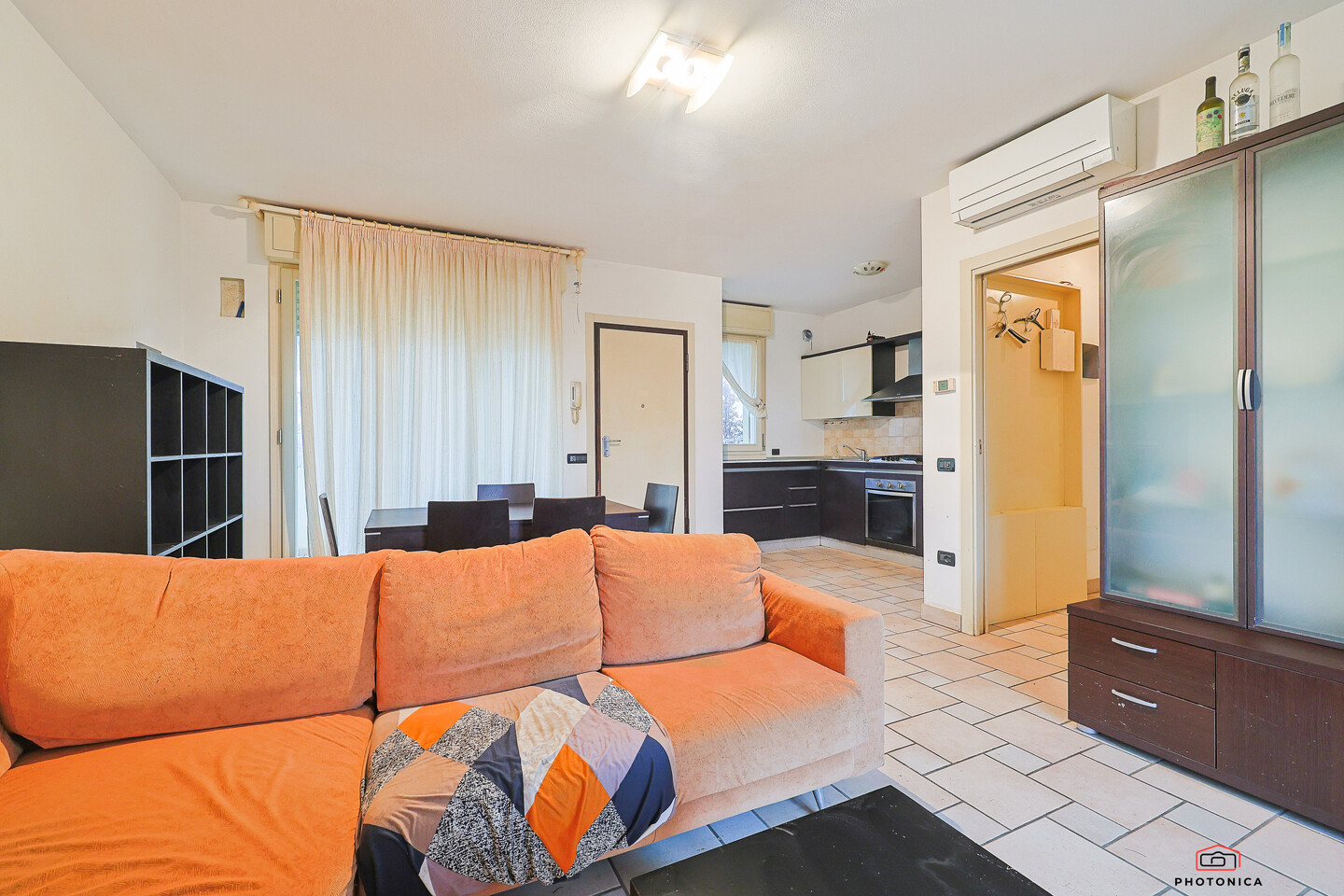 L’immobile si trova in una villa di sole tre unità e offre ambienti curati e funzionali. L’abitazione dispone di un luminoso soggiorno open-space con angolo cottura e accesso diretto al giardino, una camera matrimoniale, una camera doppia e un bagno finestrato con box doccia. Completa la proprietà un posto auto al primo piano interrato e una cantina.
