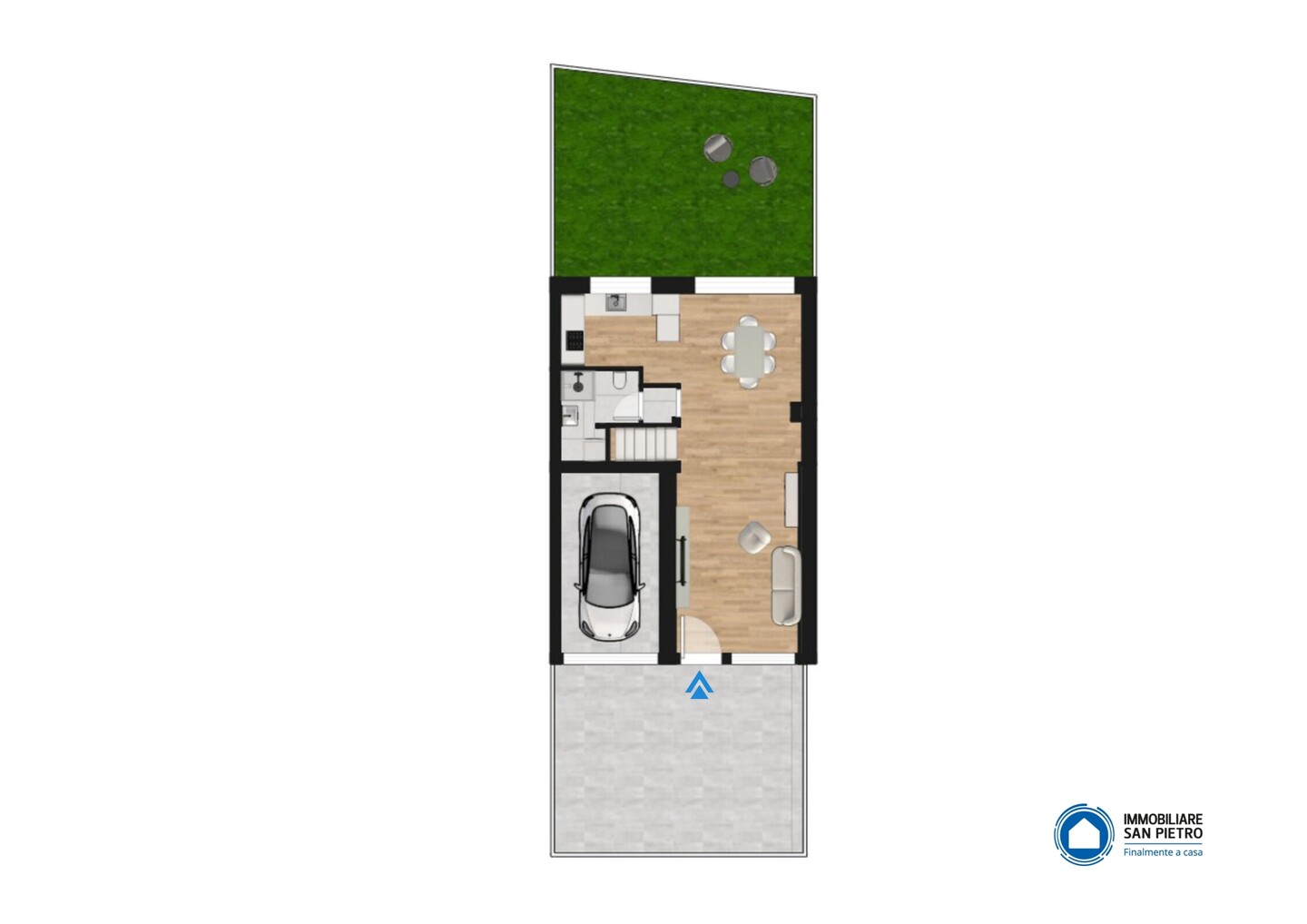 Porzione centrale di villa trifamiliare con giardino privato. Al piano terra si sviluppa la zona giorno aperta sul giardino tramite un godibile porticato. Al primo piano troviamo una camera matrimoniale e 2 doppie, oltre all’ulteriore spazioso bagno finestrato. Al terzo livello la mansarda è utilizzabile come zona relax o area studio caratterizzata da un comodo lastrico solare. L’autorimessa e il posto auto completano la proprietà.