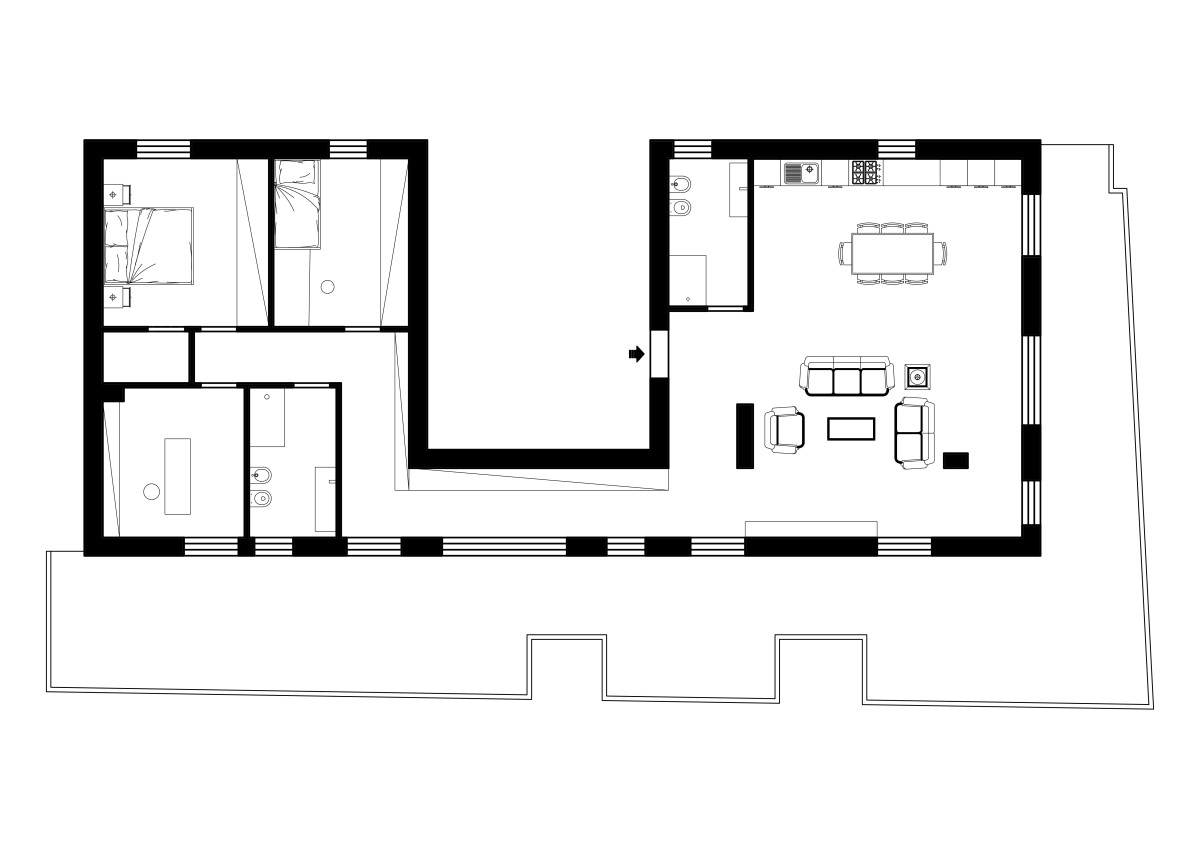 Ambienti luminosi con ampia terrazza dove poter cenare con i propri amici.
