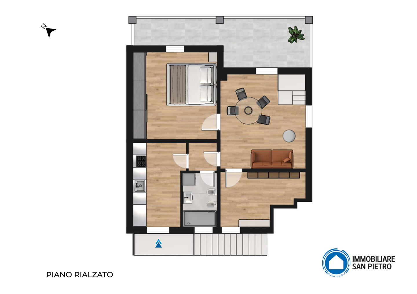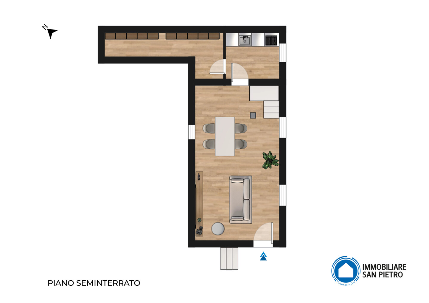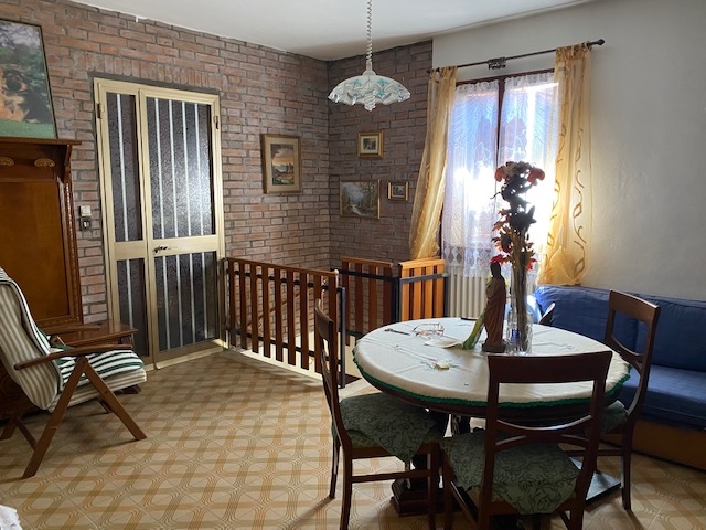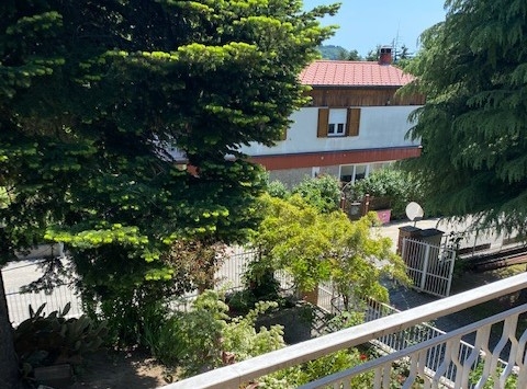 Porzione di bifamiliare disposta su tre livelli e composta da due appartamenti di cui uno con garage, cantina e taverna al piano terra/seminterrato collegato internamente all’appartamento di 2 camere, cucina, sala e bagno al piano rialzato. Dal piano rialzato tramite scala di accesso indipendente troviamo altro appartamento composto da 2 camere cucina e bagno al piano primo su rialzato.