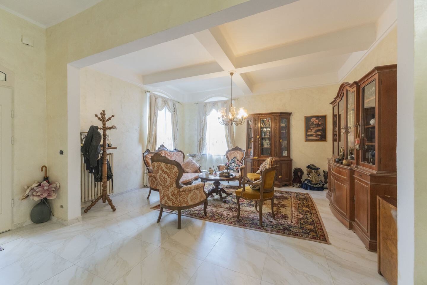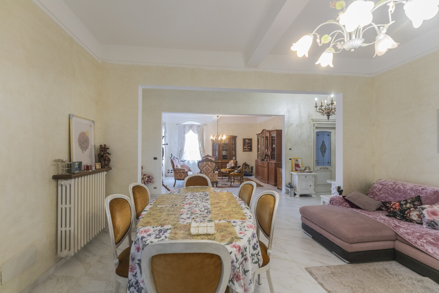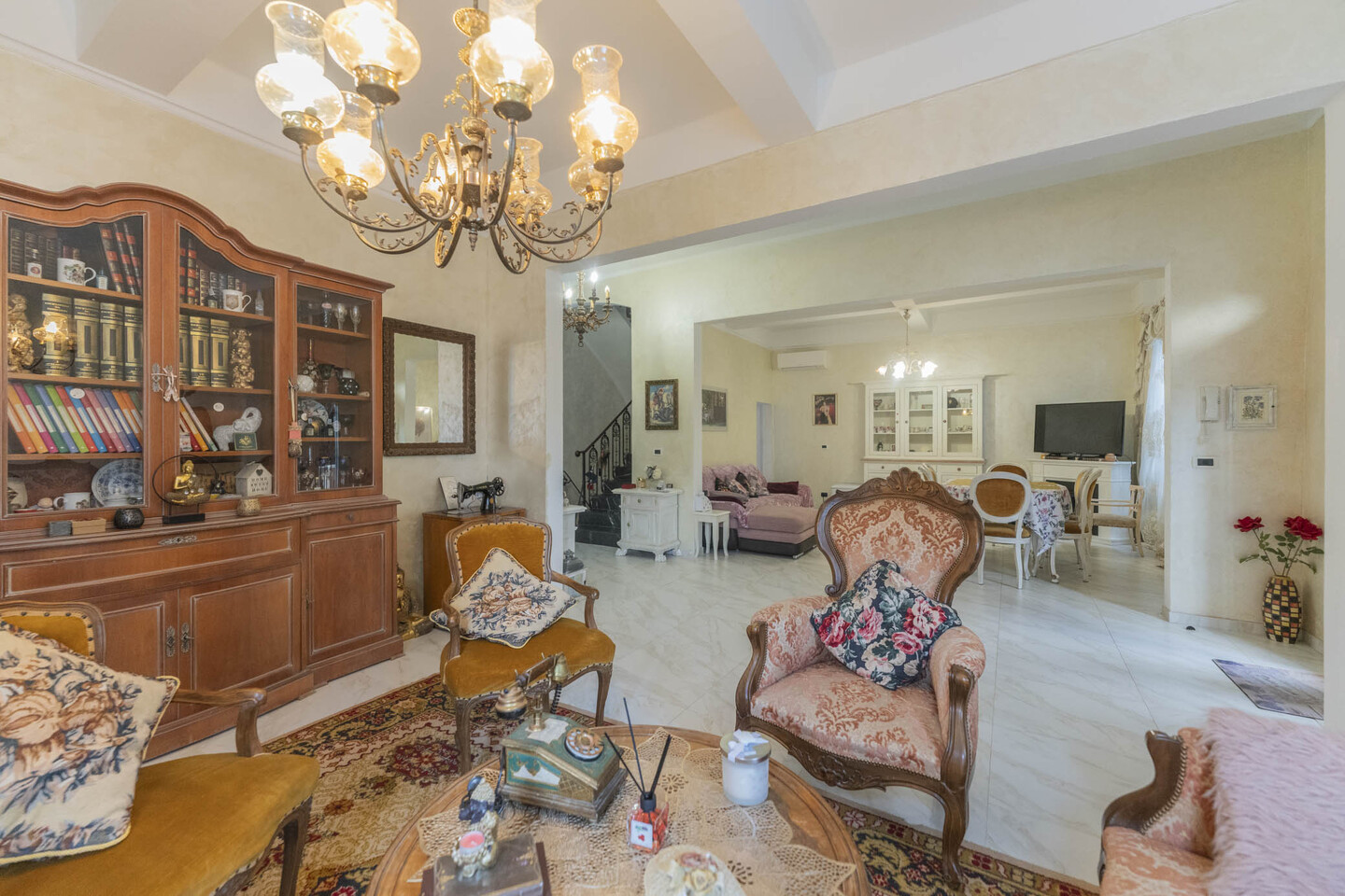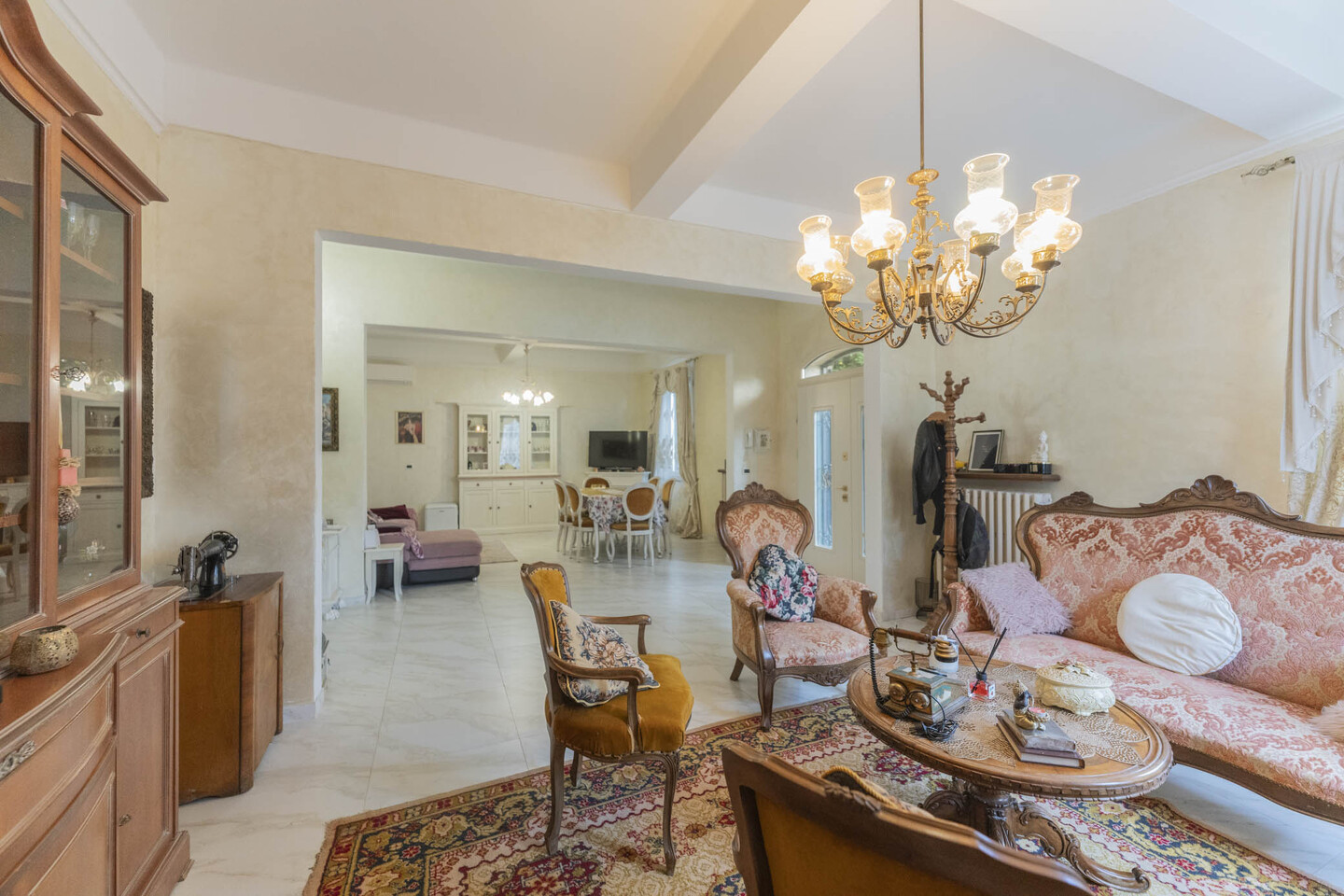 Villa unifamiliare sviluppata su tre livelli. Al piano semiinterrato abbiamo lavanderia, cantina, ripostiglio, wc e 2 disimpegni; al piano primo cucina abitabile, soggiorno, sala da pranzo, studio e bagno; al piano secondo 3 camere da letto, 2 bagni ed un ripostiglio. A completare la proprietà un garage di 38 mq e giardino privato che si sviluppa su 4 lati dell’immobile.