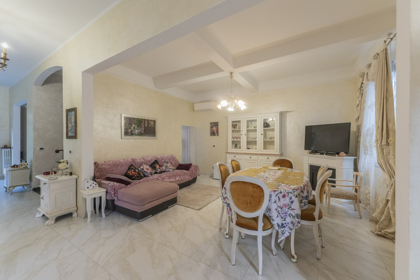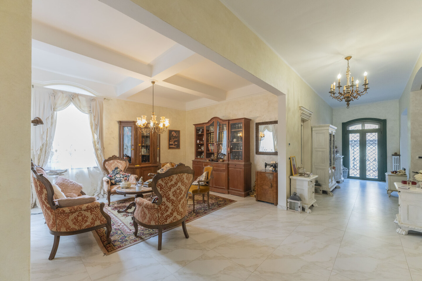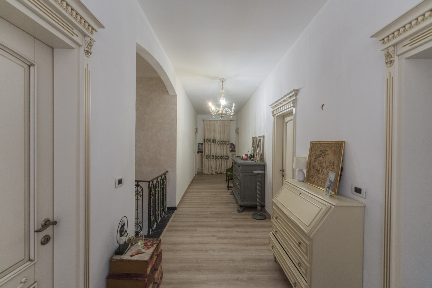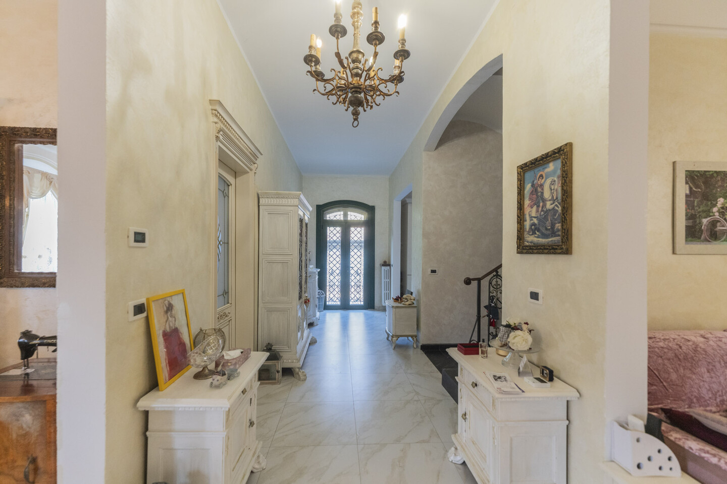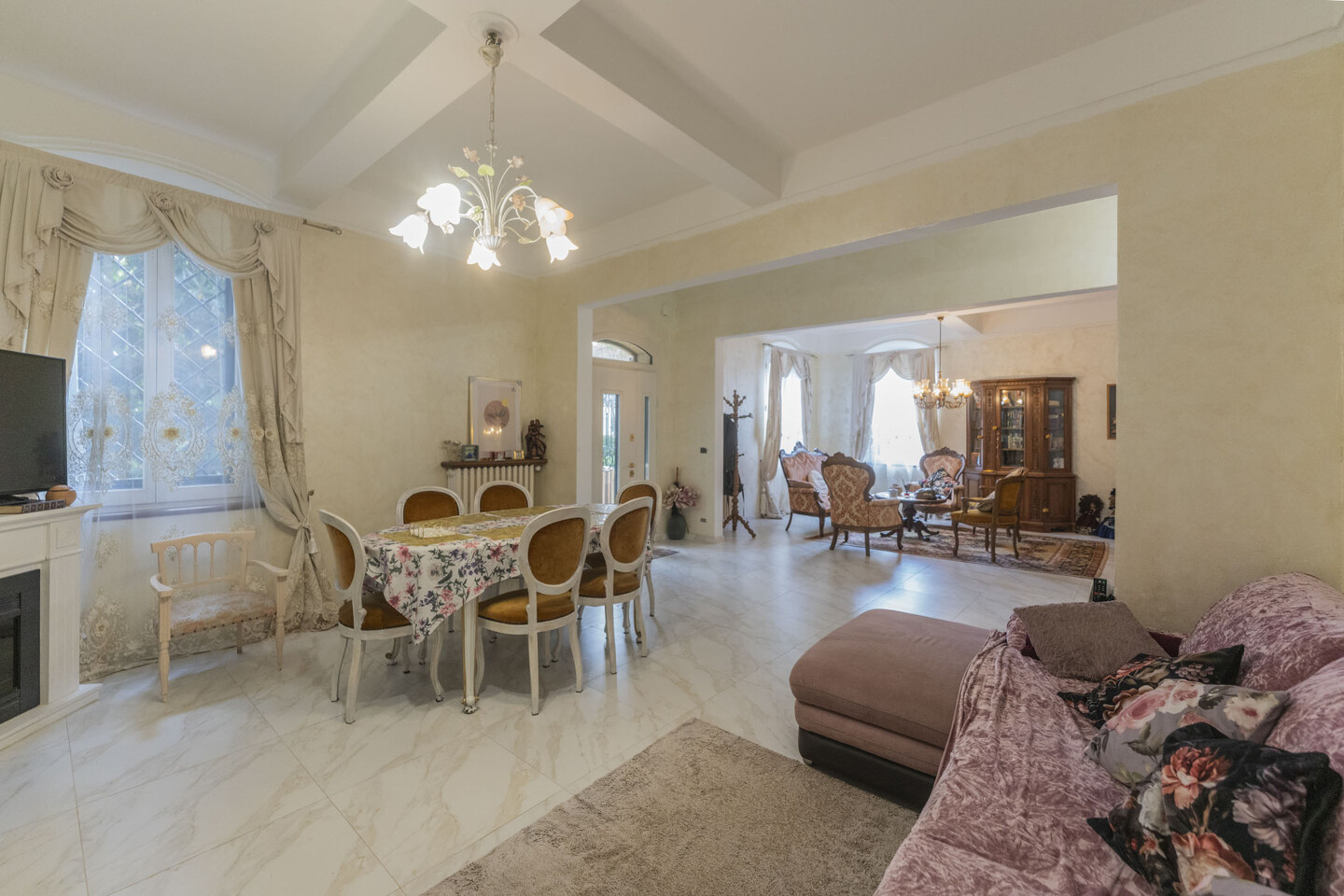 Villa unifamiliare sviluppata su tre livelli. Al piano semiinterrato abbiamo lavanderia, cantina, ripostiglio, wc e 2 disimpegni; al piano primo cucina abitabile, soggiorno, sala da pranzo, studio e bagno; al piano secondo 3 camere da letto, 2 bagni ed un ripostiglio. A completare la proprietà un garage di 38 mq e giardino privato che si sviluppa su 4 lati dell’immobile.