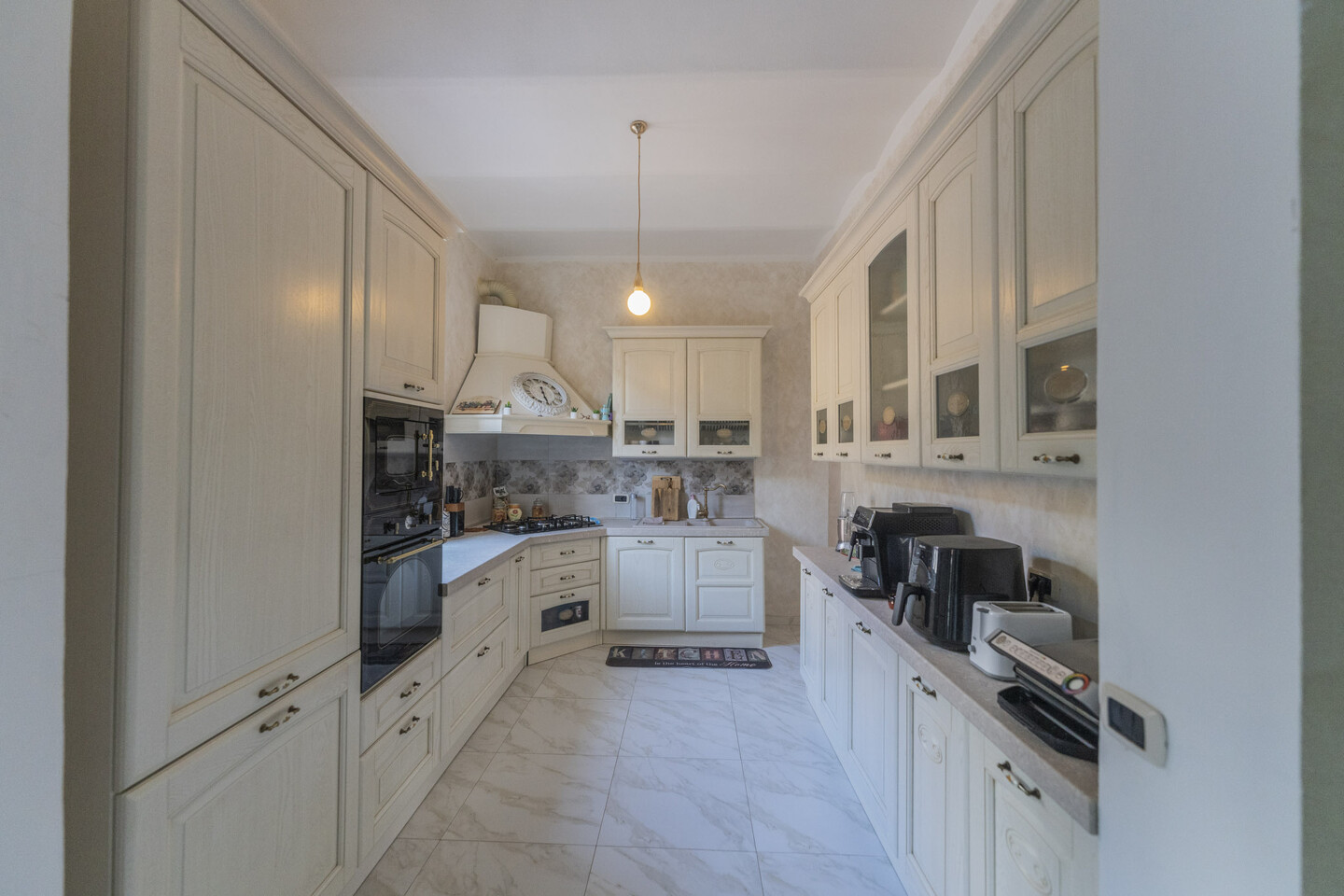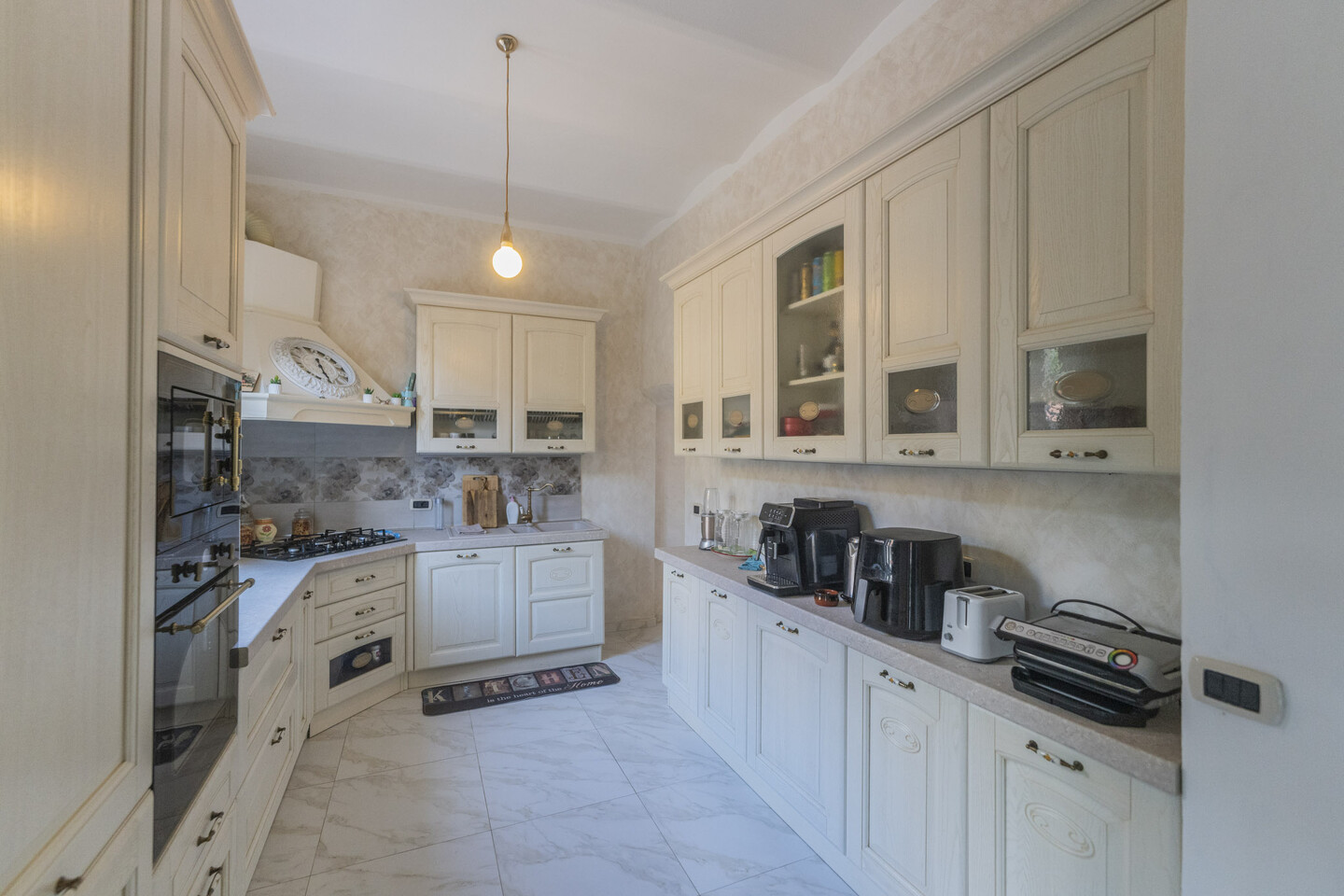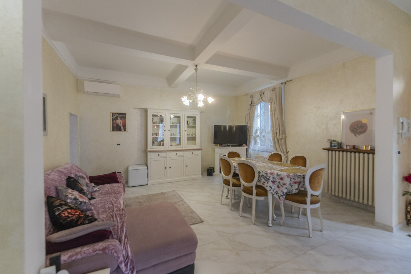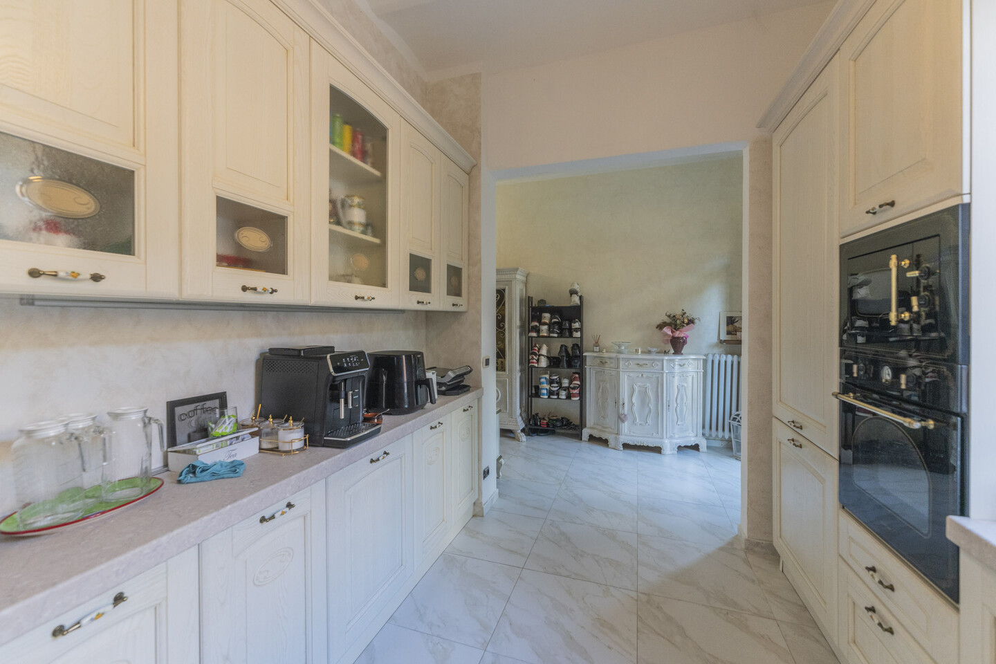 Villa unifamiliare sviluppata su tre livelli. Al piano semiinterrato abbiamo lavanderia, cantina, ripostiglio, wc e 2 disimpegni; al piano primo cucina abitabile, soggiorno, sala da pranzo, studio e bagno; al piano secondo 3 camere da letto, 2 bagni ed un ripostiglio. A completare la proprietà un garage di 38 mq e giardino privato che si sviluppa su 4 lati dell’immobile.