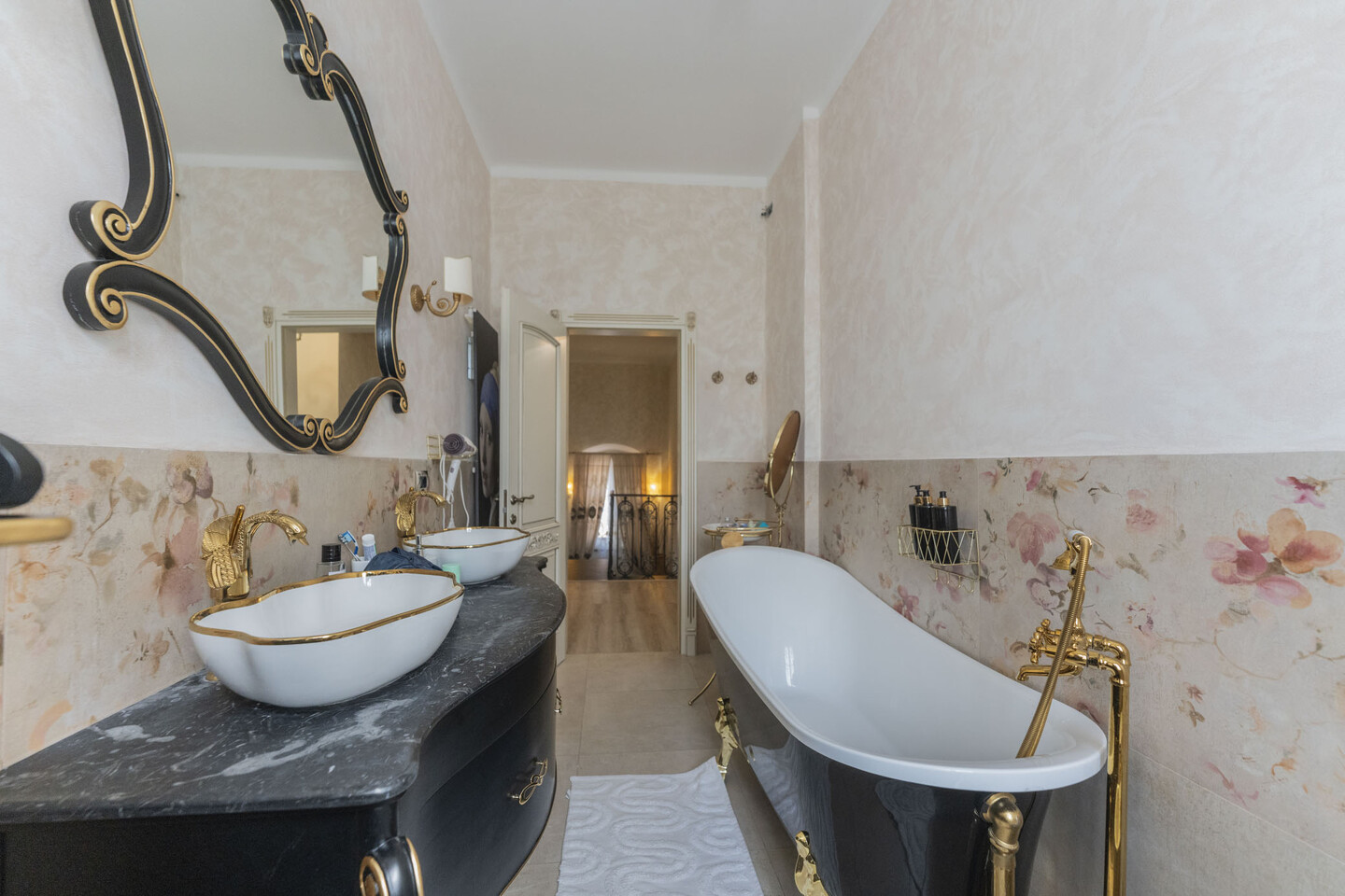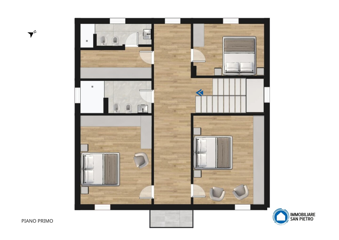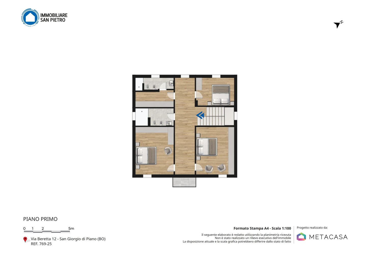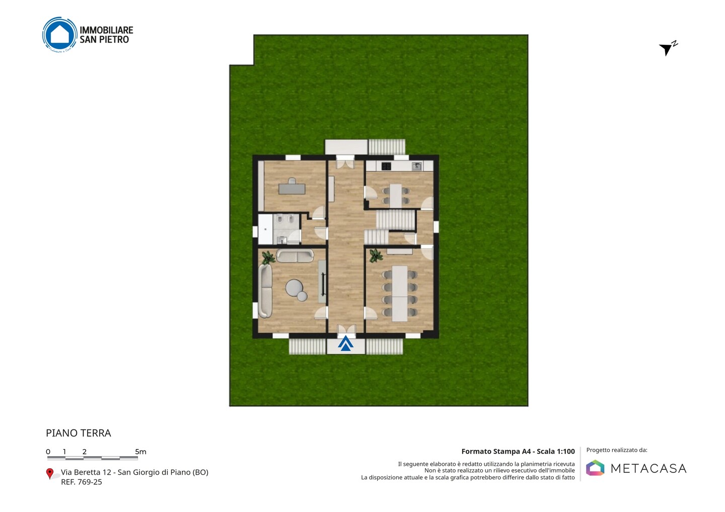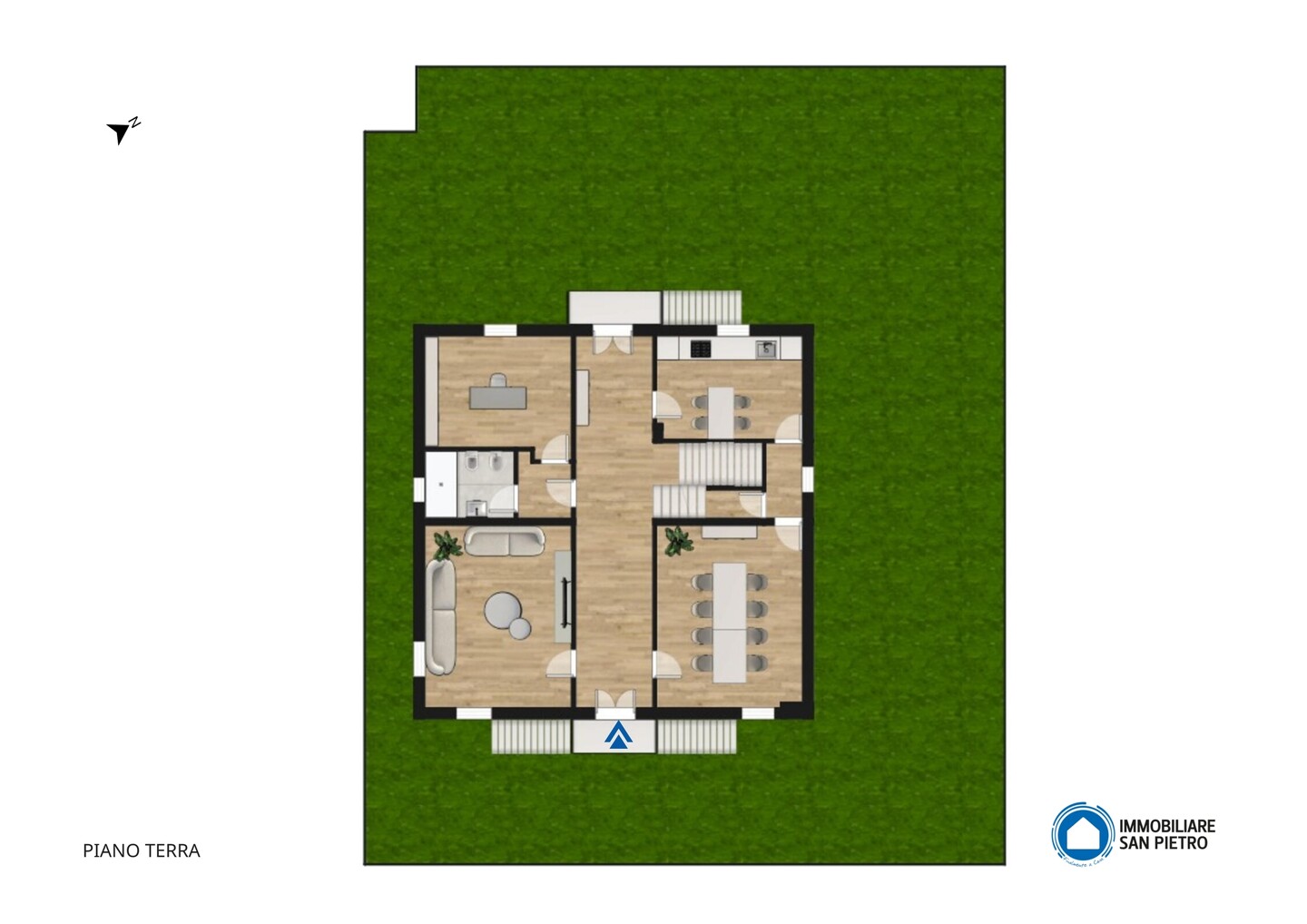 Villa unifamiliare sviluppata su tre livelli. Al piano semiinterrato abbiamo lavanderia, cantina, ripostiglio, wc e 2 disimpegni; al piano primo cucina abitabile, soggiorno, sala da pranzo, studio e bagno; al piano secondo 3 camere da letto, 2 bagni ed un ripostiglio. A completare la proprietà un garage di 38 mq e giardino privato che si sviluppa su 4 lati dell’immobile.