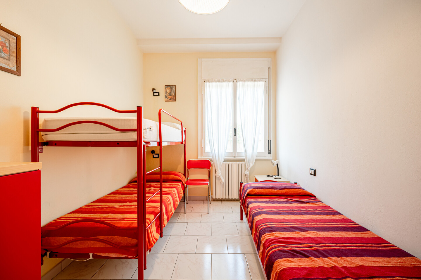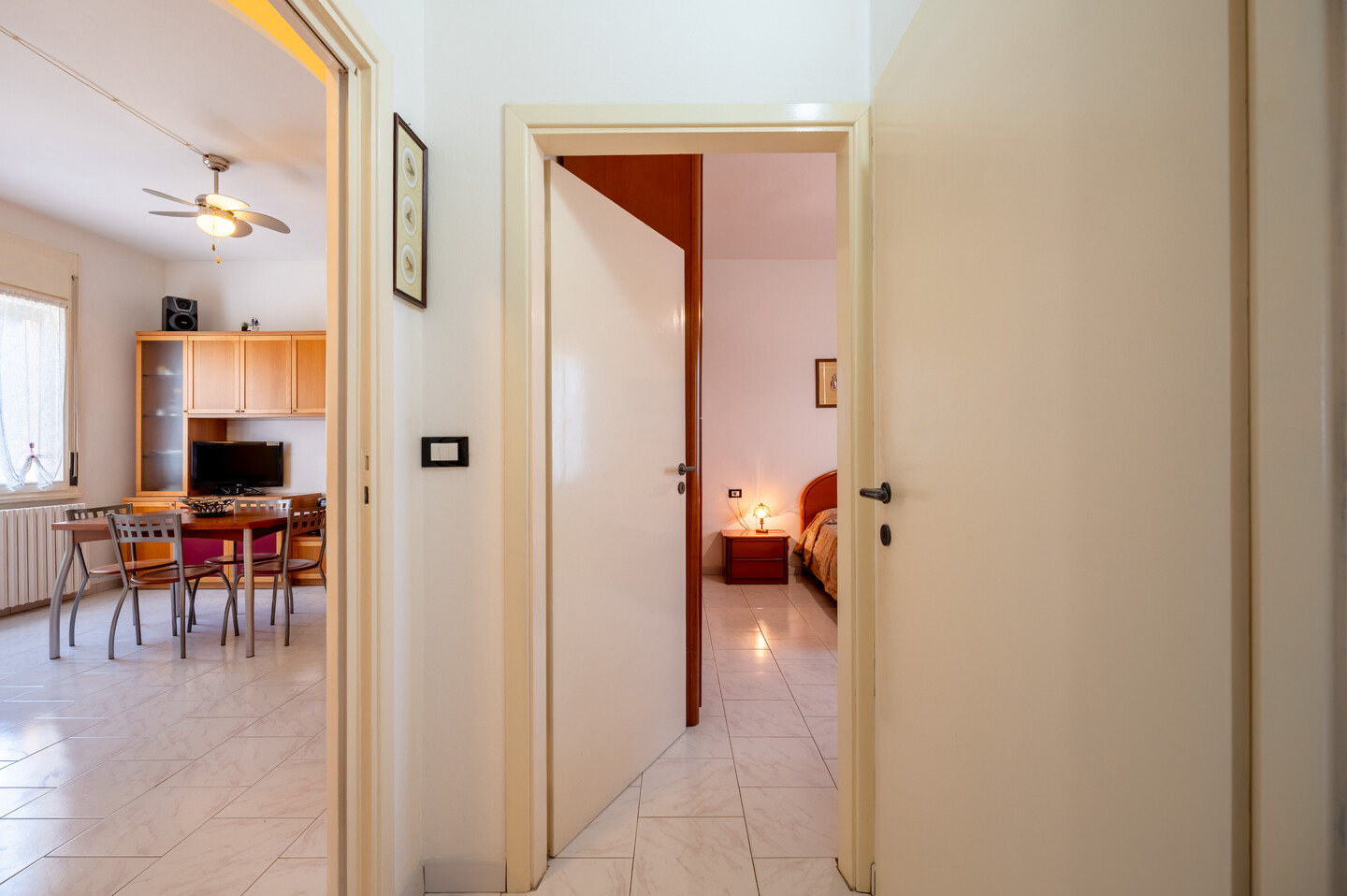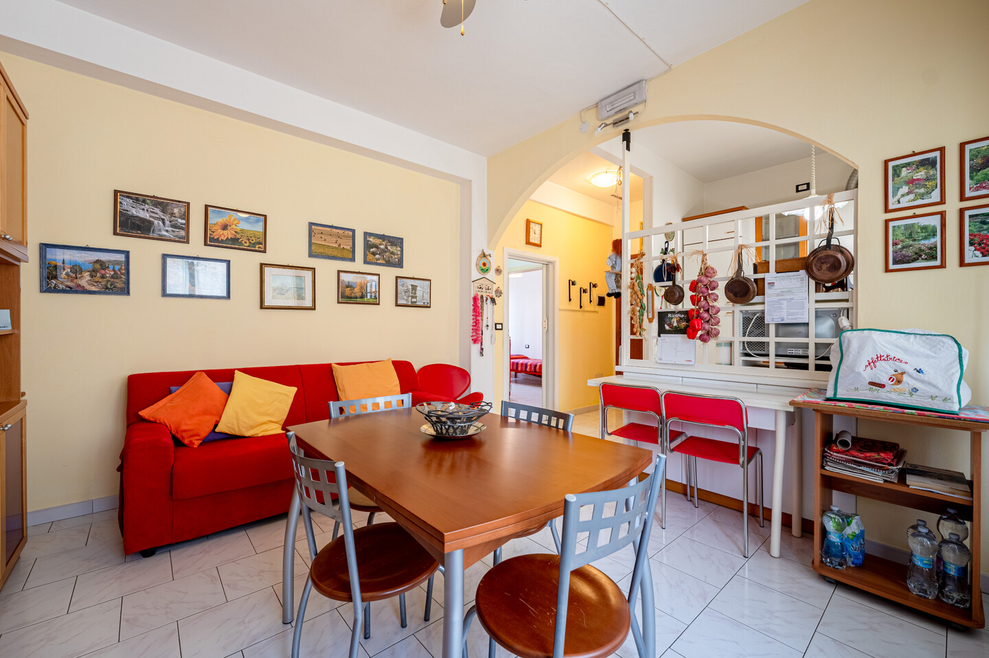 L’immobile è composto da un luminoso soggiorno con angolo cottura e accesso diretto al terrazzo, perfetto per momenti di relax all’aria aperta. La zona notte comprende una camera da letto matrimoniale, una camera doppia e un bagno finestrato completo di box doccia.