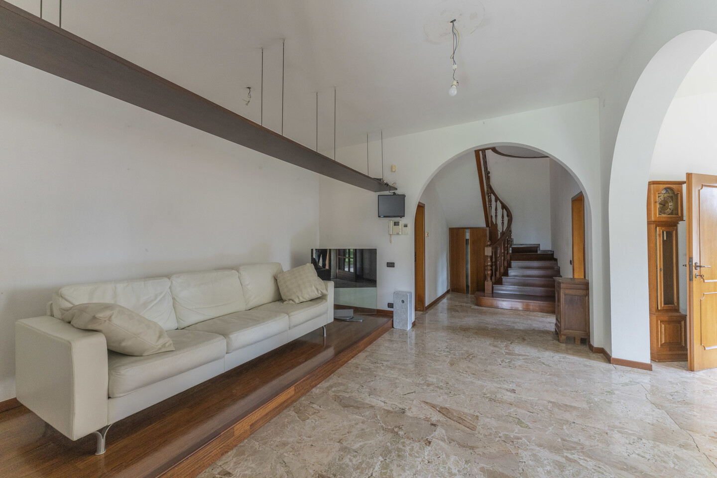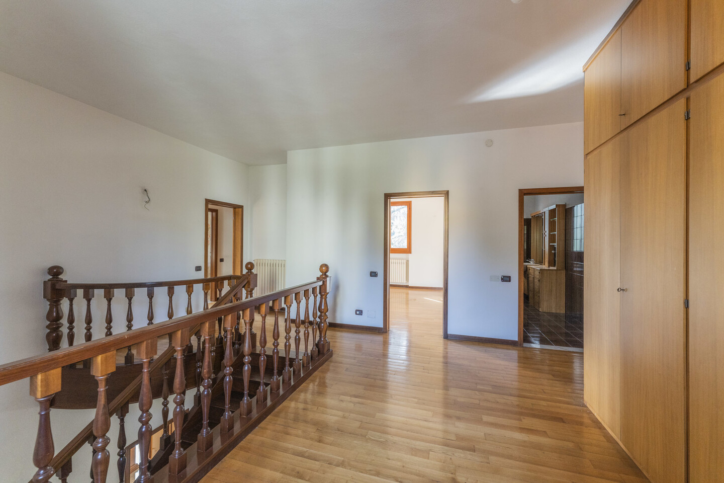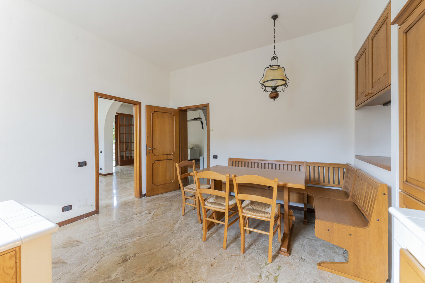 Questa villa, posizionata in strada a fondo chiusa, si sviluppa su due livelli, offrendo spazi ben distinti e funzionali. Al piano terra, l’ingresso si apre su un disimpegno spazioso e arredabile, conducendo a una cucina abitabile, un soggiorno, un bagno, una lavanderia/locale caldaia e uno studio. La zona notte di questo piano comprende due camere matrimoniali e una cantina al piano interrato. Una scala interna collega il piano terra al primo piano, composto da un disimpegno con armadio a muro, una sala living e quattro camere matrimoniali, servite da tre bagni.