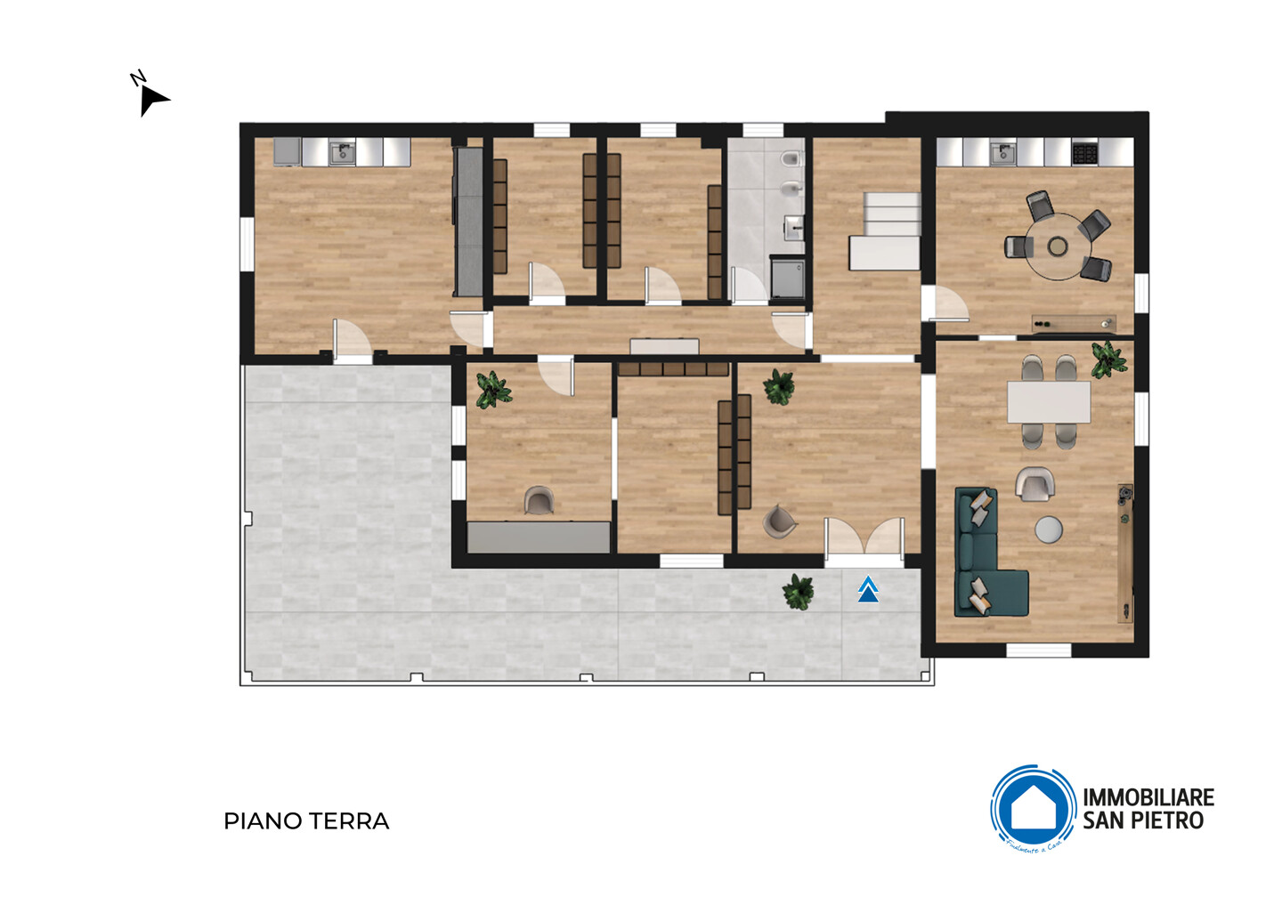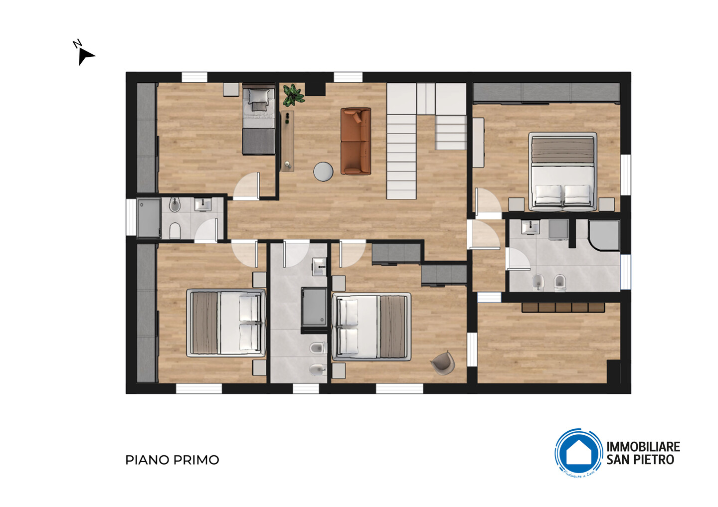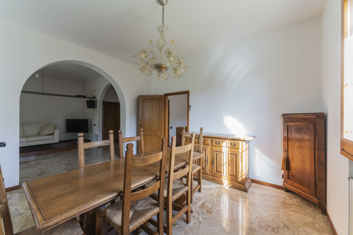 Questa villa, posizionata in strada a fondo chiusa, si sviluppa su due livelli, offrendo spazi ben distinti e funzionali. Al piano terra, l’ingresso si apre su un disimpegno spazioso e arredabile, conducendo a una cucina abitabile, un soggiorno, un bagno, una lavanderia/locale caldaia e uno studio. La zona notte di questo piano comprende due camere matrimoniali e una cantina al piano interrato. Una scala interna collega il piano terra al primo piano, composto da un disimpegno con armadio a muro, una sala living e quattro camere matrimoniali, servite da tre bagni.