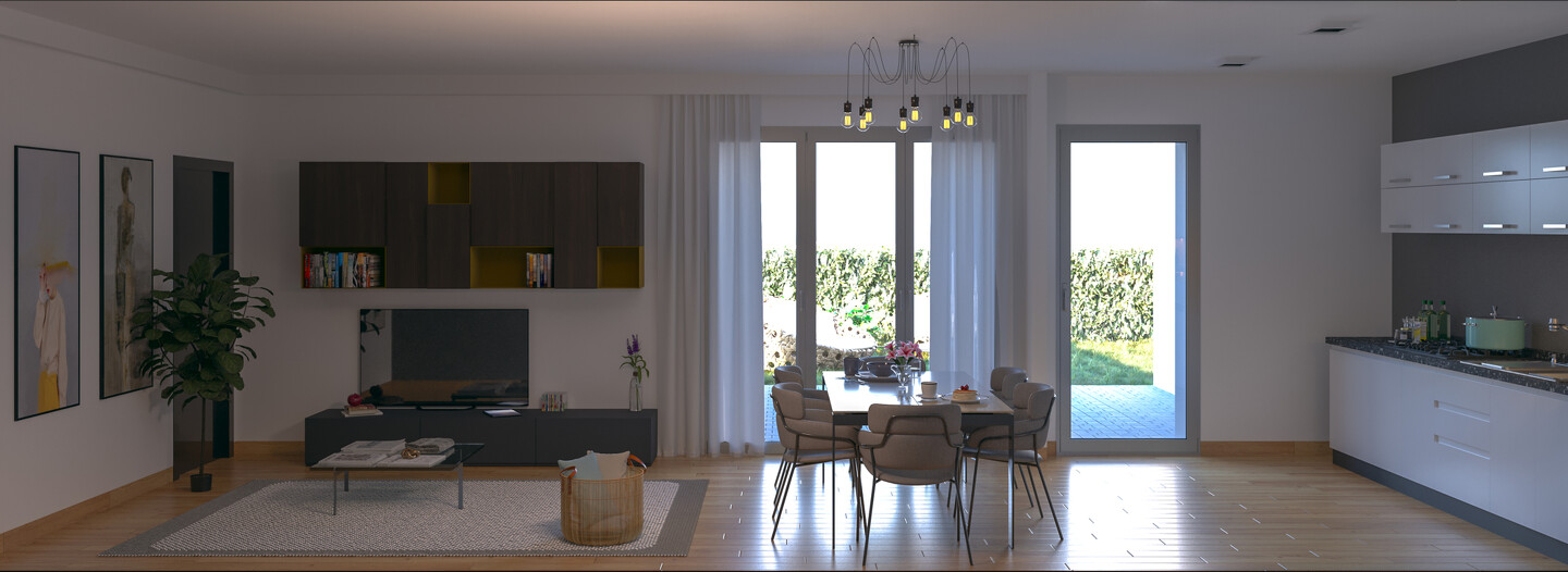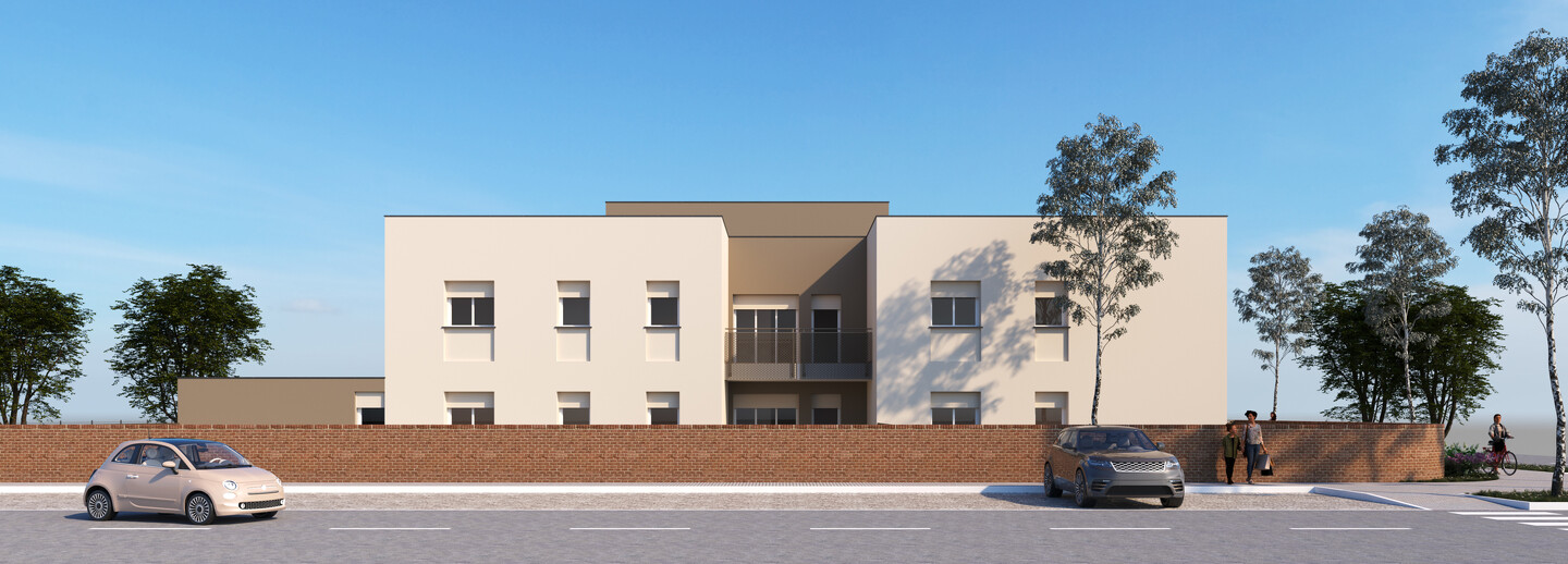 L’intervento in oggetto consiste nella realizzazione di una palazzina sviluppata su 2 livelli di ultima generazione. L’appartamento in questione è interamente sviluppato al piano terra e così strutturato: ingresso su un piccolo disimpegno, soggiorno, cucina abitabile, 2 camere matrimoniali e 2 bagni. Completano la proprietà un portico esterno, giardino, autorimessa e cantina a parte su richiesta. Sono infine presenti 4,5 kW di impianto fotovoltaico per ogni appartamento.